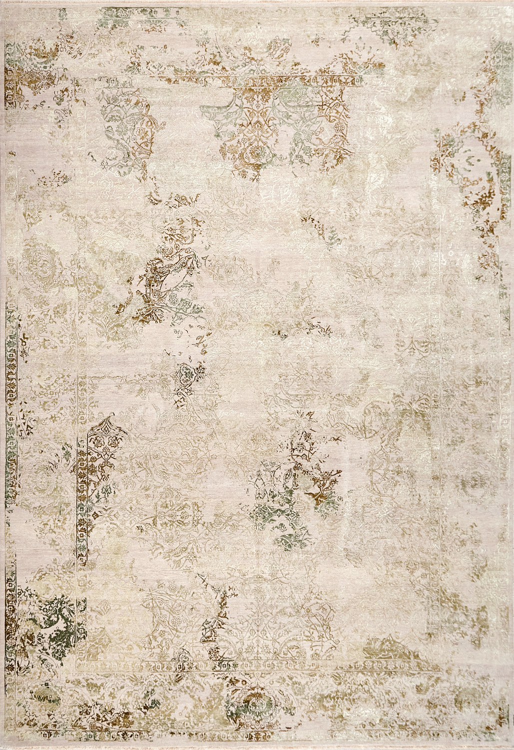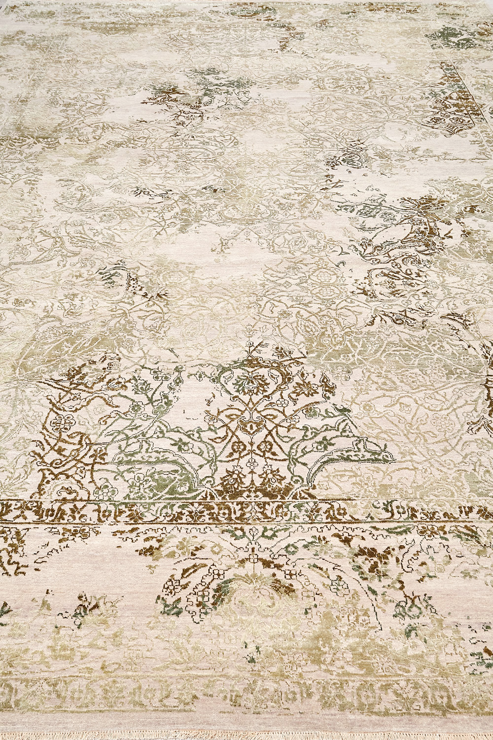 Время и природа — два главных стержня. Впечатление такое, что краски словно стёрлись, а если они и сохраняют яркость, то рисунок сохранился не весь, какие‑то фрагменты утрачены — такова типология этого столь актуального сегодня ковра ручной работы из коллекции illusion.