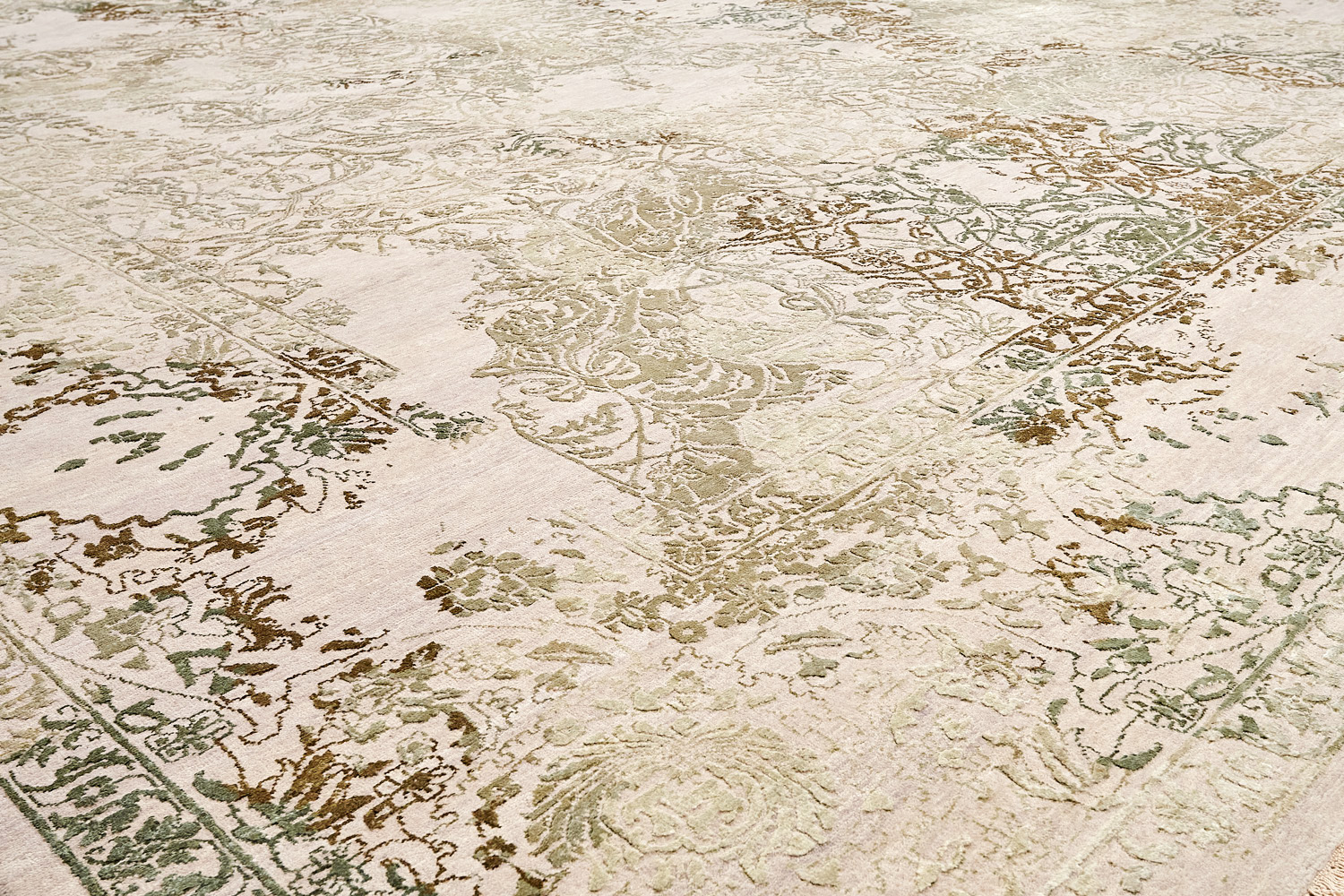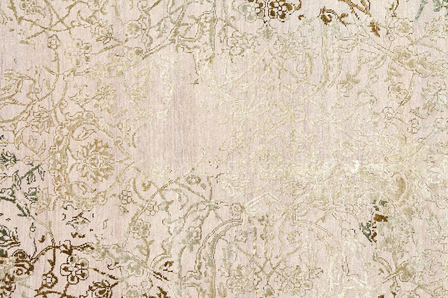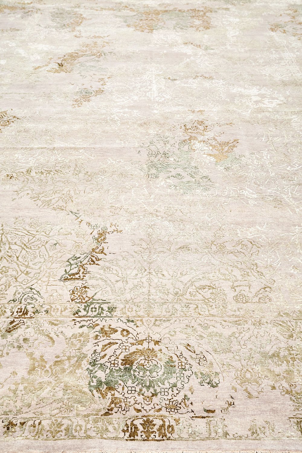 Такой эффект достигается за счет специальной техники плетения, а также обработки, которой подвергают ковры, чтобы они выглядели как антикварные — то есть дорого, элегантно и модно.