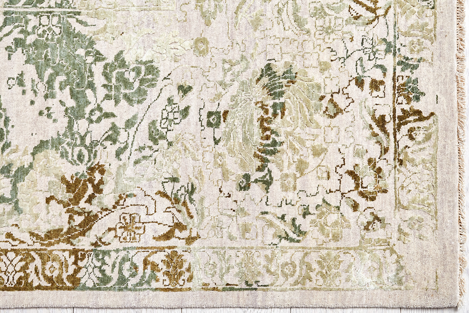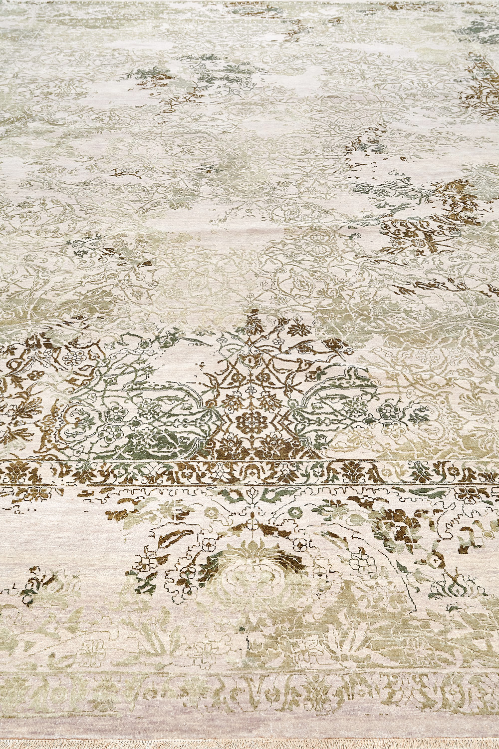 Время и природа — два главных стержня. Впечатление такое, что краски словно стёрлись, а если они и сохраняют яркость, то рисунок сохранился не весь, какие‑то фрагменты утрачены — такова типология этого столь актуального сегодня ковра ручной работы из коллекции illusion.