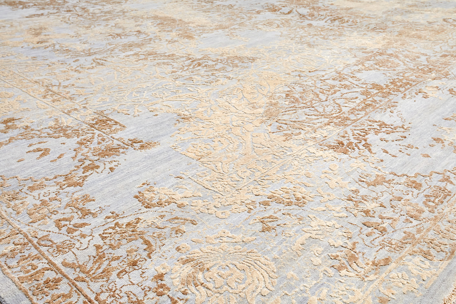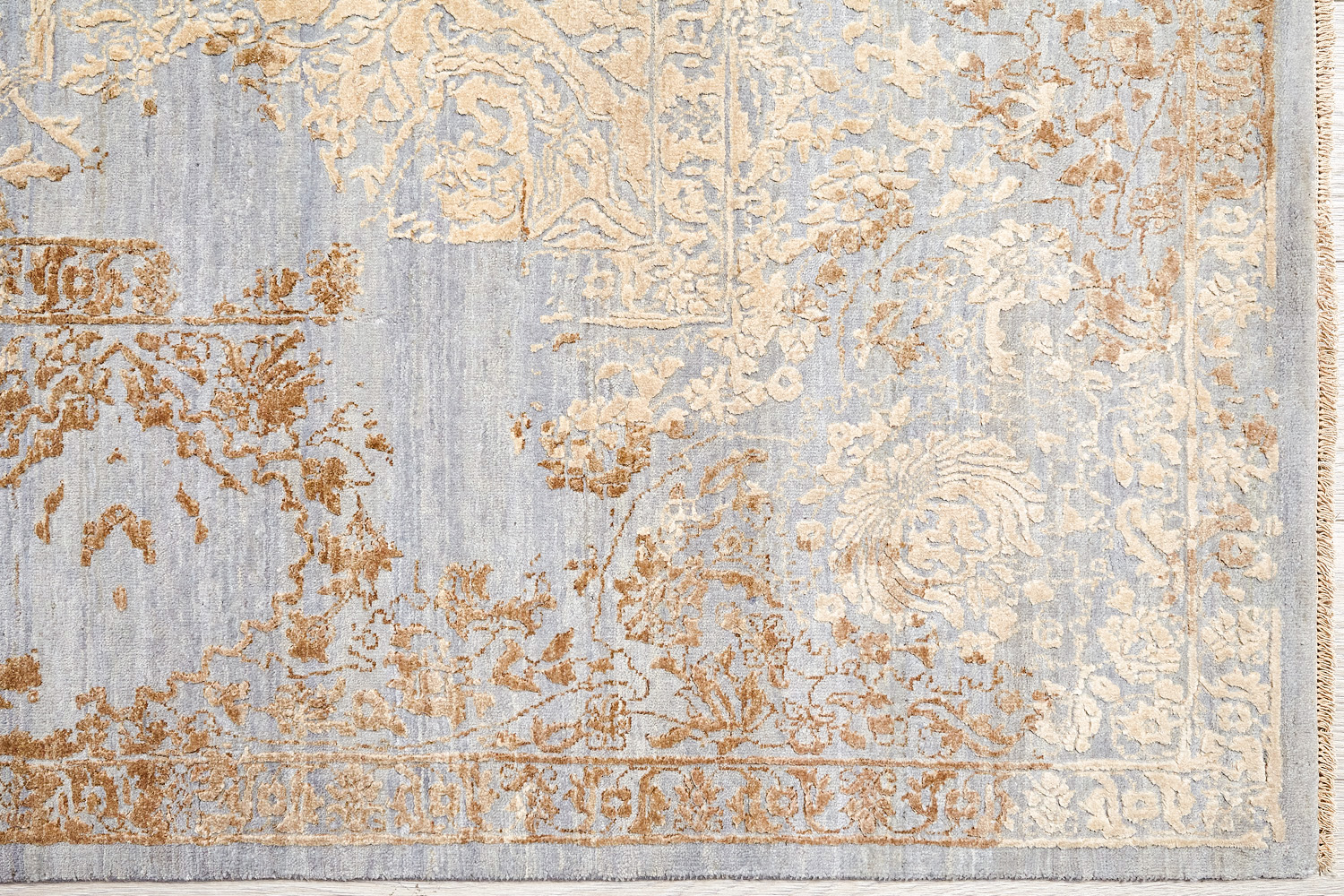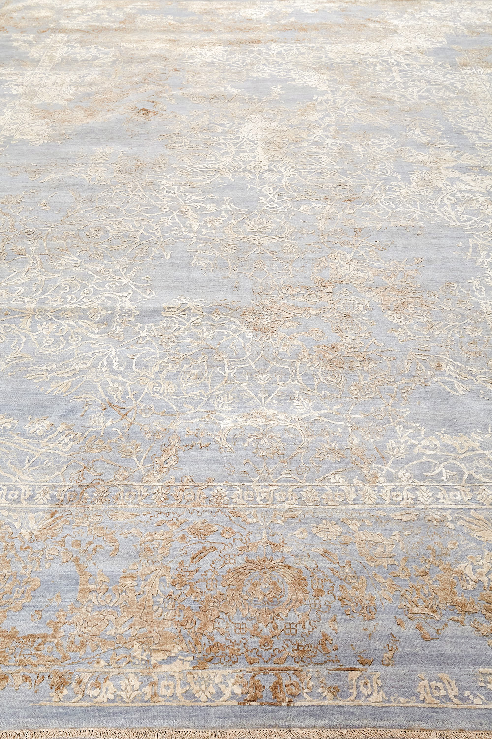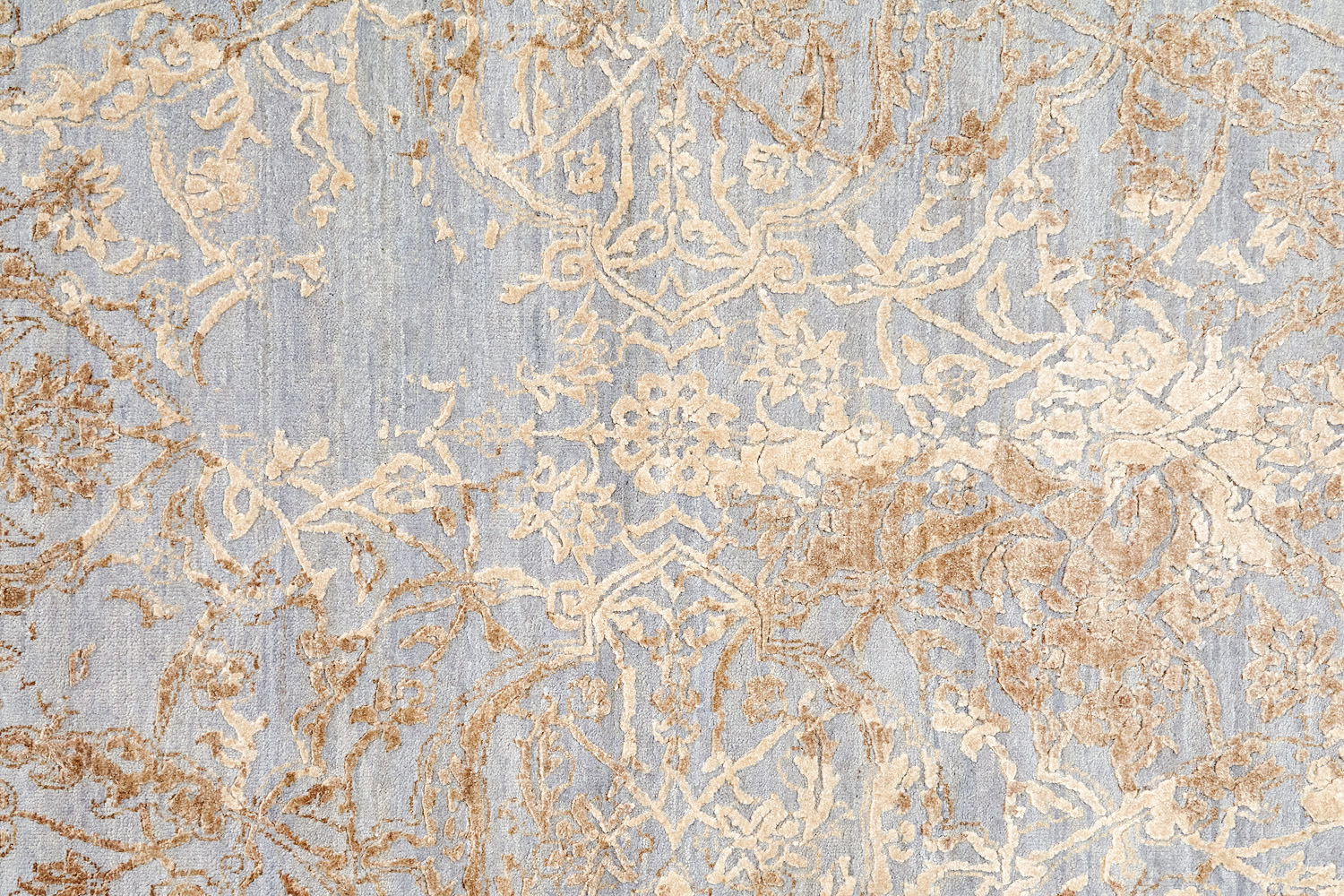 Такой эффект достигается за счет специальной техники плетения, а также обработки, которой подвергают ковры, чтобы они выглядели как антикварные — то есть дорого, элегантно и модно.