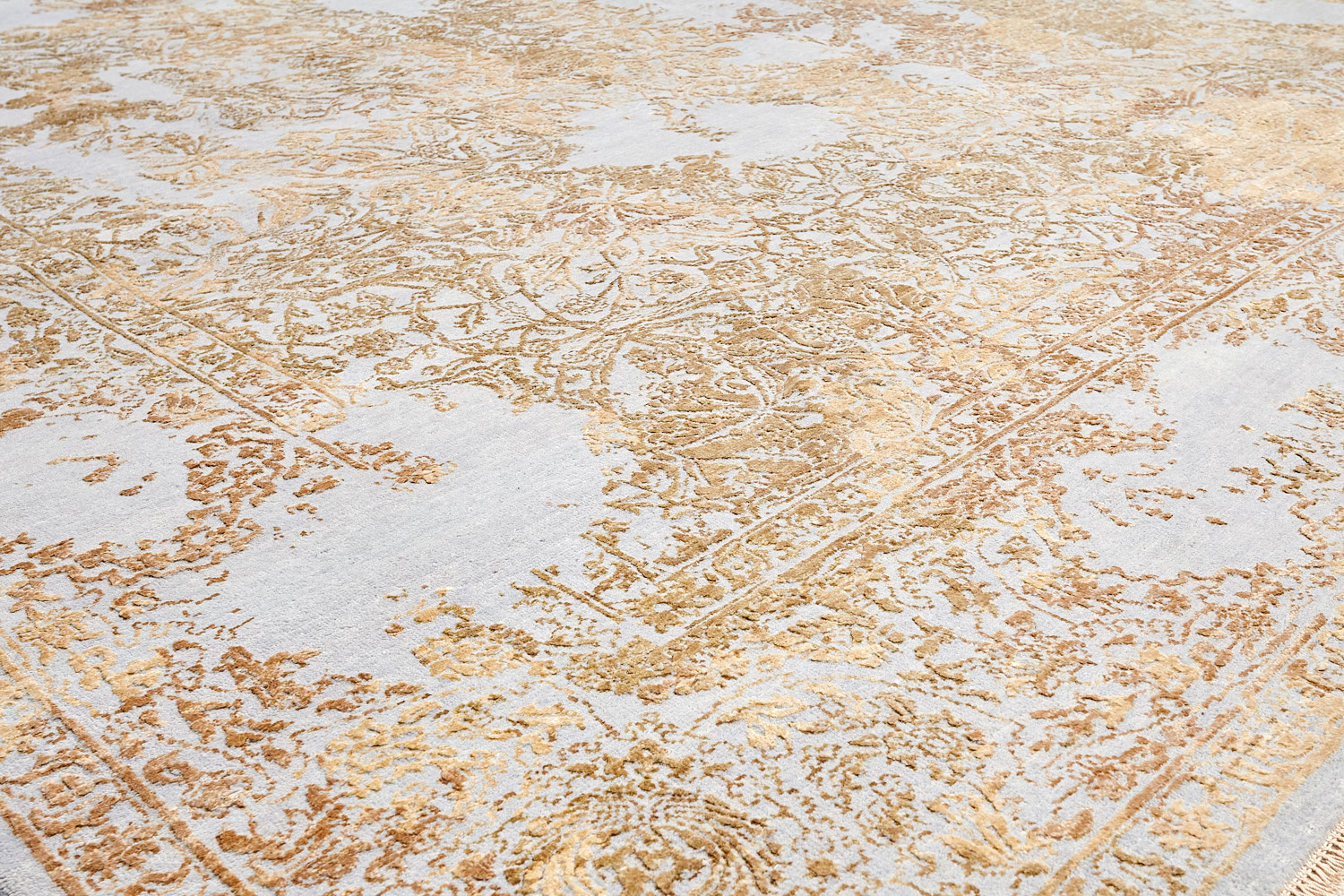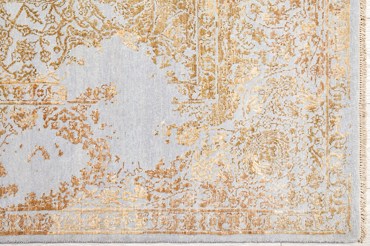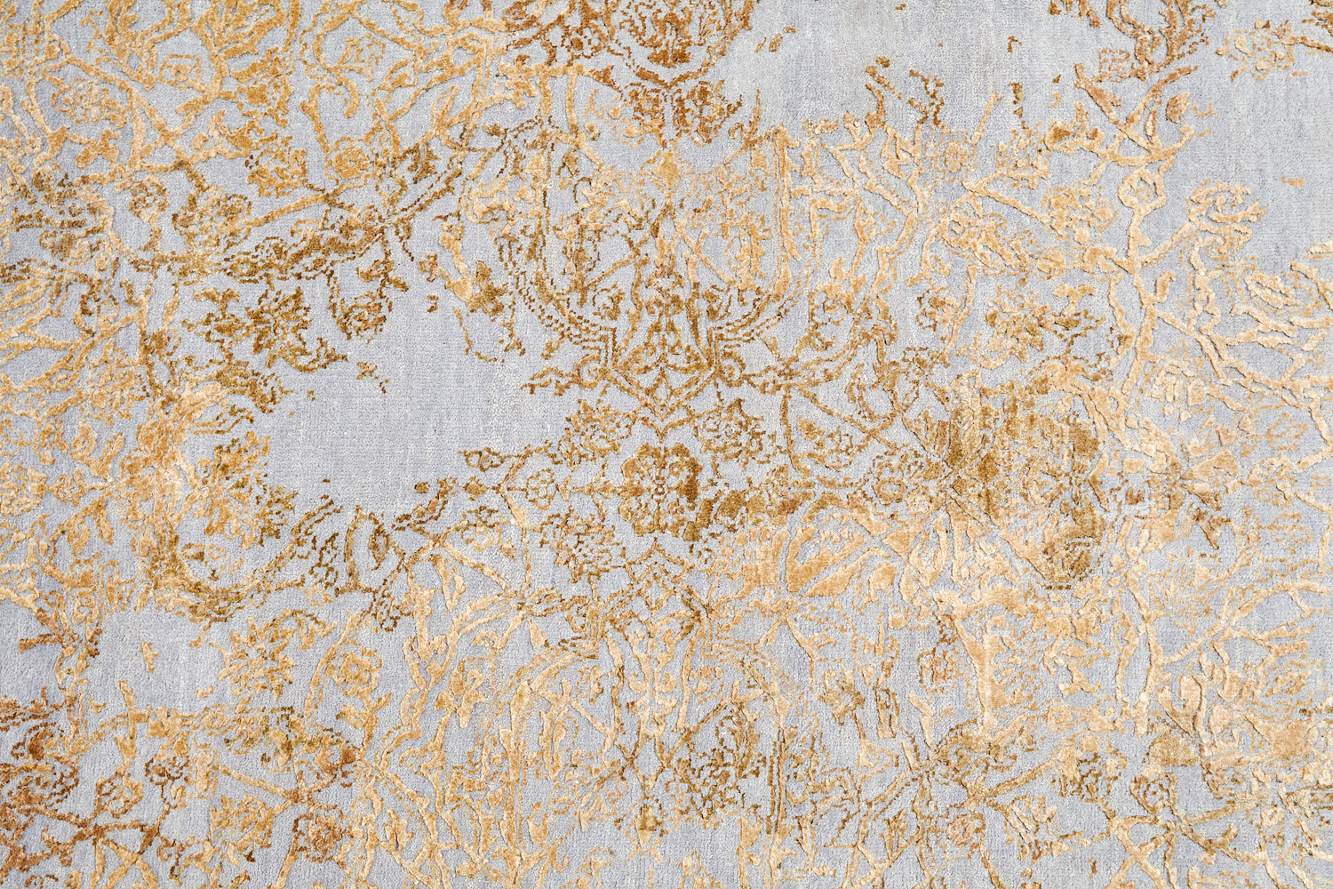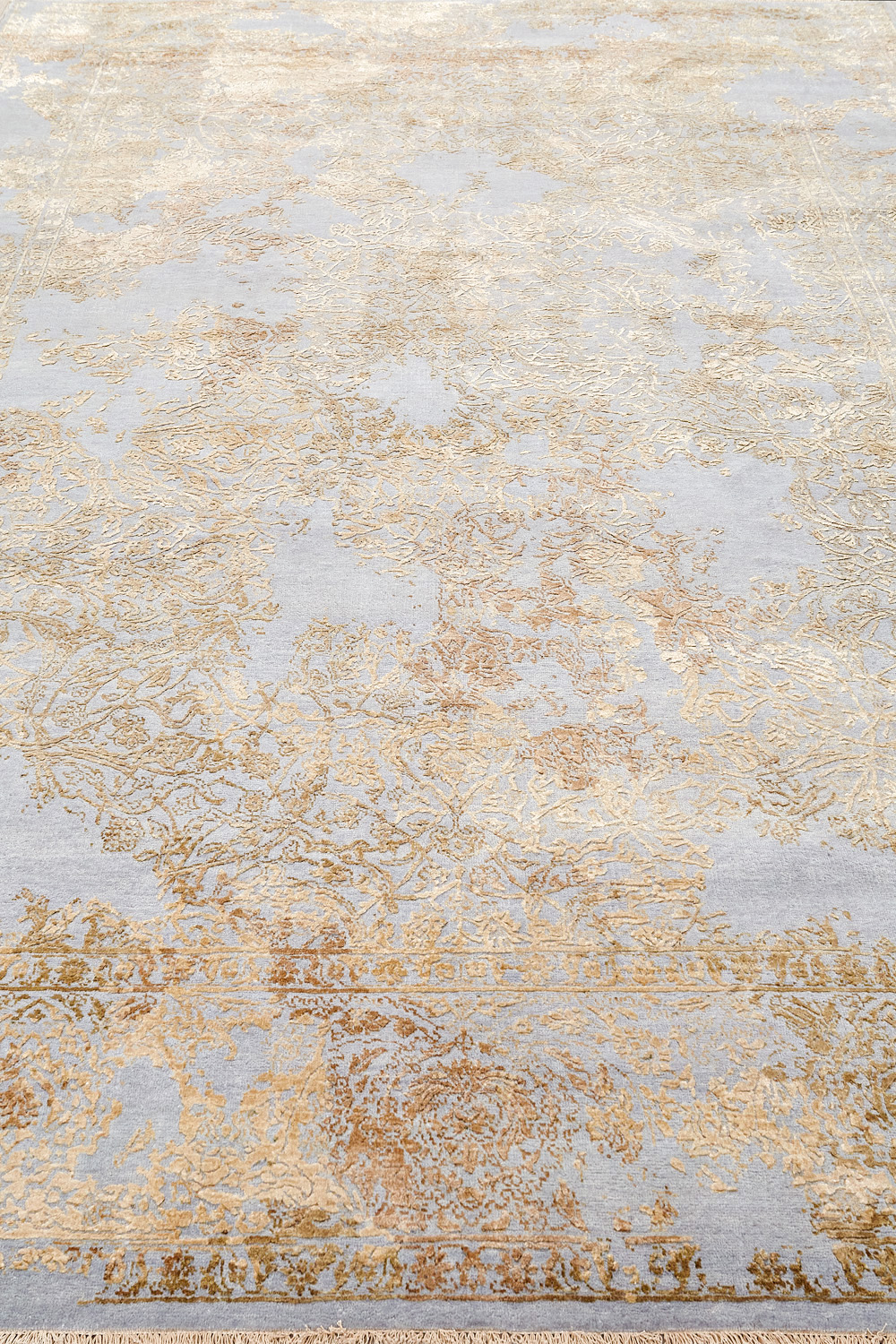 Такой эффект достигается за счет специальной техники плетения, а также обработки, которой подвергают ковры, чтобы они выглядели как антикварные — то есть дорого, элегантно и модно.