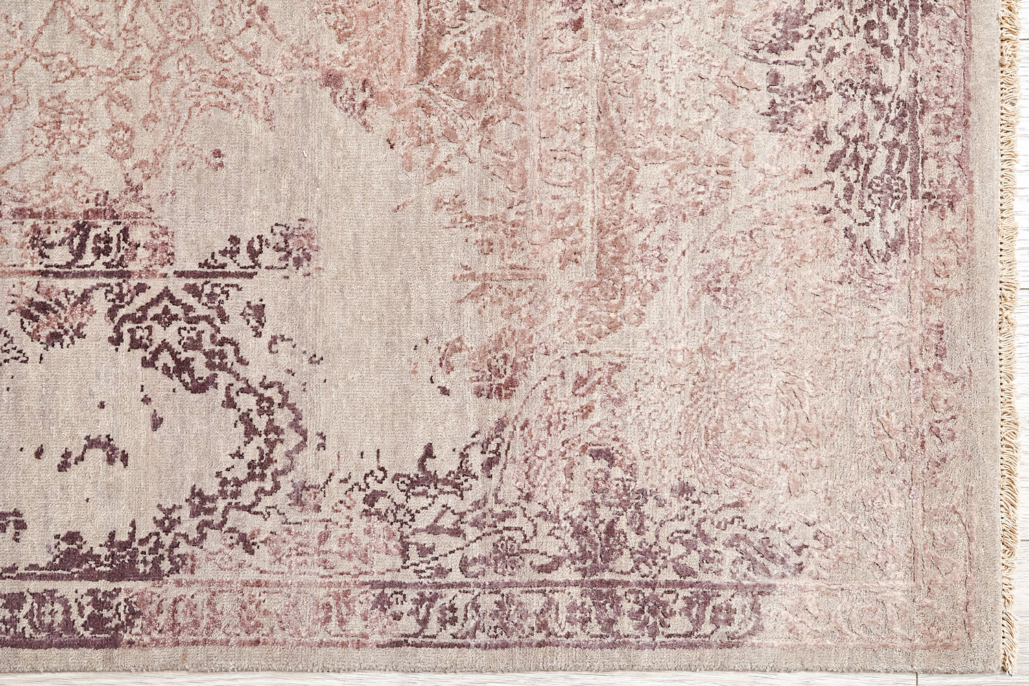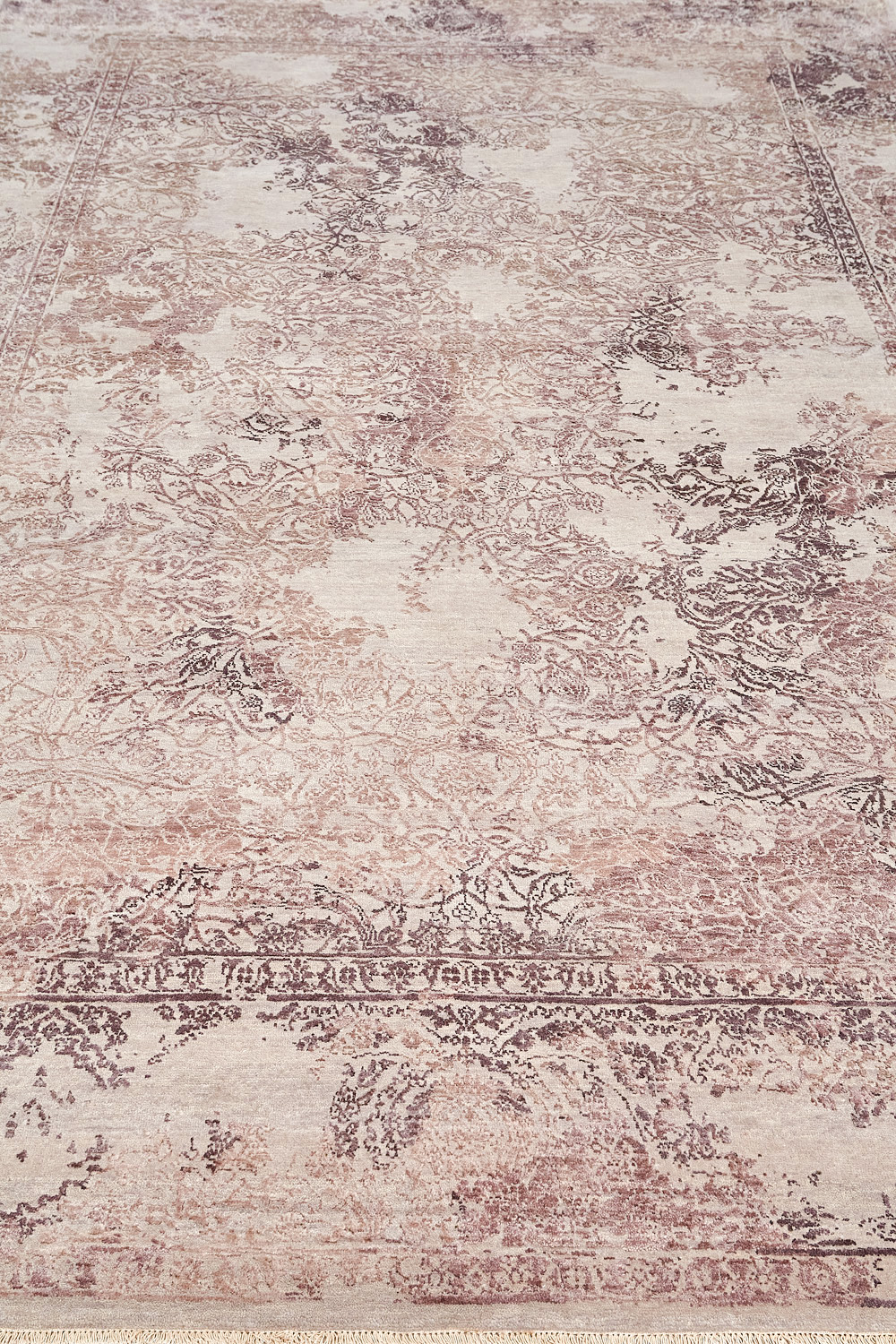 Такой эффект достигается за счет специальной техники плетения, а также обработки, которой подвергают ковры, чтобы они выглядели как антикварные — то есть дорого, элегантно и модно.