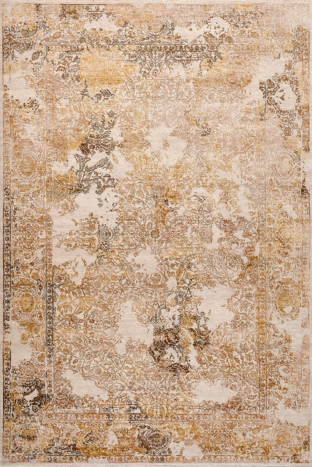 Время и природа — два главных стержня. Впечатление такое, что краски словно стёрлись, а если они и сохраняют яркость, то рисунок сохранился не весь, какие‑то фрагменты утрачены — такова типология этого столь актуального сегодня ковра ручной работы из коллекции illusion.