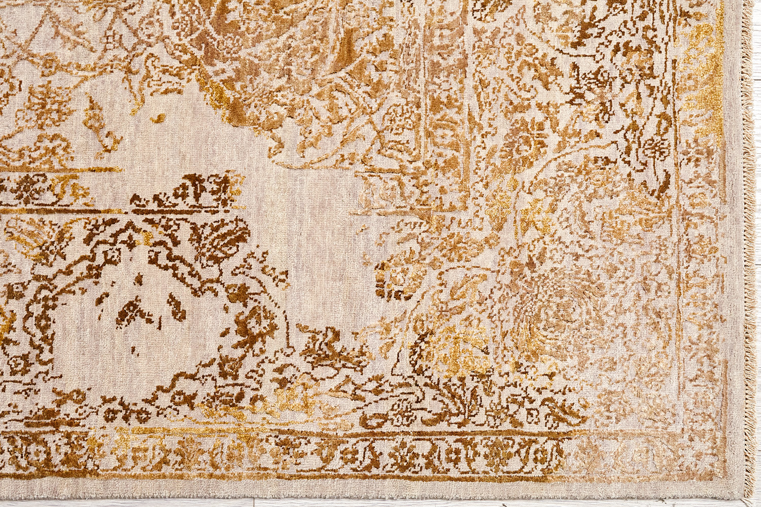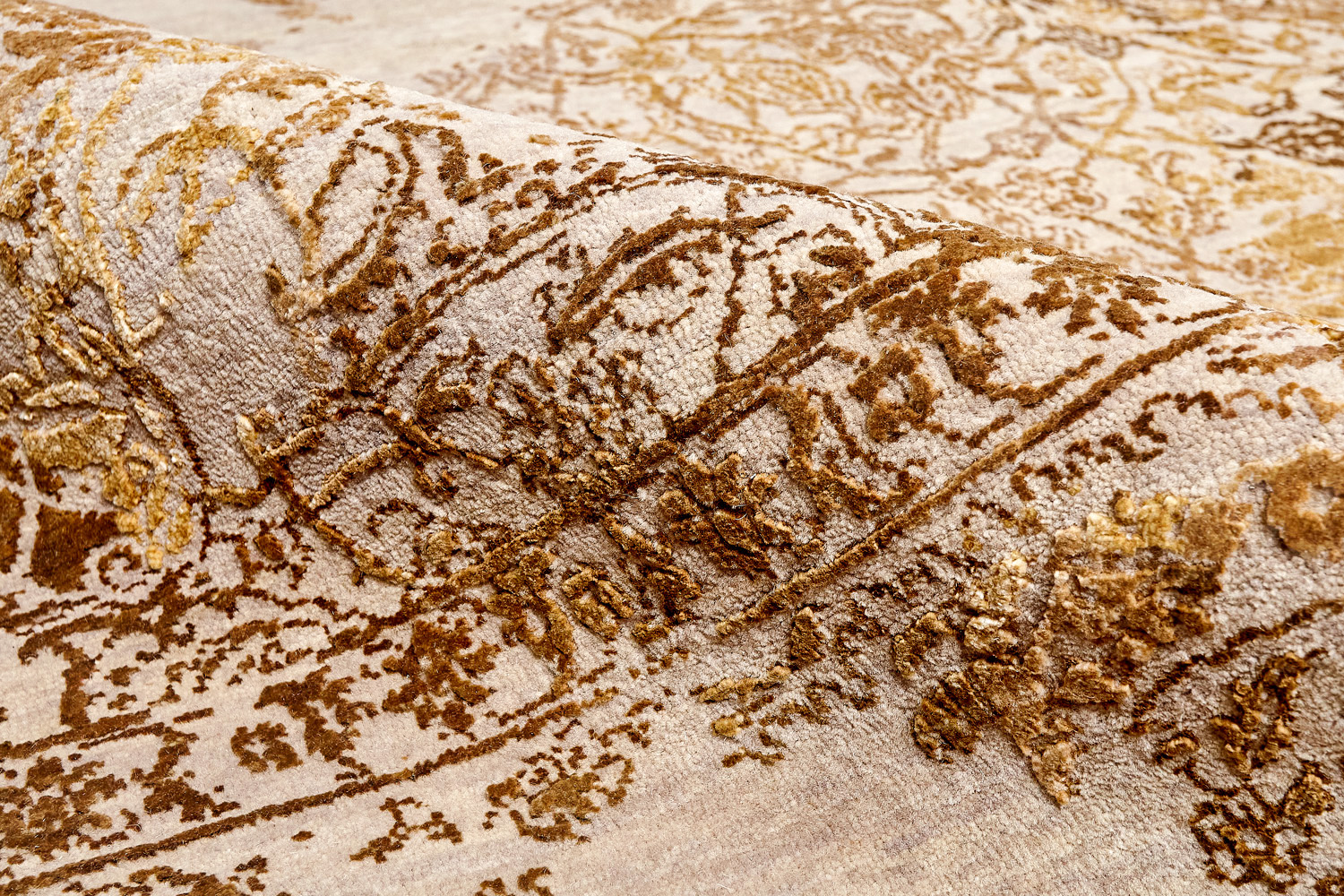 Такой эффект достигается за счет специальной техники плетения, а также обработки, которой подвергают ковры, чтобы они выглядели как антикварные — то есть дорого, элегантно и модно.