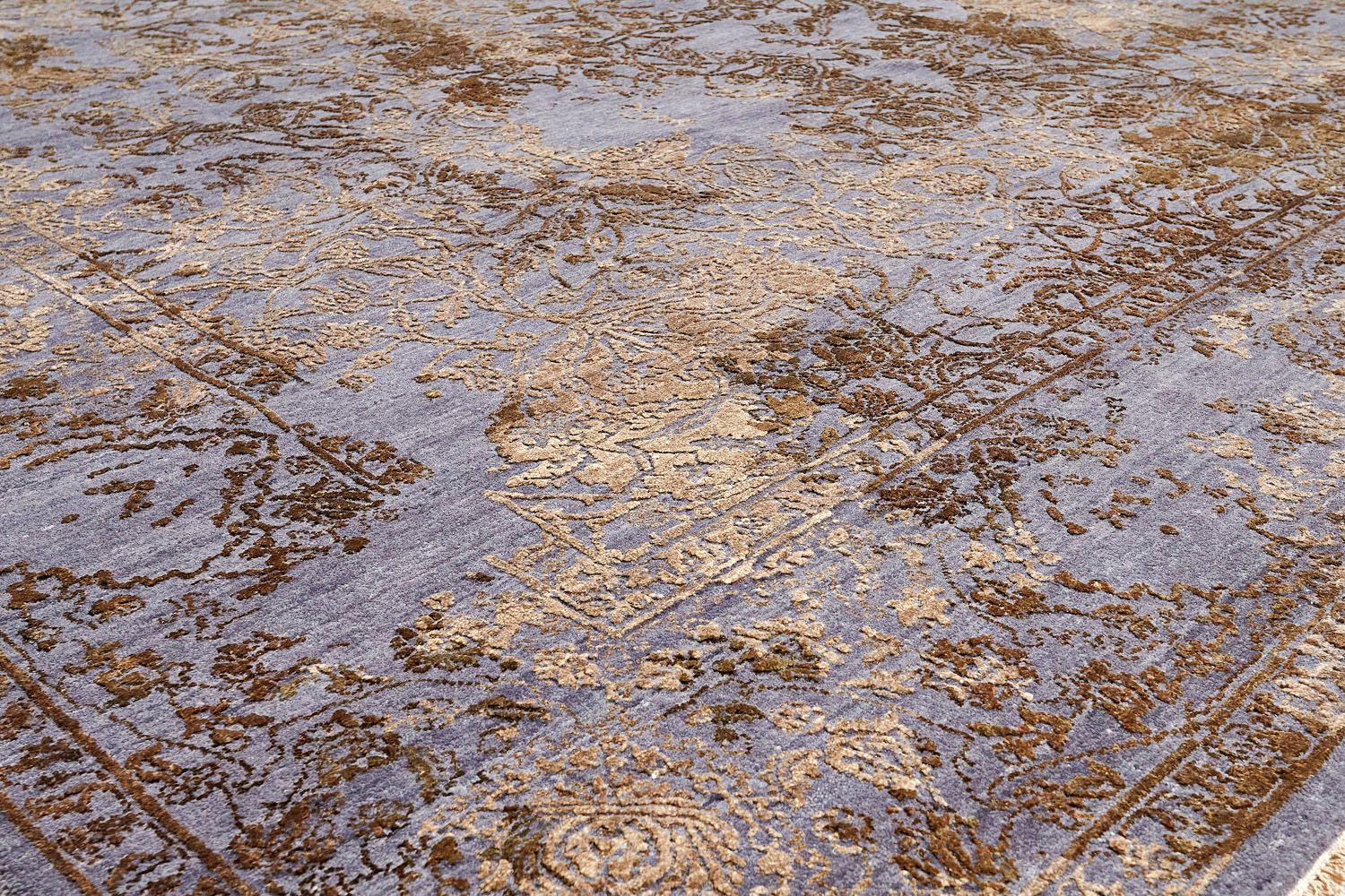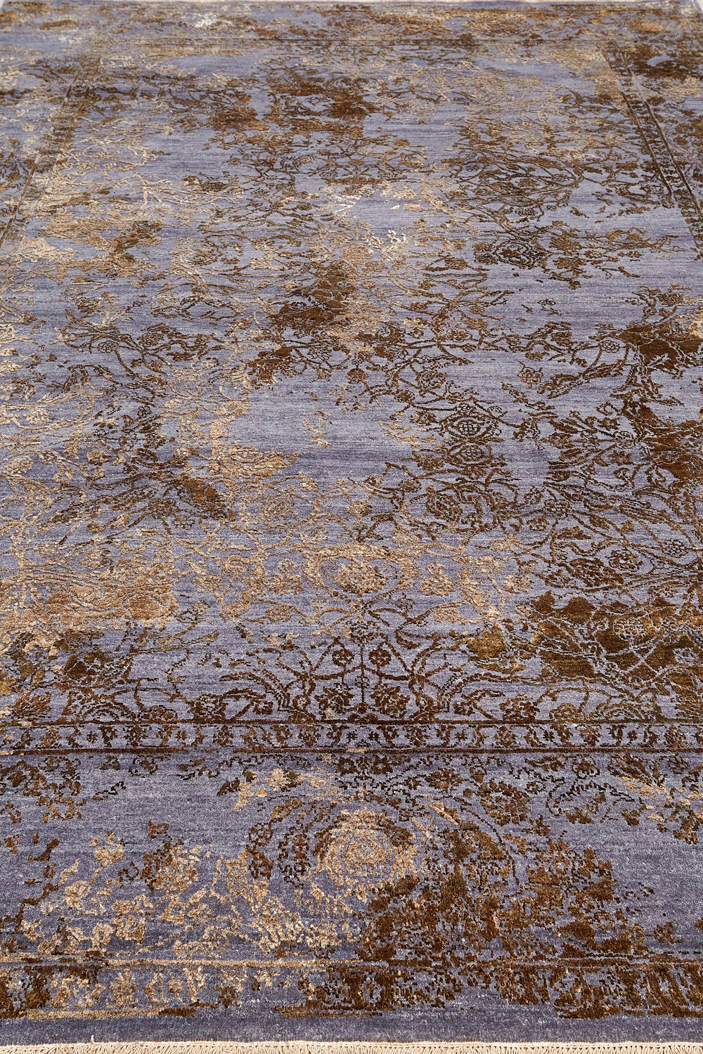 Такой эффект достигается за счет специальной техники плетения, а также обработки, которой подвергают ковры, чтобы они выглядели как антикварные — то есть дорого, элегантно и модно.