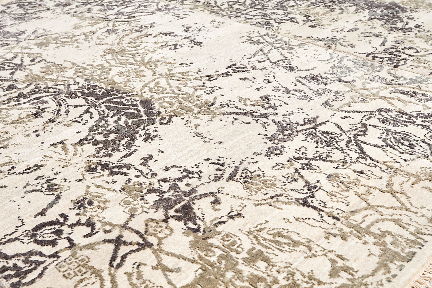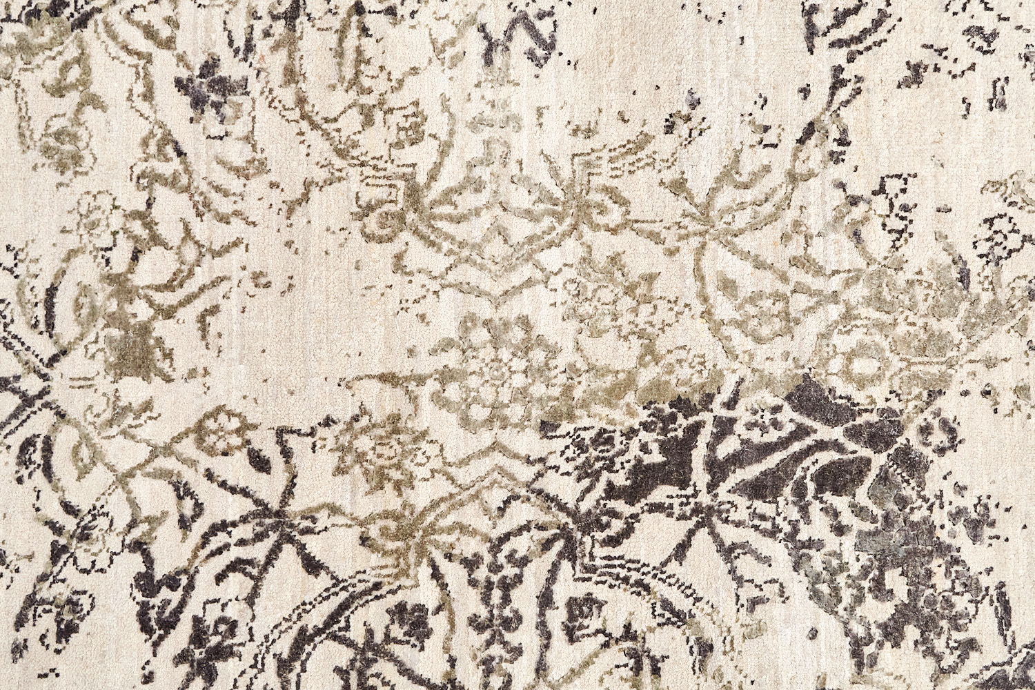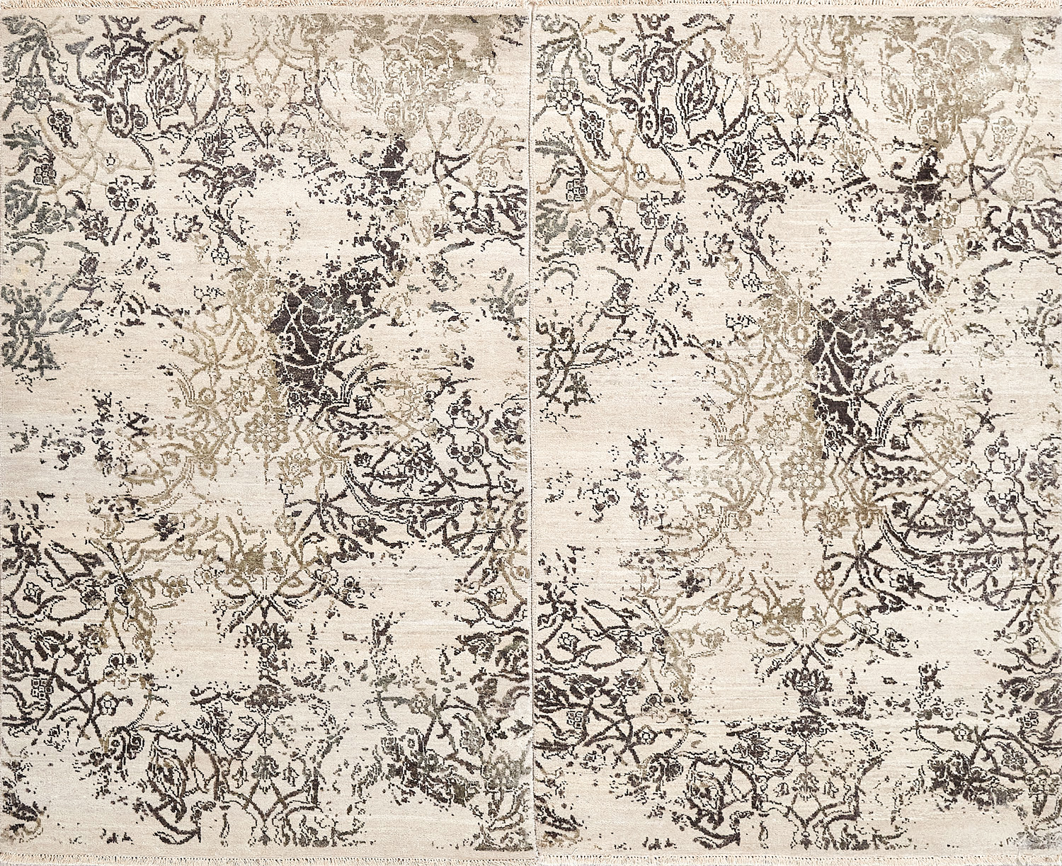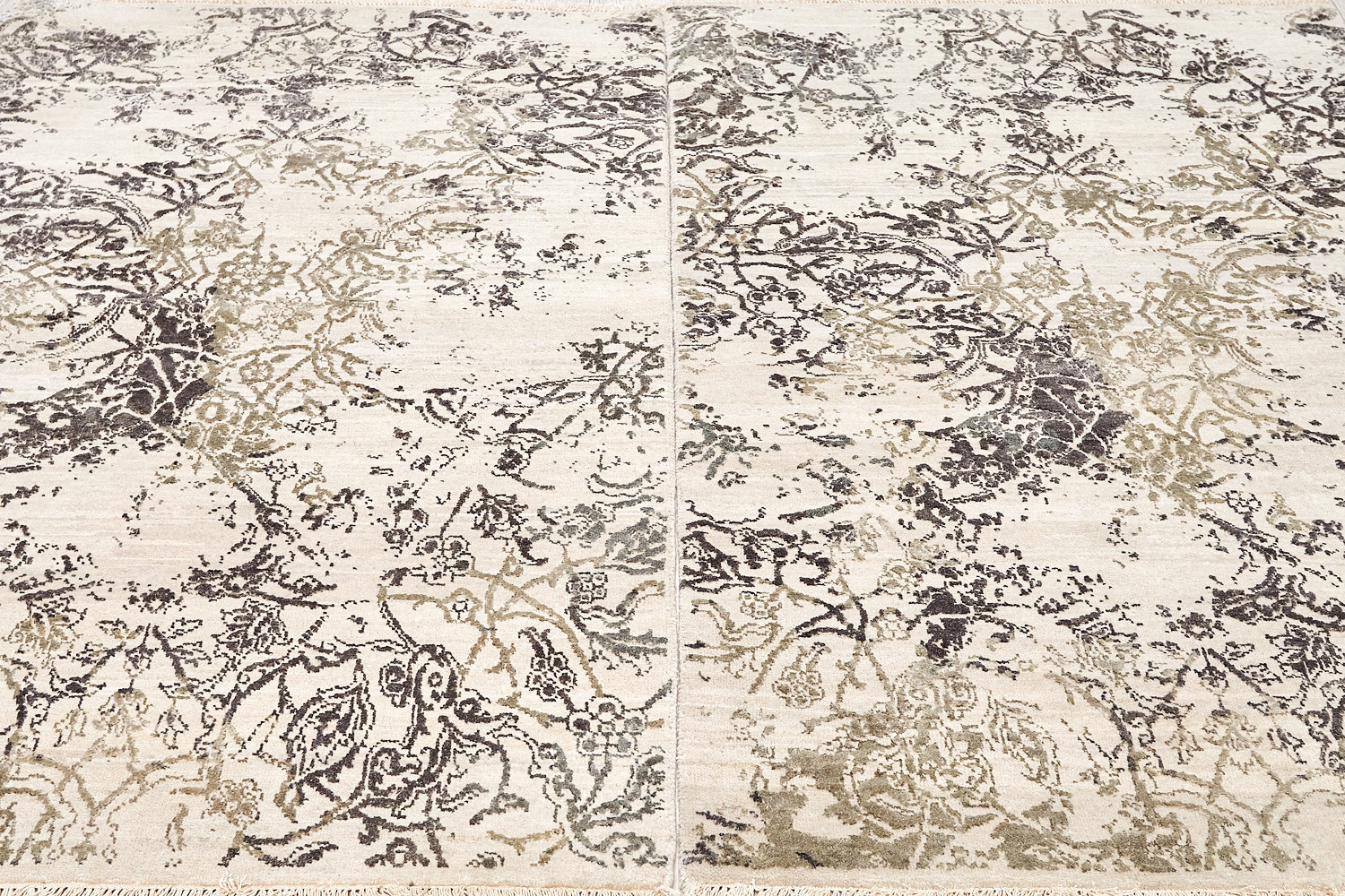 Такой эффект достигается за счет специальной техники плетения, а также обработки, которой подвергают ковры, чтобы они выглядели как антикварные — то есть дорого, элегантно и модно.