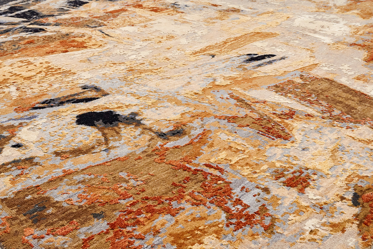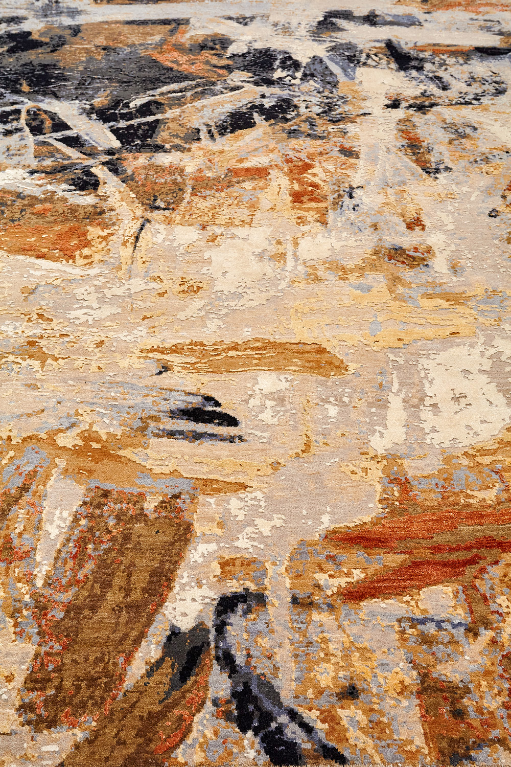 Дизайн ковров напоминает современные полотна художников-абстракционистов и производит столь же яркое и незабываемое впечатление в интерьере. Живописный эффект и необычная фактура зависят от выбора материала: натуральной шерсти, шёлка и от их сочетаний друг с другом. Ковры ткутся вручную в лучших мастерских Индии и Пакистана.