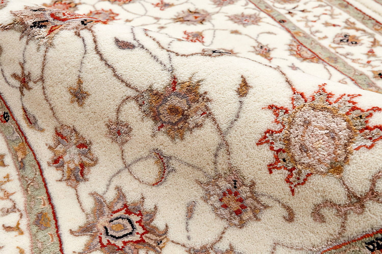 Каждый ковер в этой коллекции соткан вручную из шерсти и арт шёлка опытными индийскими мастерами.