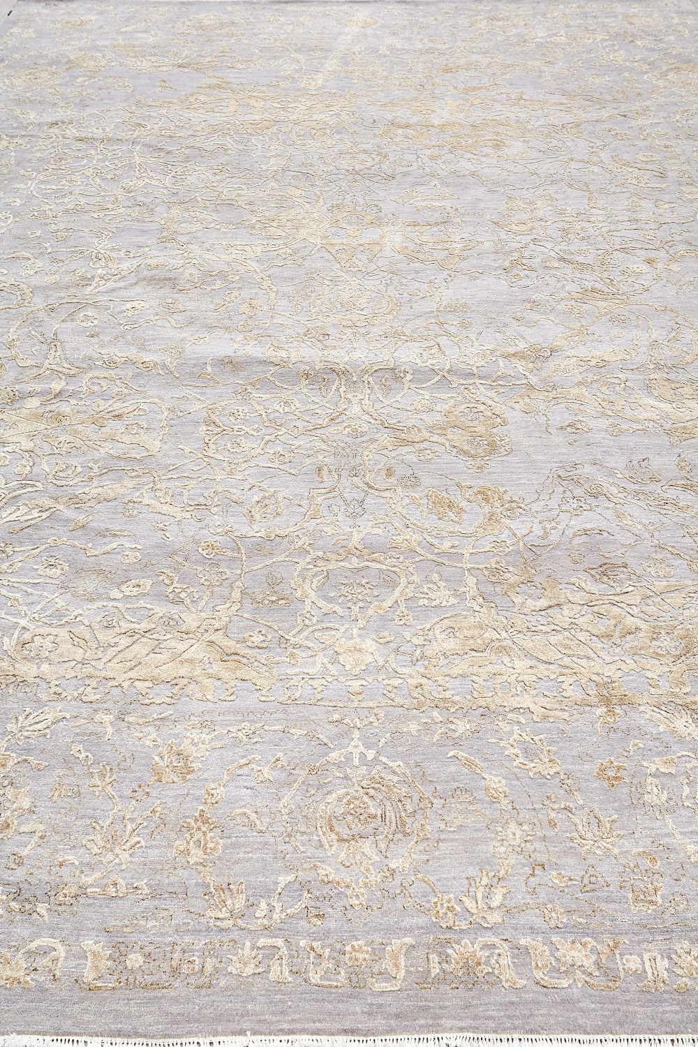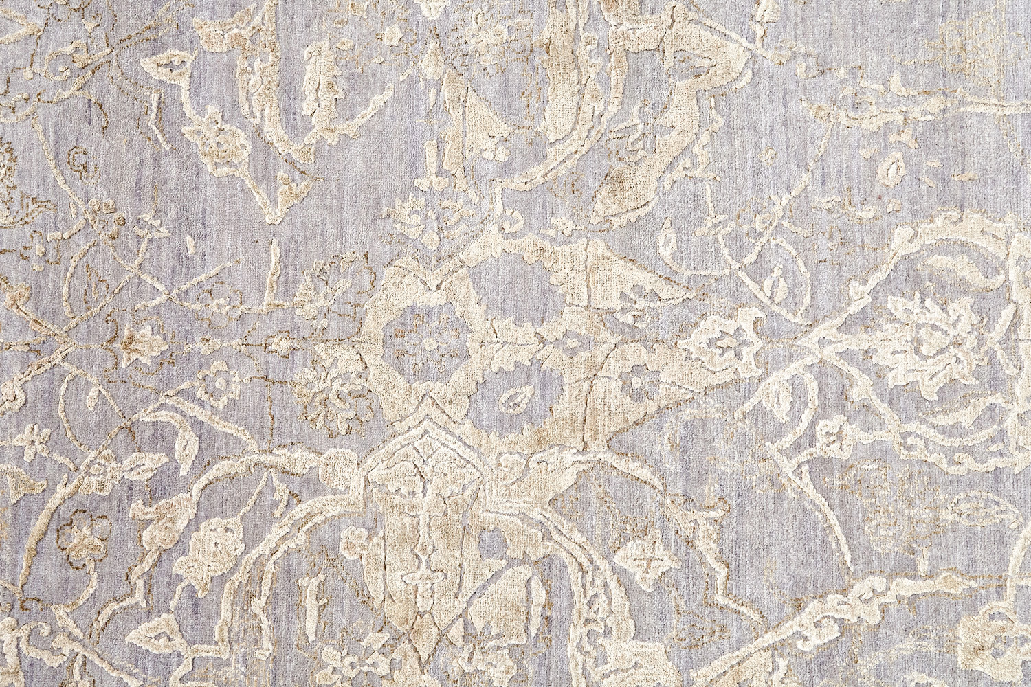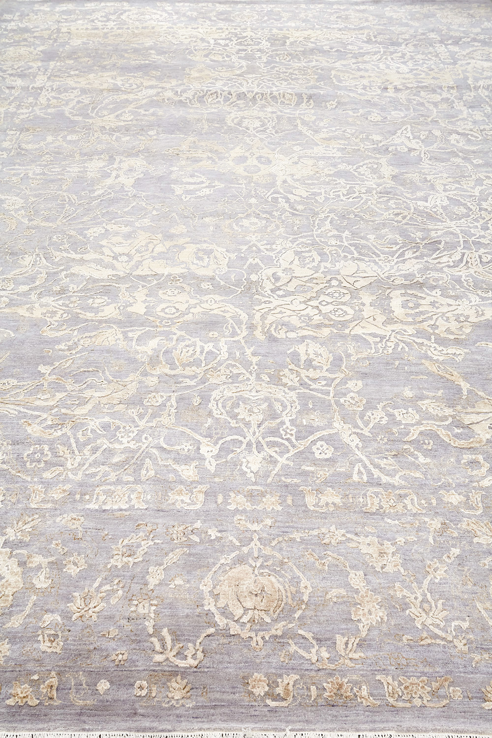 Такой эффект достигается за счет специальной техники плетения, а также обработки, которой подвергают ковры, чтобы они выглядели как антикварные — то есть дорого, элегантно и модно.