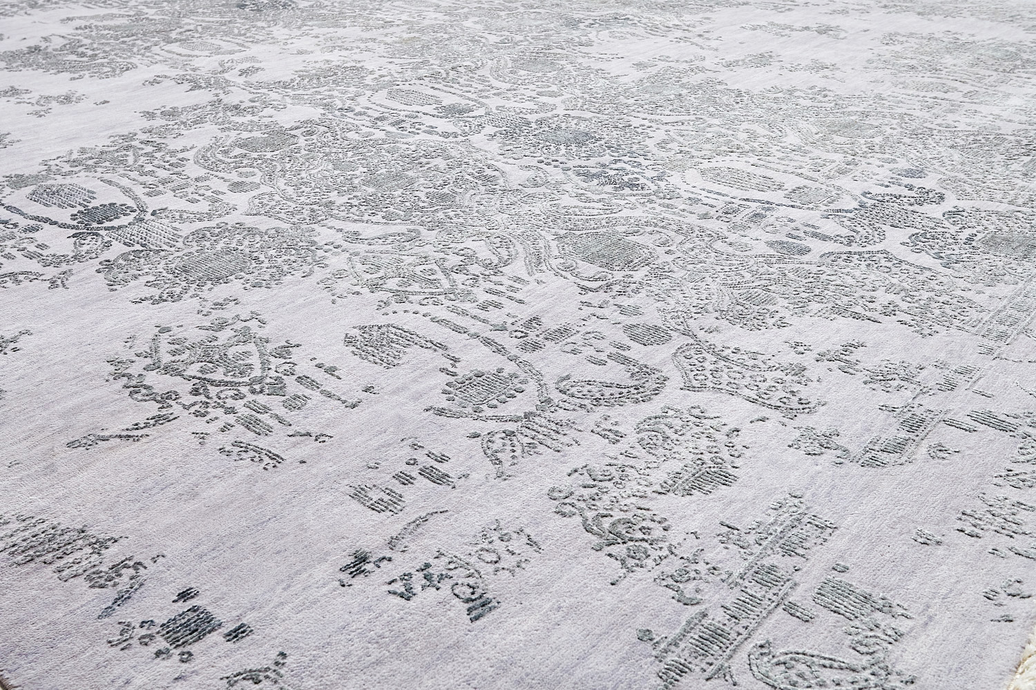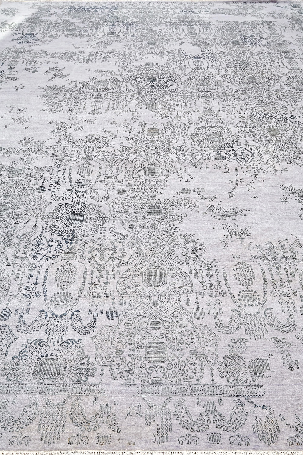 Такой эффект достигается за счет специальной техники плетения, а также обработки, которой подвергают ковры, чтобы они выглядели как антикварные — то есть дорого, элегантно и модно.