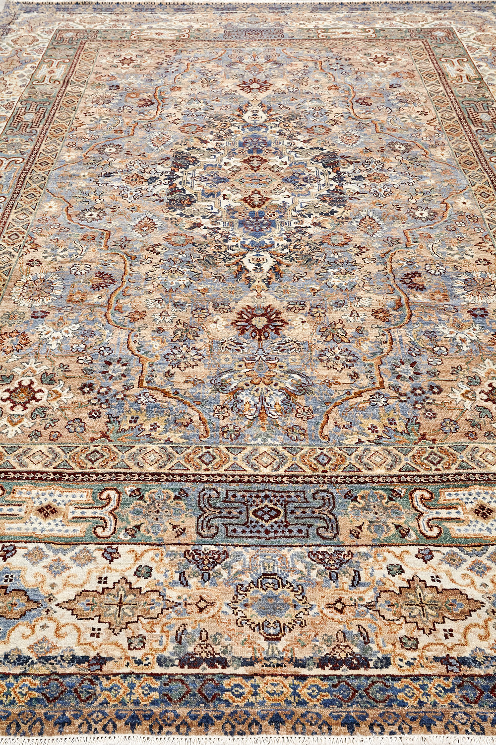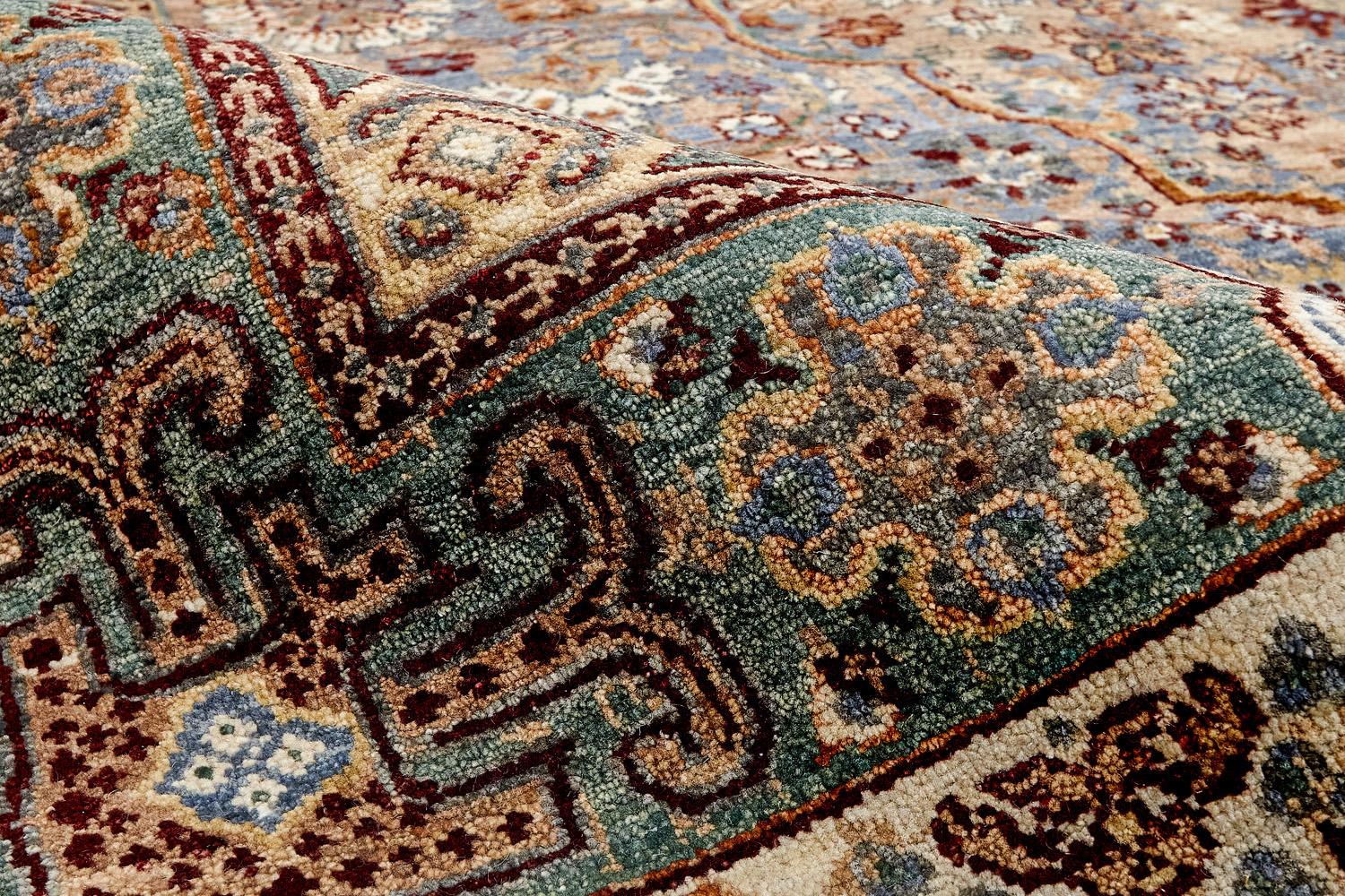 Родина этих ковров Индия и Пакистан. Чтобы создать такое произведение искусства у мастеров уходит от одного года до двух лет. Плотность ковров, в зависимости от размера, составляет от 150 000 до 400 000 узлов на квадратный метр.