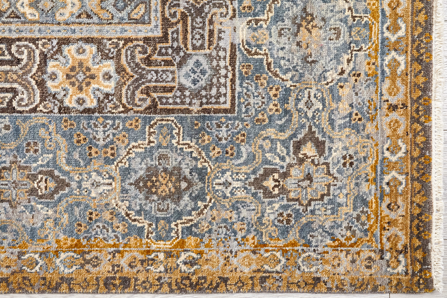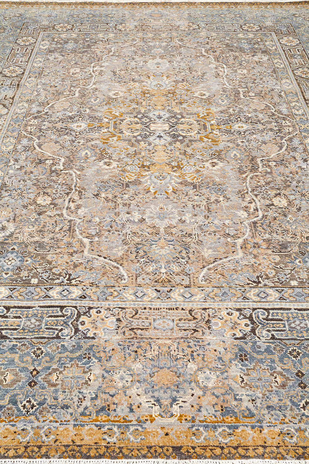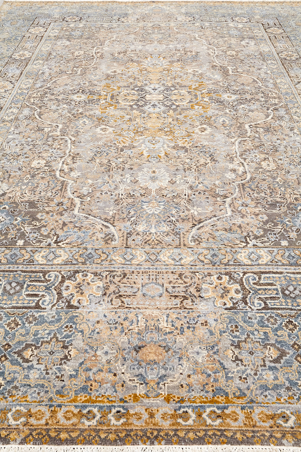 Родина этих ковров Индия и Пакистан. Чтобы создать такое произведение искусства у мастеров уходит от одного года до двух лет. Плотность ковров, в зависимости от размера, составляет от 150 000 до 400 000 узлов на квадратный метр.