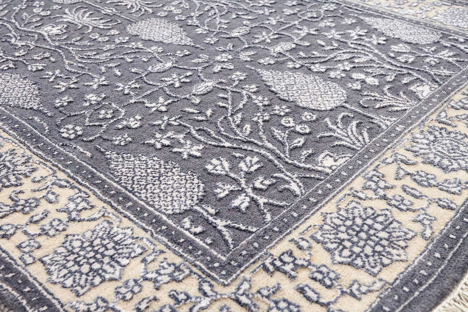 Более пяти веков назад в городе Агра зародилась знаменитая индийская школа ковроткачества, прославившаяся не меньше, чем расположенный здесь же Тадж-Махал. Мощное персидское влияние, помноженное на местный колорит, привело к появлению оригинальных орнаментов с богатыми растительными узорами — причудливым цветам, ветвям и листьям, разбросанным по всему полю ковра.