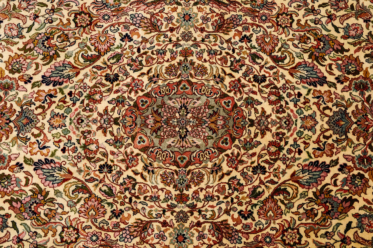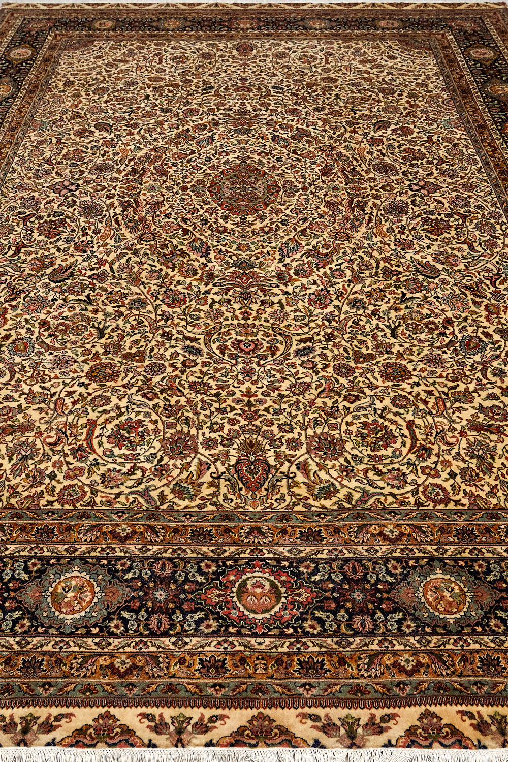 Более пяти веков назад в городе Агра зародилась знаменитая индийская школа ковроткачества, прославившаяся не меньше, чем расположенный здесь же Тадж-Махал. Мощное персидское влияние, помноженное на местный колорит, привело к появлению оригинальных орнаментов с богатыми растительными узорами — причудливым цветам, ветвям и листьям, разбросанным по всему полю ковра.