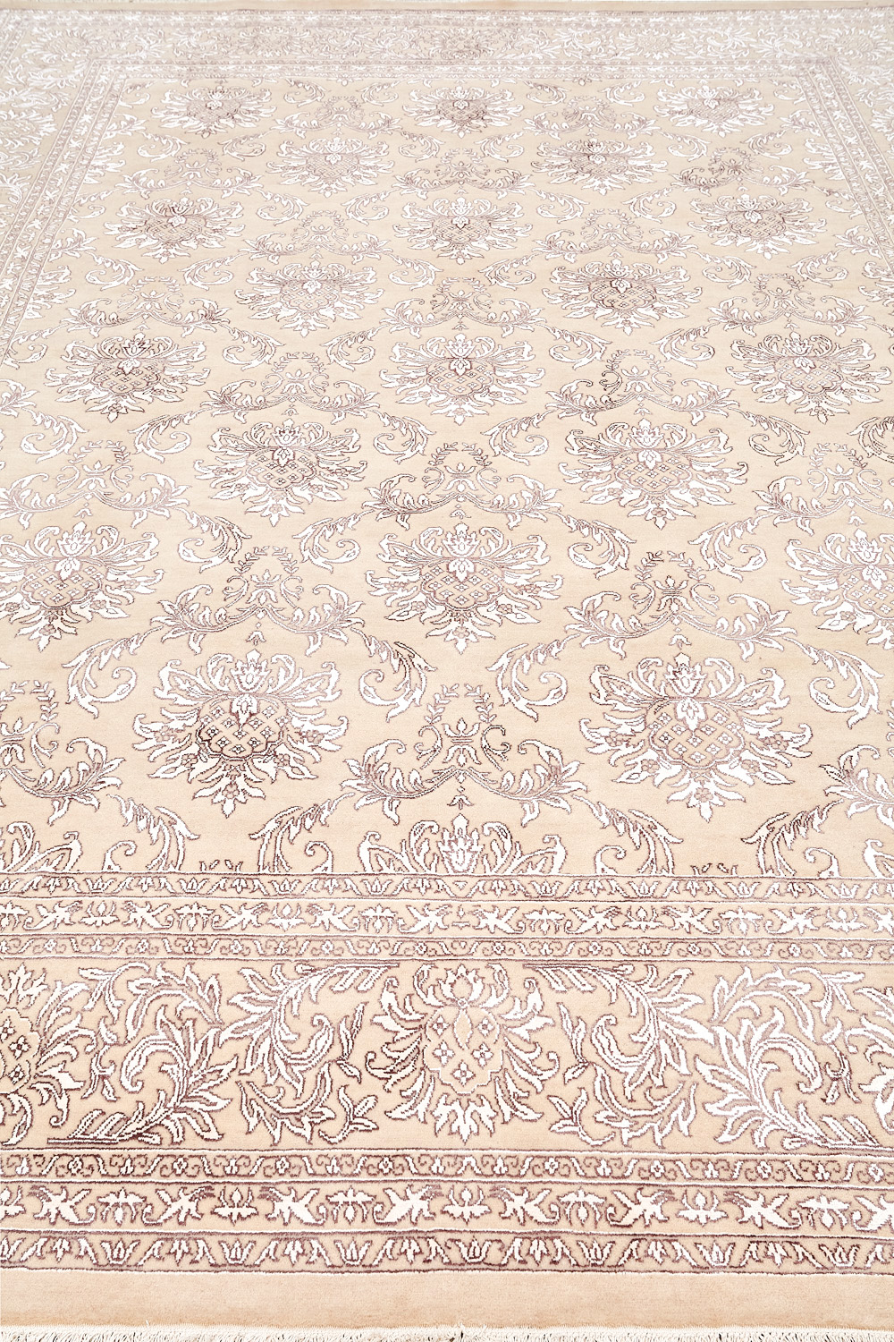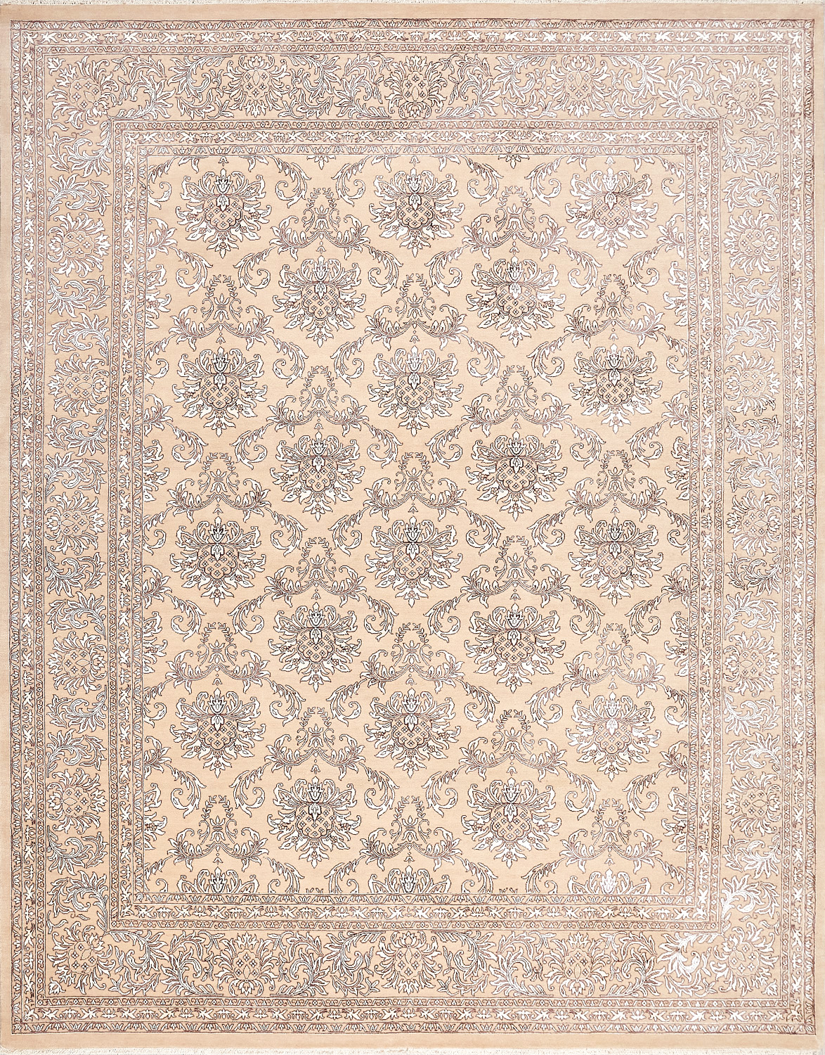 Каждый ковер в этой коллекции соткан вручную из шерсти и арт шёлка опытными индийскими мастерами.