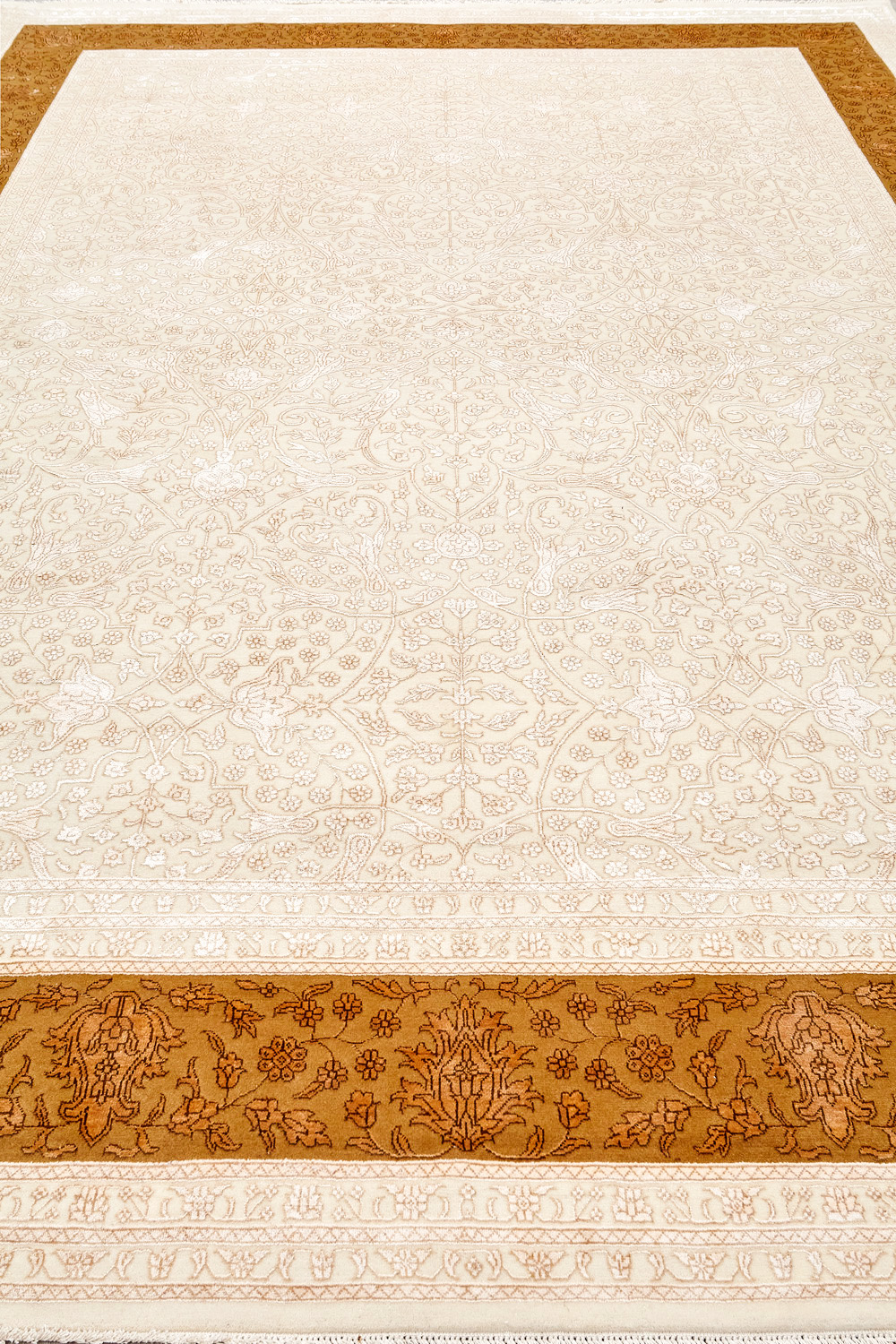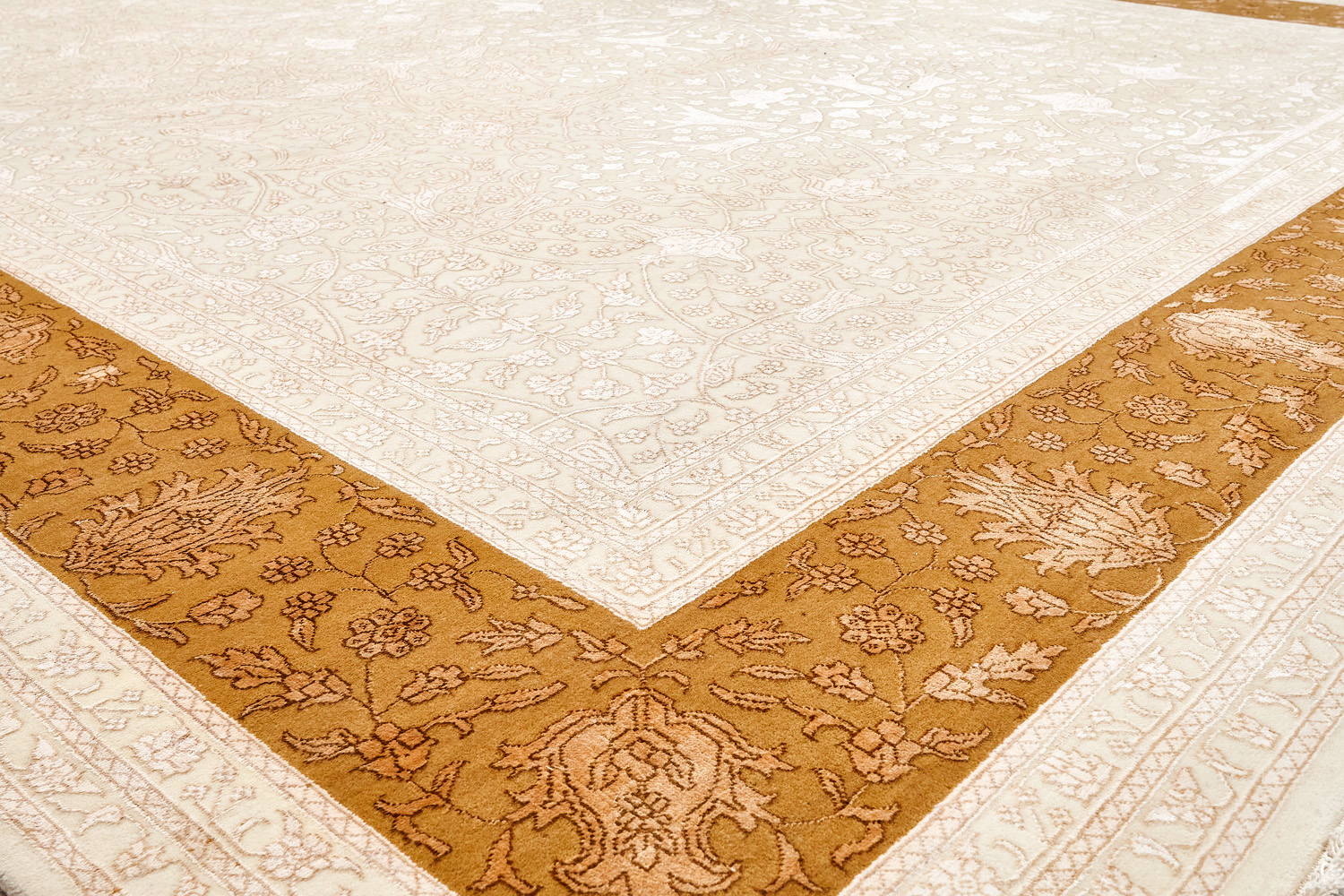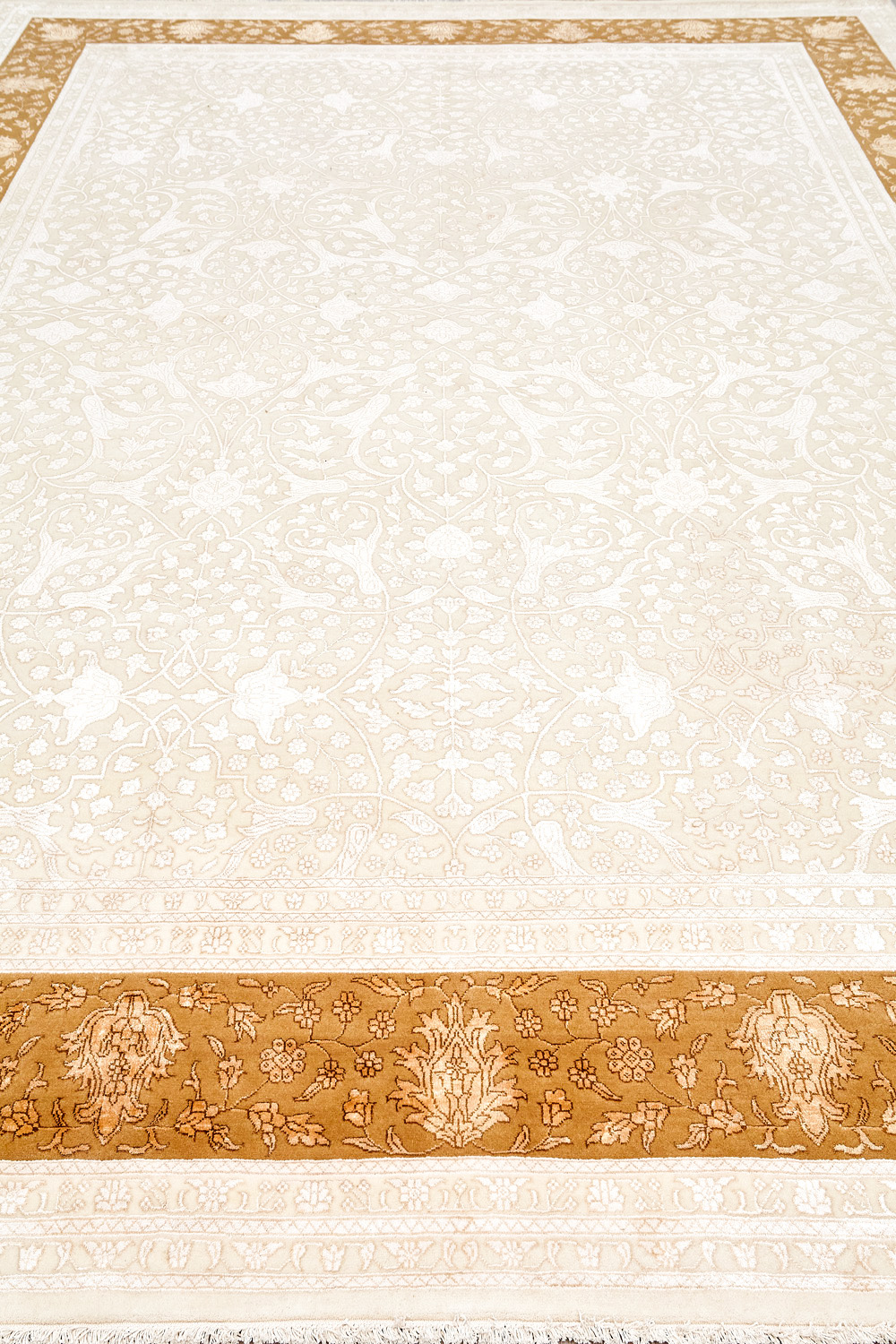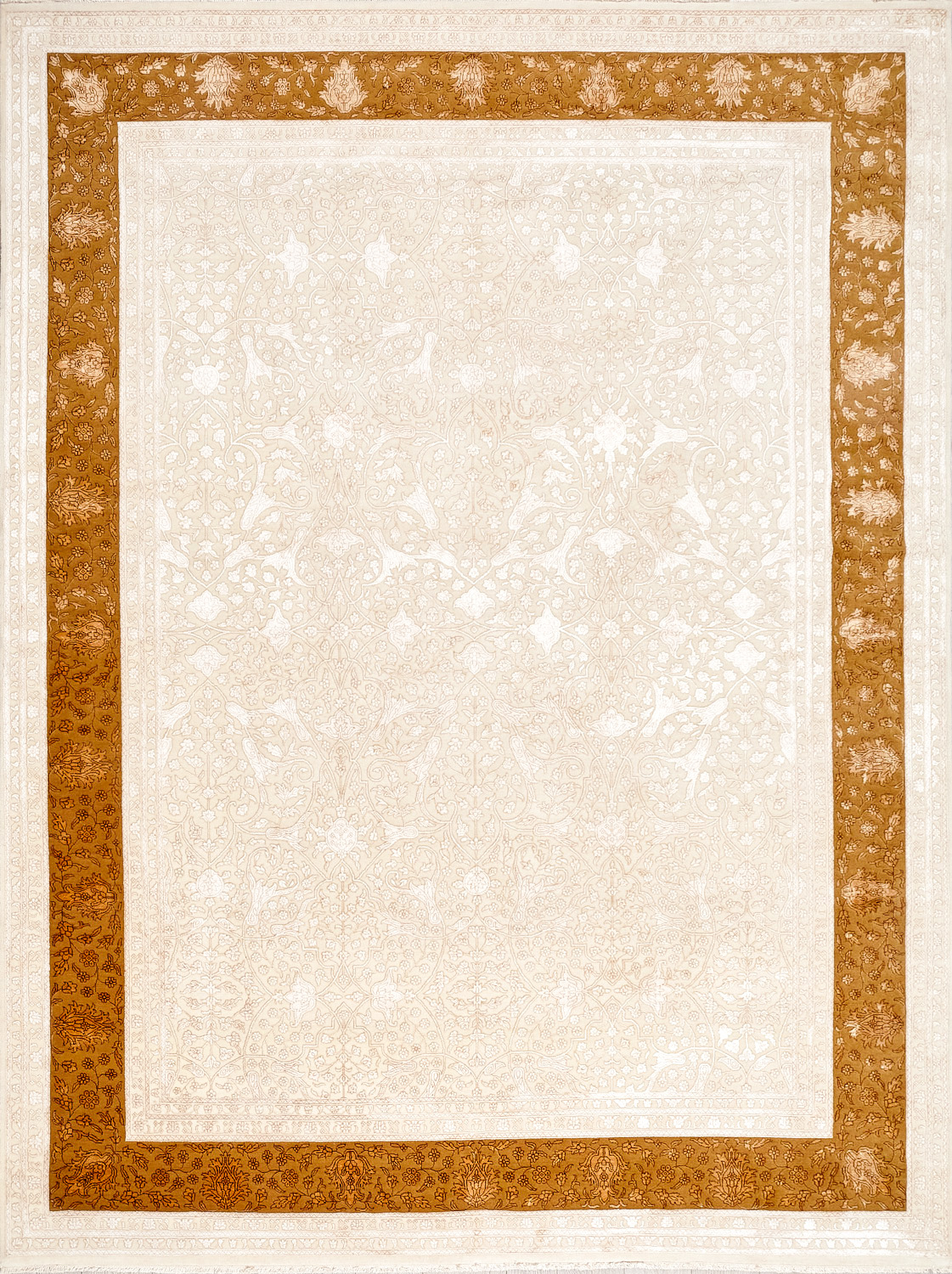 Более пяти веков назад в городе Агра зародилась знаменитая индийская школа ковроткачества, прославившаяся не меньше, чем расположенный здесь же Тадж-Махал. Мощное персидское влияние, помноженное на местный колорит, привело к появлению оригинальных орнаментов с богатыми растительными узорами — причудливым цветам, ветвям и листьям, разбросанным по всему полю ковра.