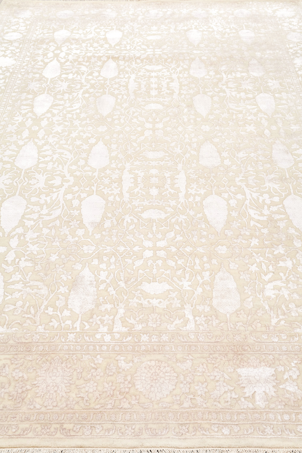 Каждый ковер в этой коллекции соткан вручную из шерсти и арт шёлка опытными индийскими мастерами.