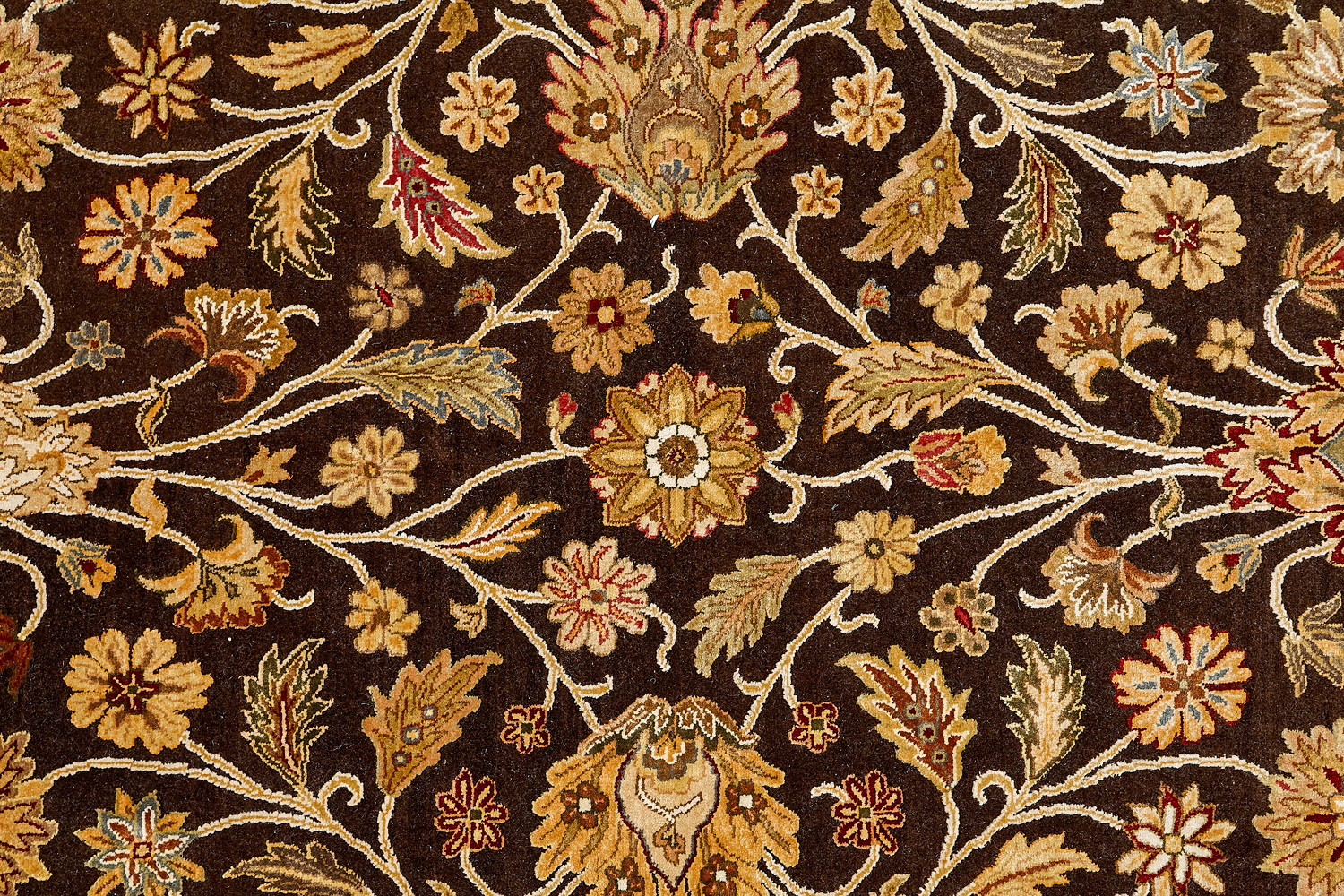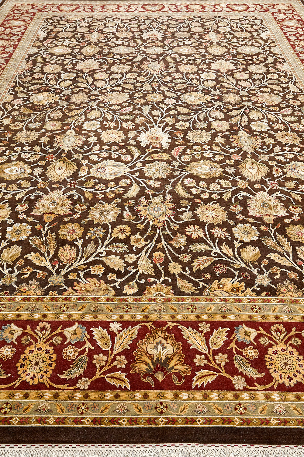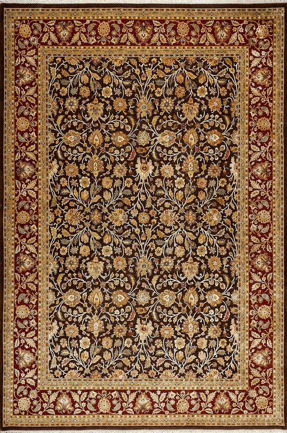 Более пяти веков назад в городе Агра зародилась знаменитая индийская школа ковроткачества, прославившаяся не меньше, чем расположенный здесь же Тадж-Махал. Мощное персидское влияние, помноженное на местный колорит, привело к появлению оригинальных орнаментов с богатыми растительными узорами — причудливым цветам, ветвям и листьям, разбросанным по всему полю ковра.