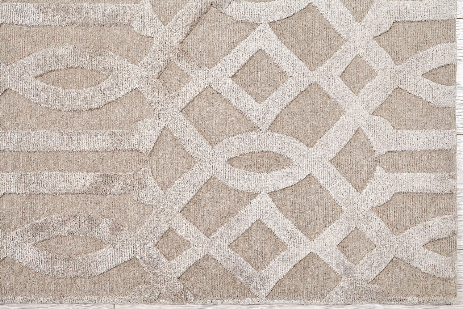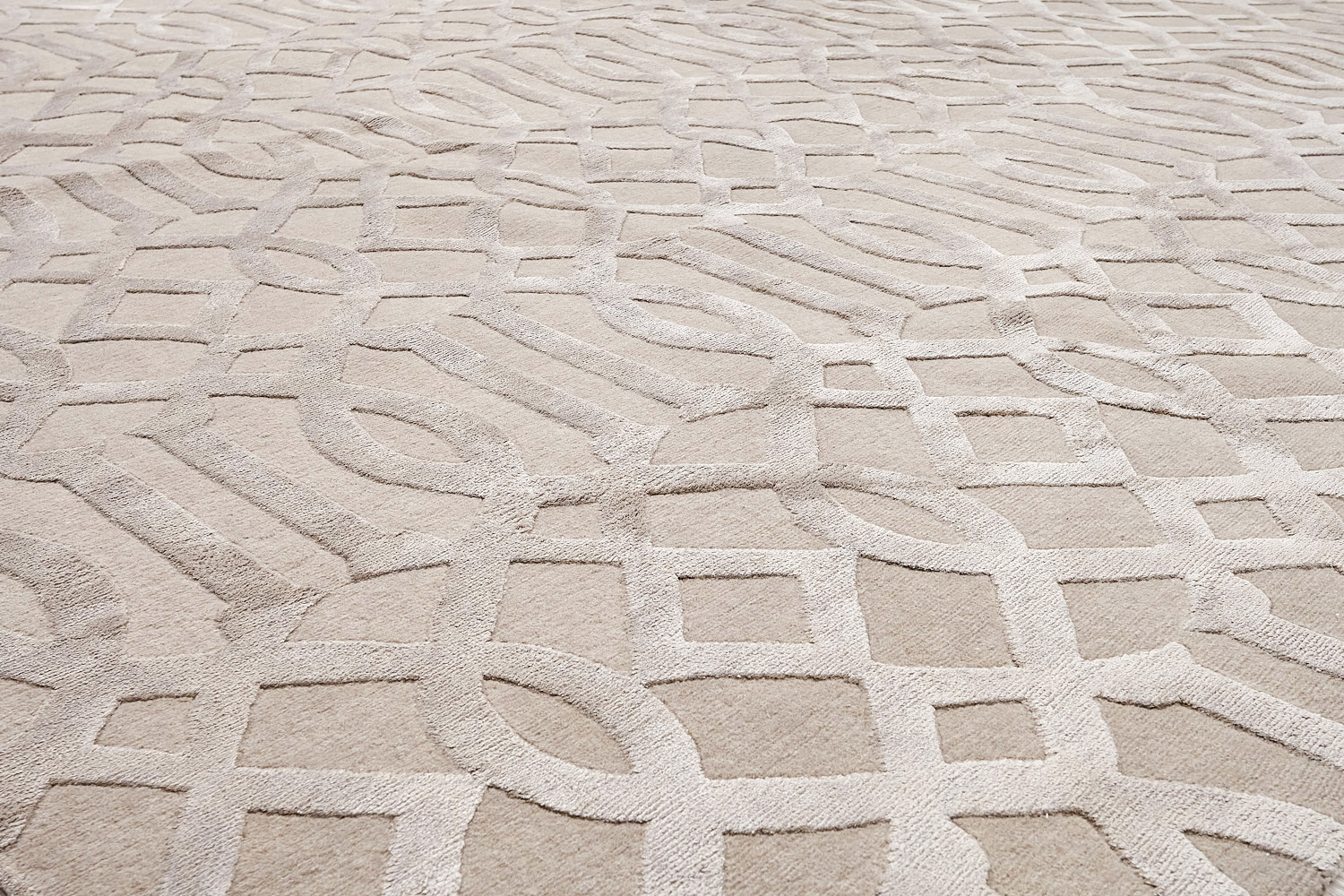 Крупные рисунки в виде линий и фигур на фактурной поверхности ковра превращаются в выразительные композиции. Они акцентируют на себе внимание и добавляют динамики в современный интерьер. Комбинации разных фигур и повторяющийся орнамент задают ритмическую основу пространству, привносят в него оригинальные оптические иллюзии.