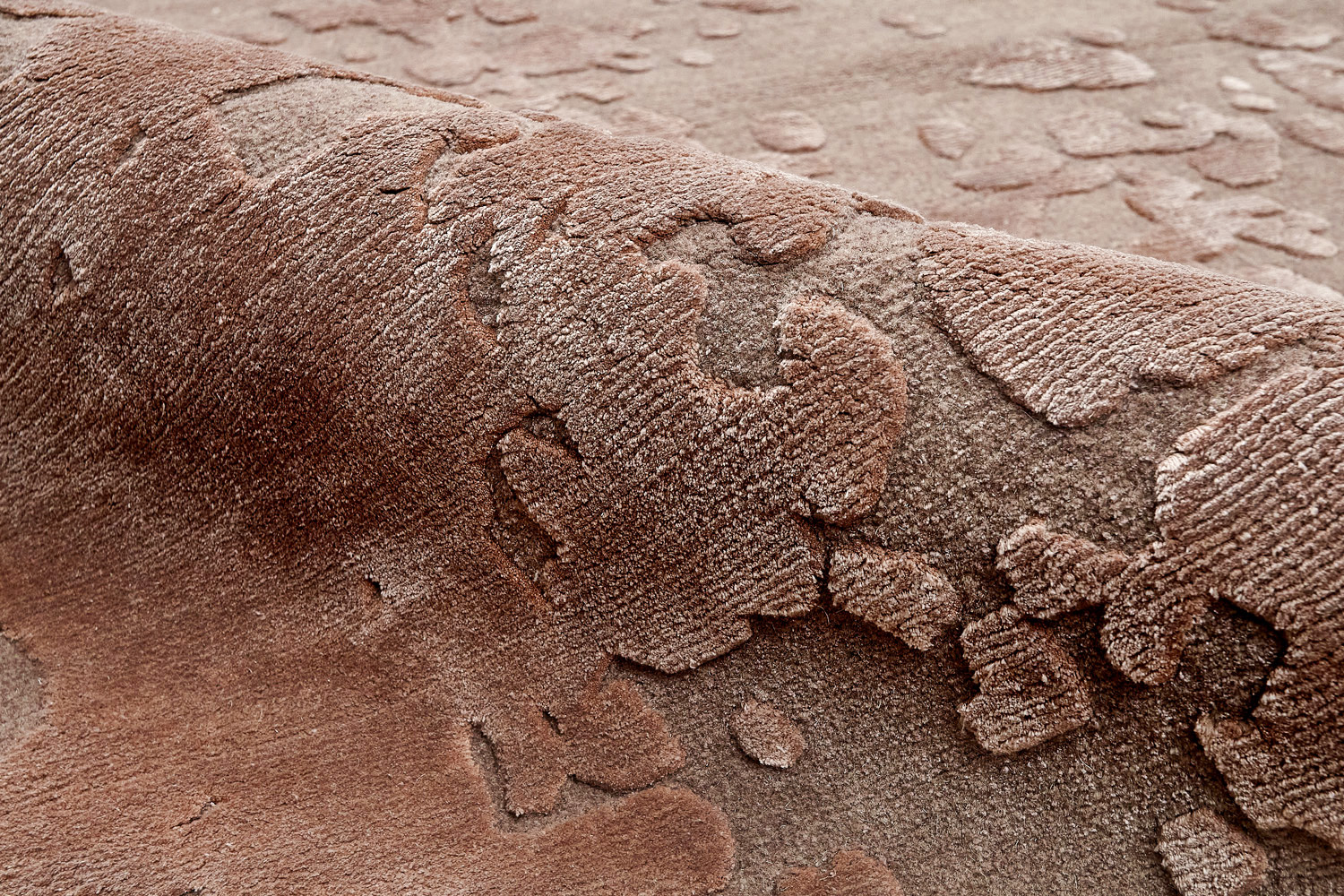 Дизайн ковров напоминает современные полотна художников-абстракционистов и производит столь же яркое и незабываемое впечатление в интерьере. Живописный эффект и необычная фактура зависят от выбора материала: натуральной шерсти, шёлка и от их сочетаний друг с другом. Ковры ткутся вручную в лучших мастерских Индии и Пакистана.