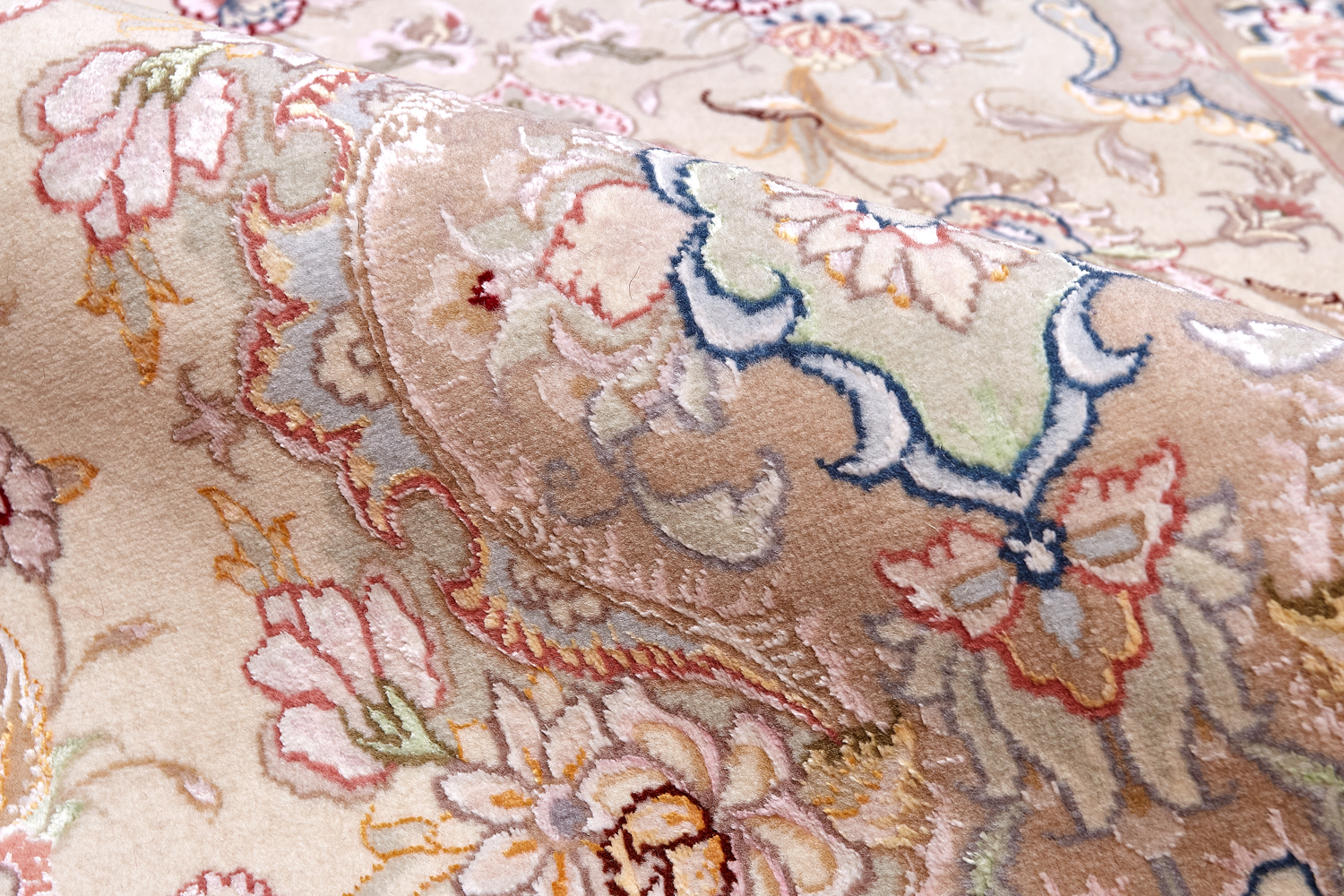 Ковры ткутся из шерсти и шёлка лучшими мастерами Ирана несколько лет, ведь обладают высочайшей плотностью для подобного состава ворса в 600 тысяч узлов на квадратный метр.