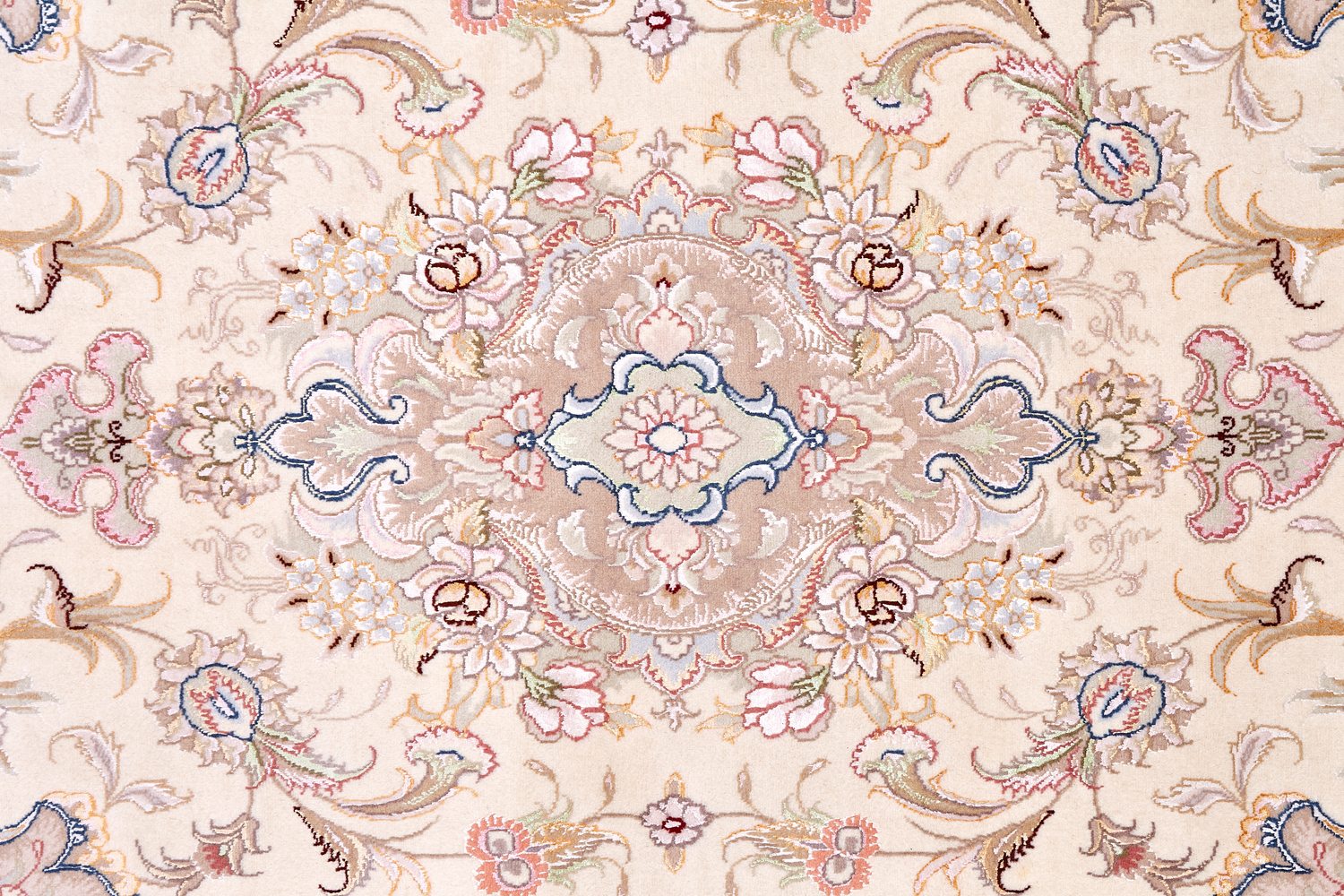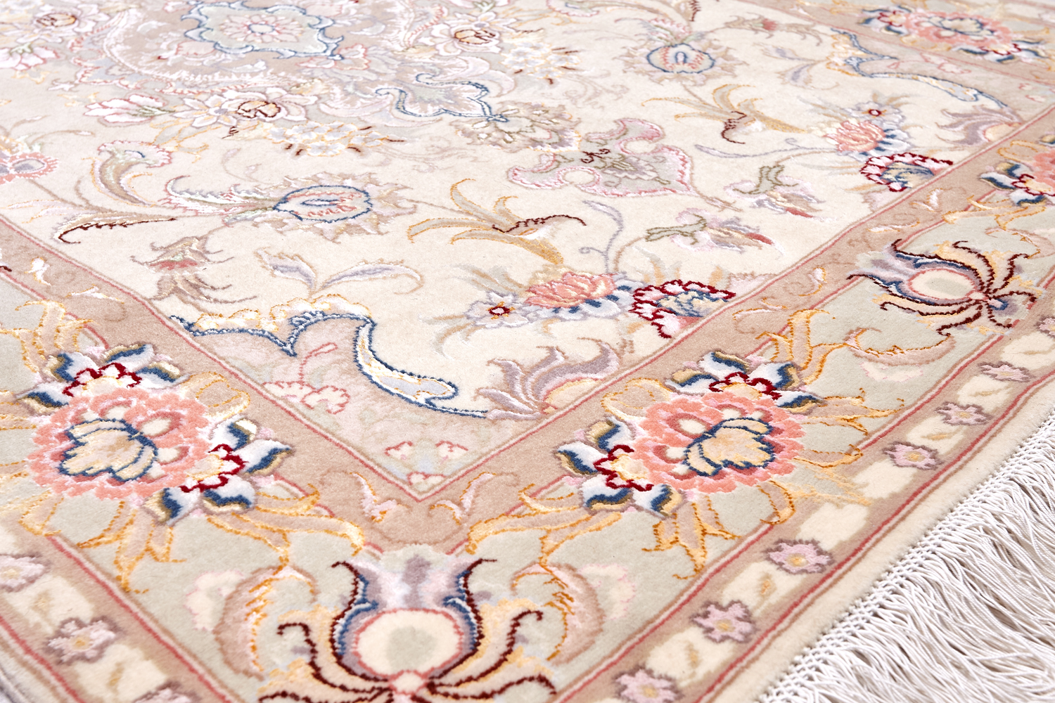Рассыпанные по всему полю цветы, медальоны и «рыбная чешуя» — основные мотивы в дизайне ковров из коллекции Тебриз, а светлые тона и спокойные пастельные оттенки — основная цветовая палитра.