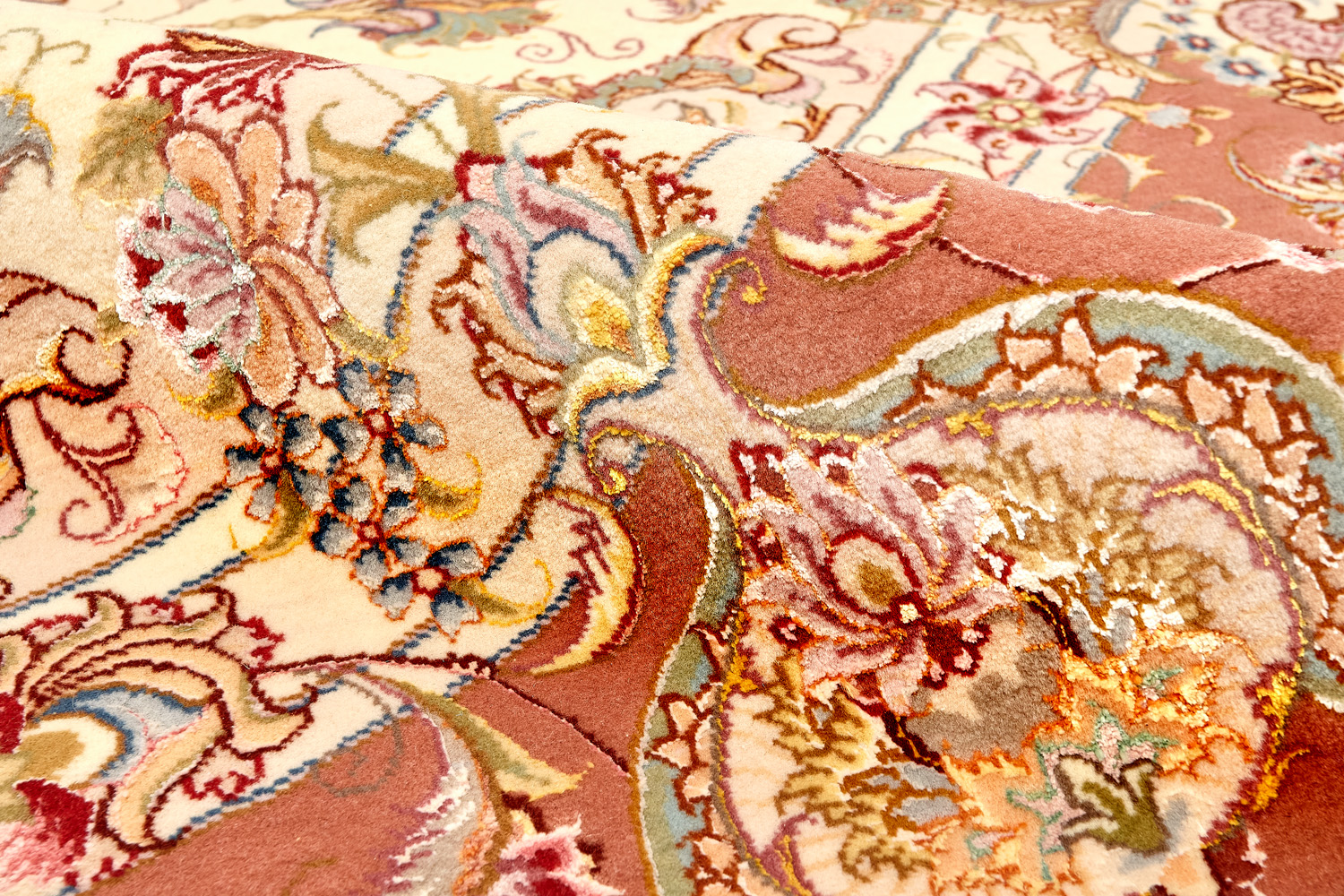 Ковры ткутся из шерсти и шёлка лучшими мастерами Ирана несколько лет, ведь обладают высочайшей плотностью для подобного состава ворса в 600 тысяч узлов на квадратный метр.