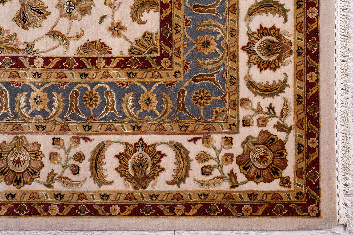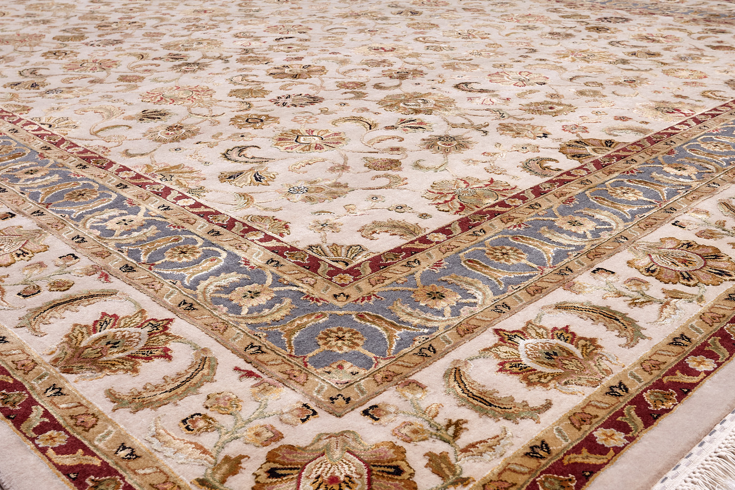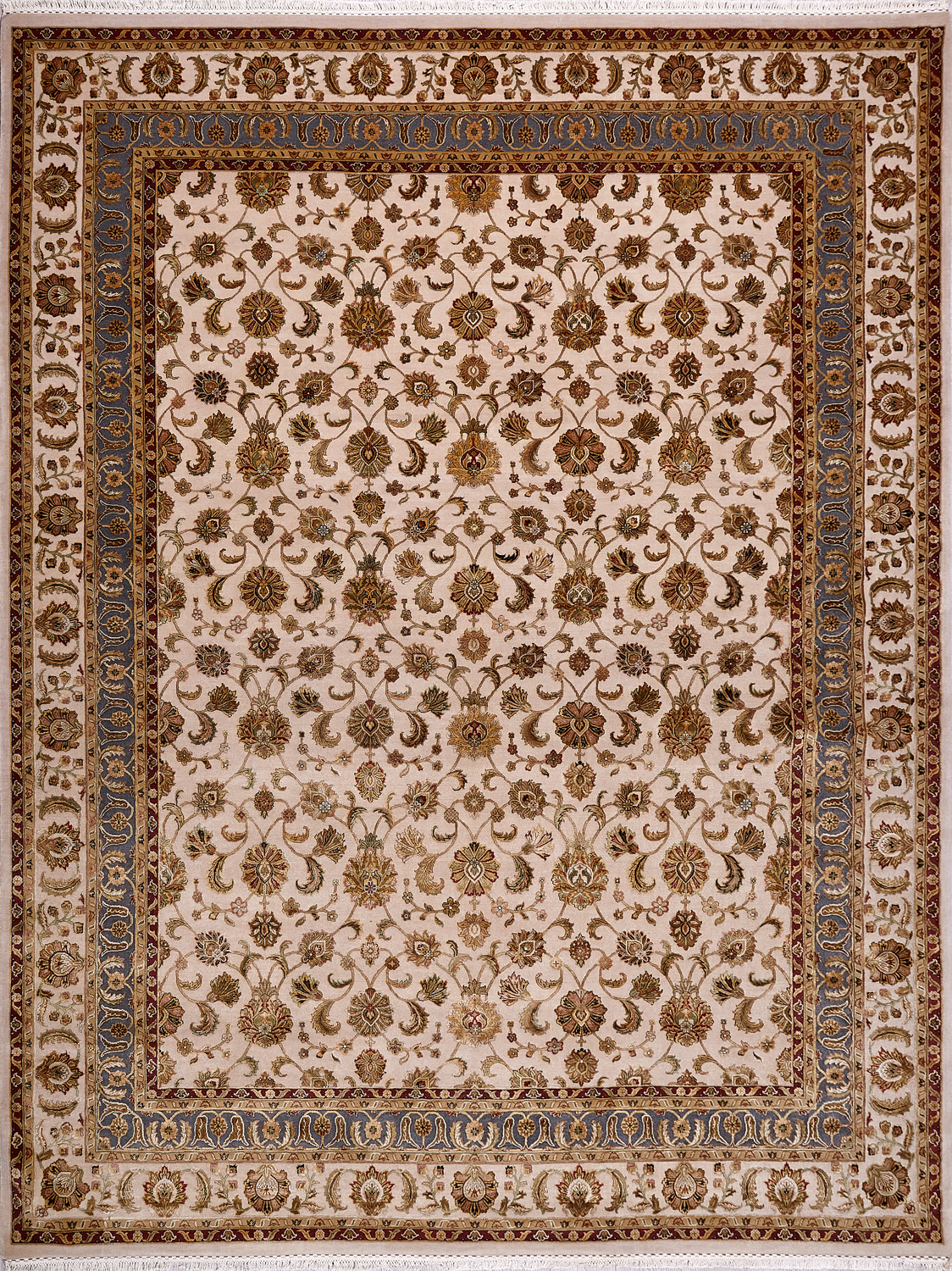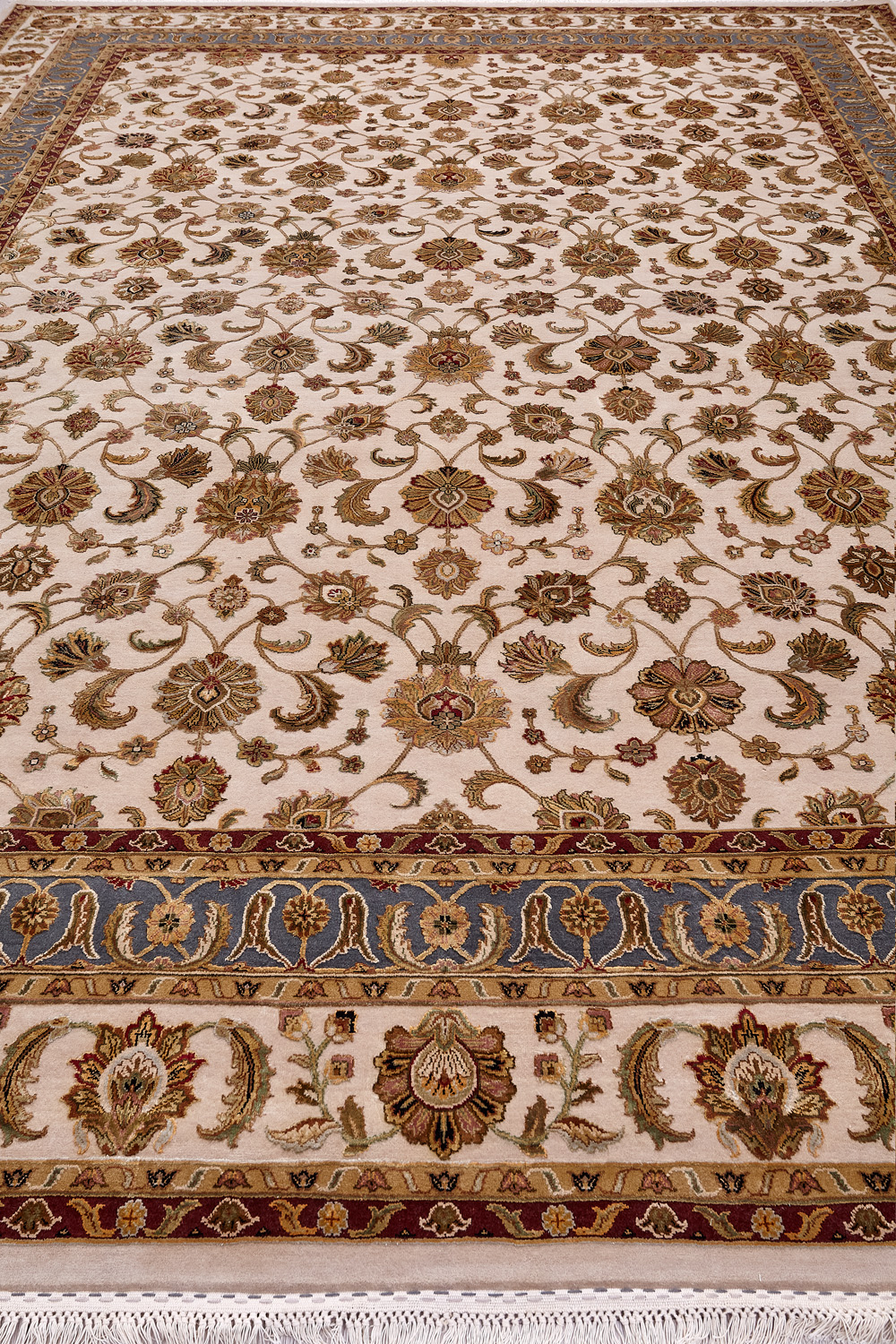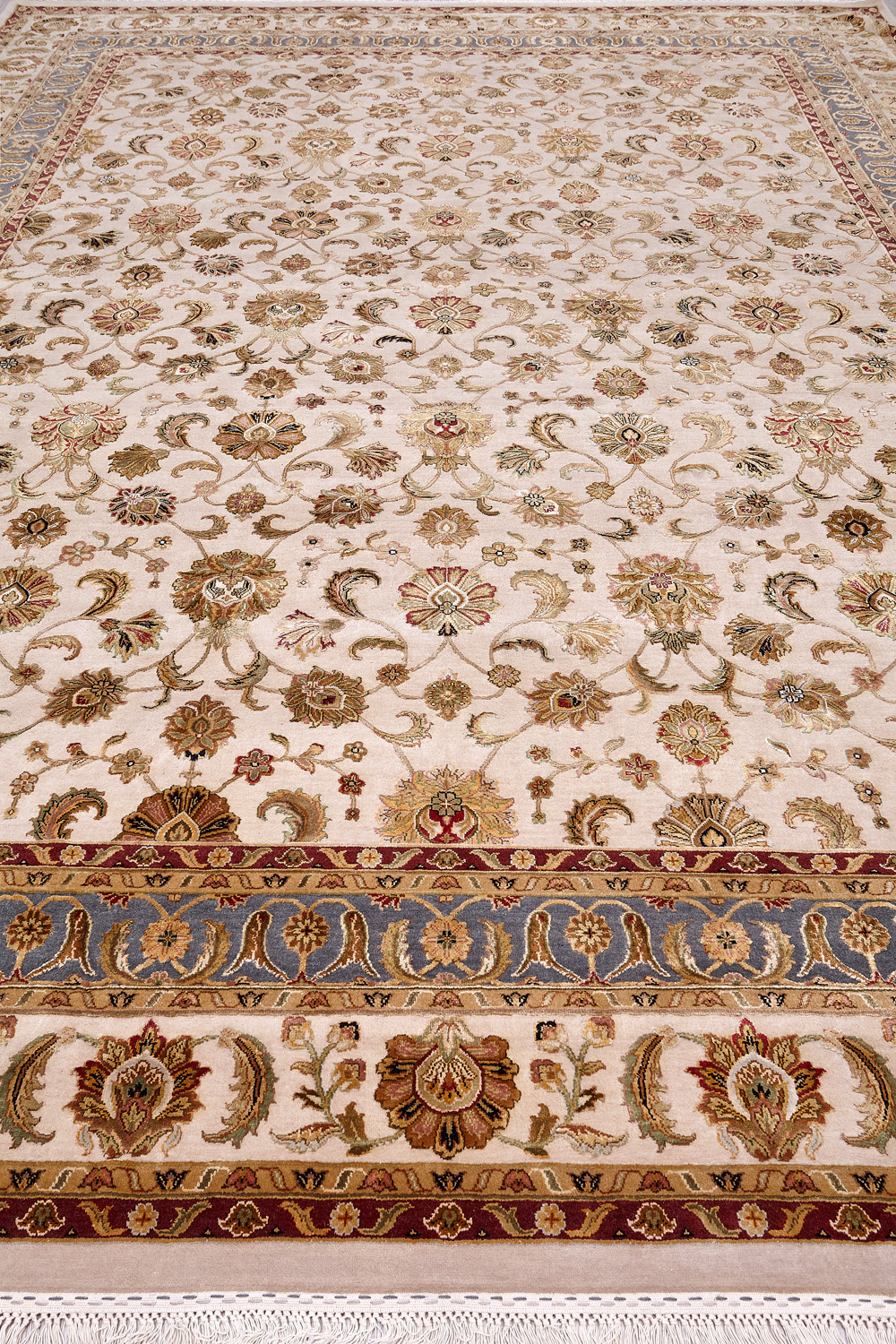 Более пяти веков назад в городе Агра зародилась знаменитая индийская школа ковроткачества, прославившаяся не меньше, чем расположенный здесь же Тадж-Махал. Мощное персидское влияние, помноженное на местный колорит, привело к появлению оригинальных орнаментов с богатыми растительными узорами — причудливым цветам, ветвям и листьям, разбросанным по всему полю ковра.