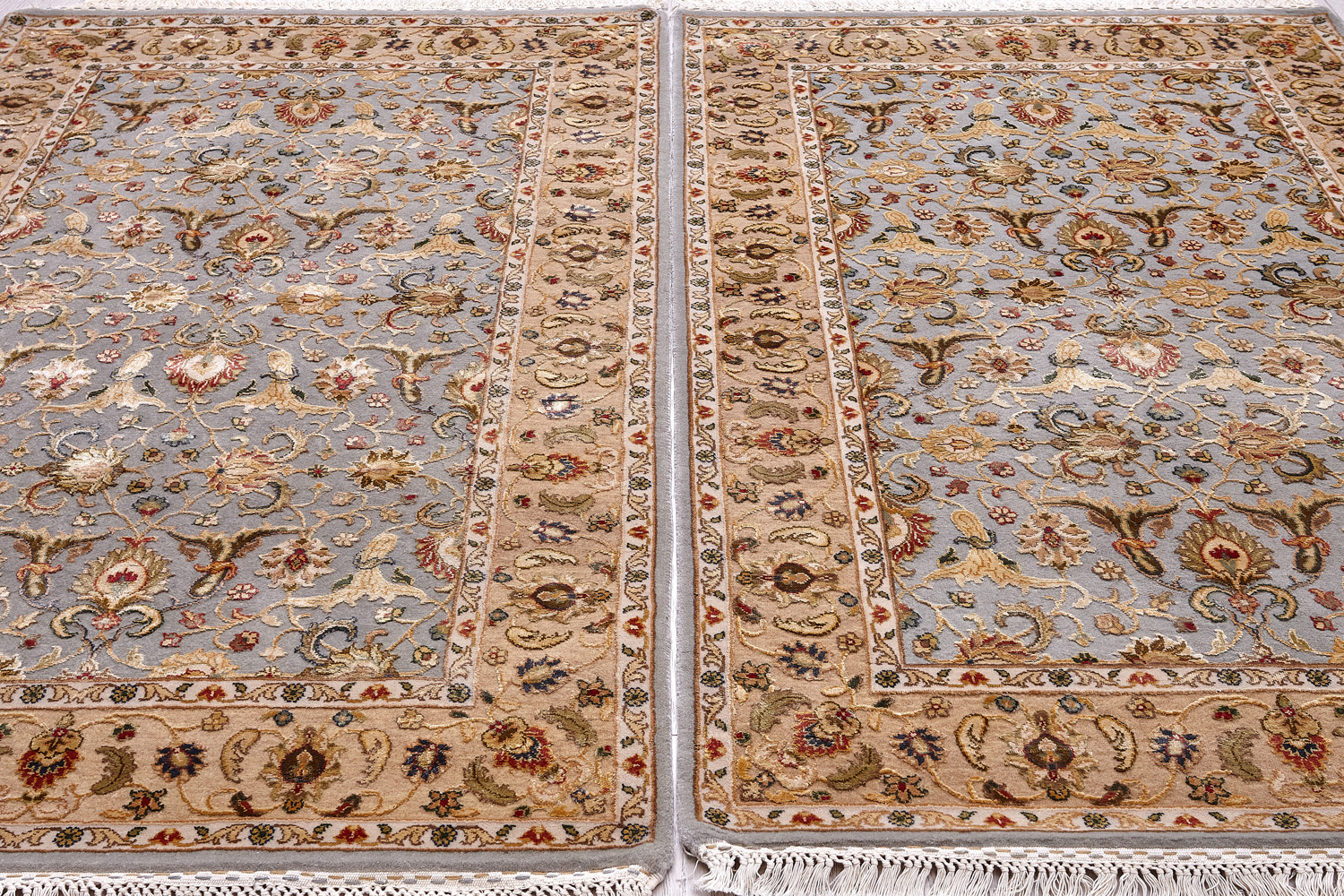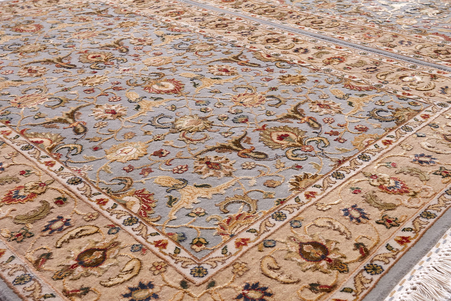 Более пяти веков назад в городе Агра зародилась знаменитая индийская школа ковроткачества, прославившаяся не меньше, чем расположенный здесь же Тадж-Махал. Мощное персидское влияние, помноженное на местный колорит, привело к появлению оригинальных орнаментов с богатыми растительными узорами — причудливым цветам, ветвям и листьям, разбросанным по всему полю ковра.