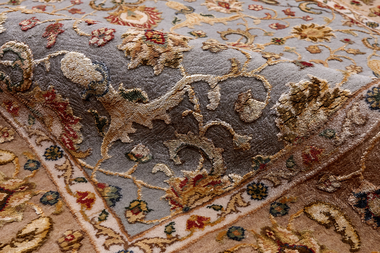 Более пяти веков назад в городе Агра зародилась знаменитая индийская школа ковроткачества, прославившаяся не меньше, чем расположенный здесь же Тадж-Махал. Мощное персидское влияние, помноженное на местный колорит, привело к появлению оригинальных орнаментов с богатыми растительными узорами — причудливым цветам, ветвям и листьям, разбросанным по всему полю ковра.