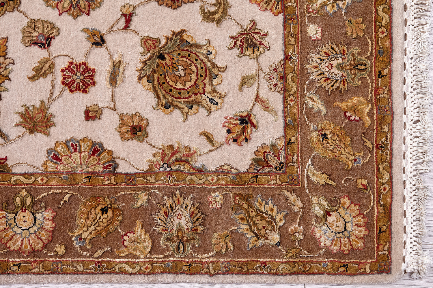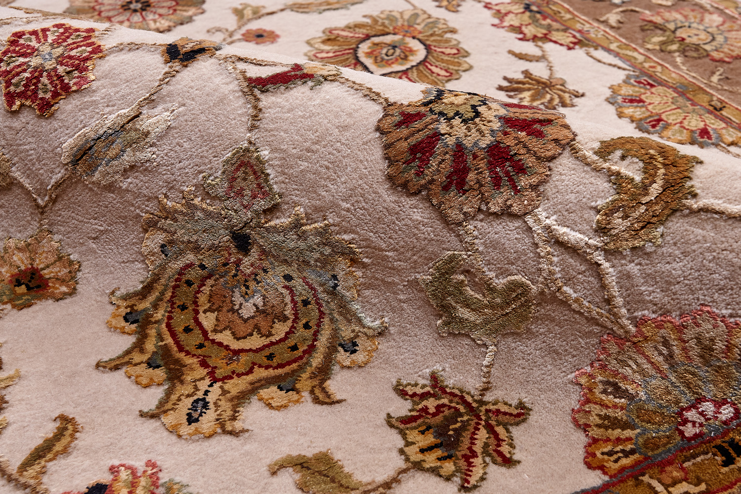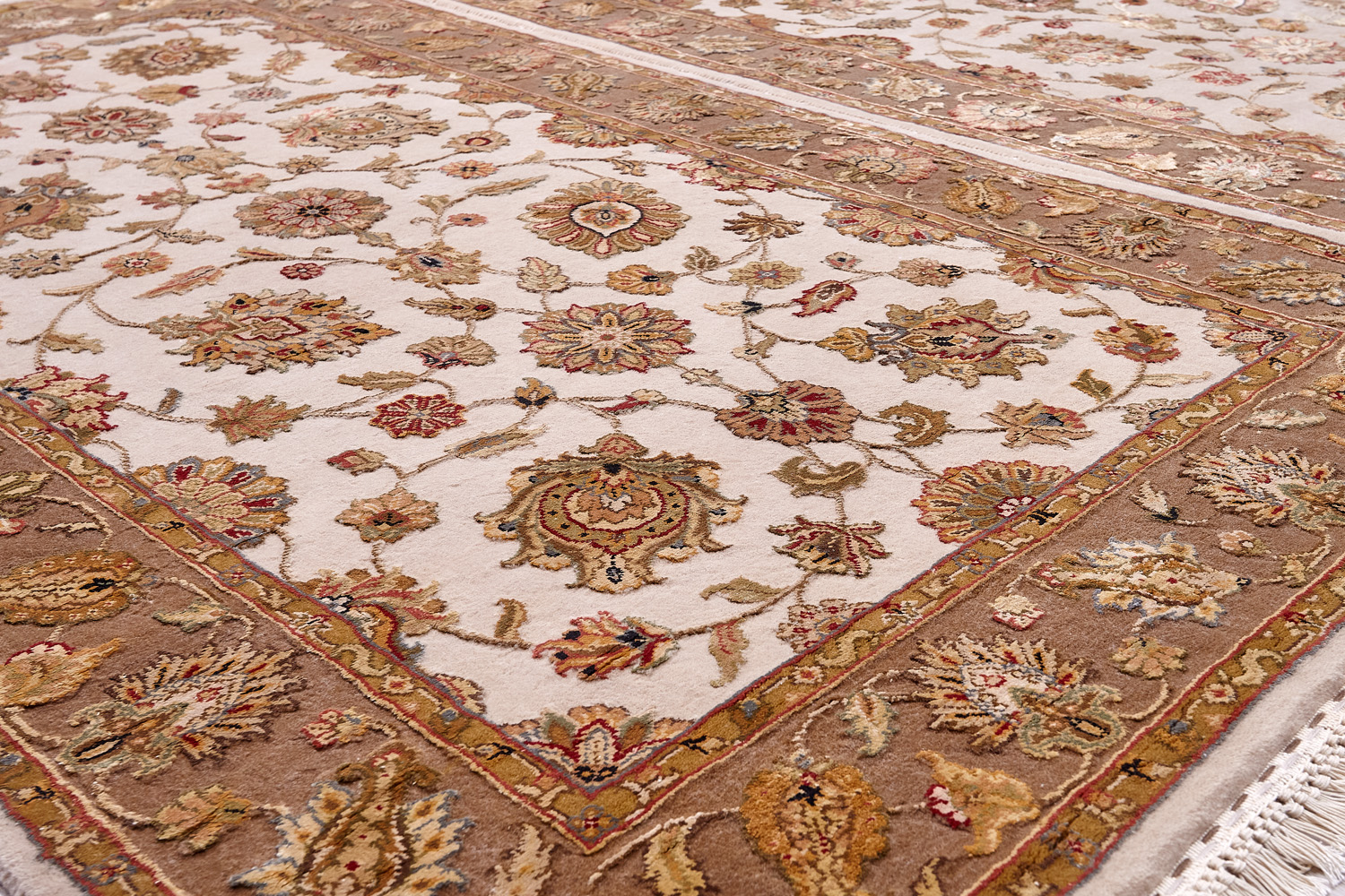 Более пяти веков назад в городе Агра зародилась знаменитая индийская школа ковроткачества, прославившаяся не меньше, чем расположенный здесь же Тадж-Махал. Мощное персидское влияние, помноженное на местный колорит, привело к появлению оригинальных орнаментов с богатыми растительными узорами — причудливым цветам, ветвям и листьям, разбросанным по всему полю ковра.