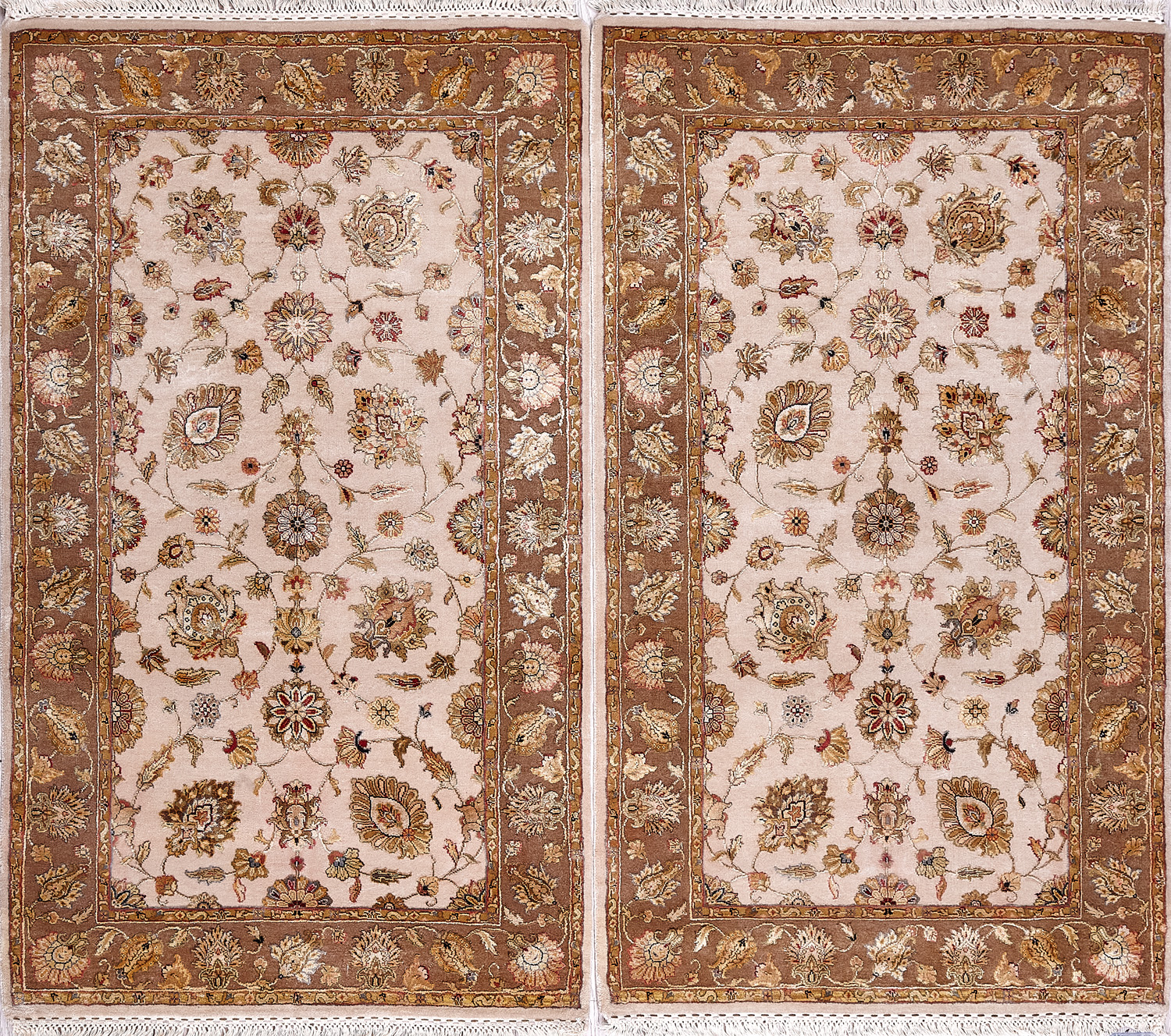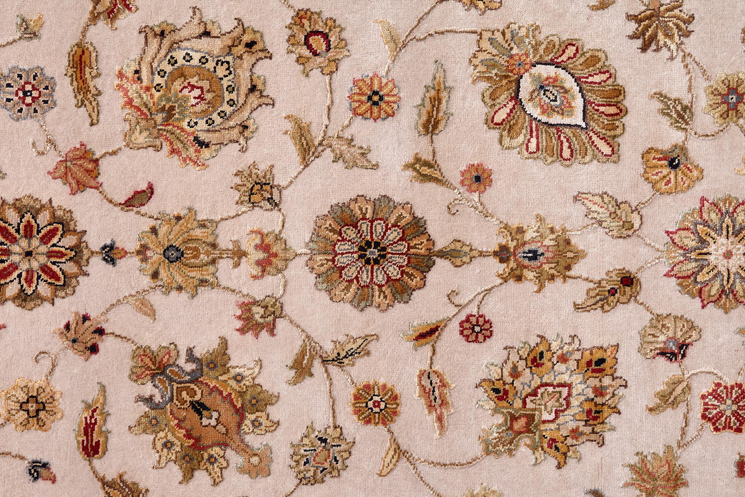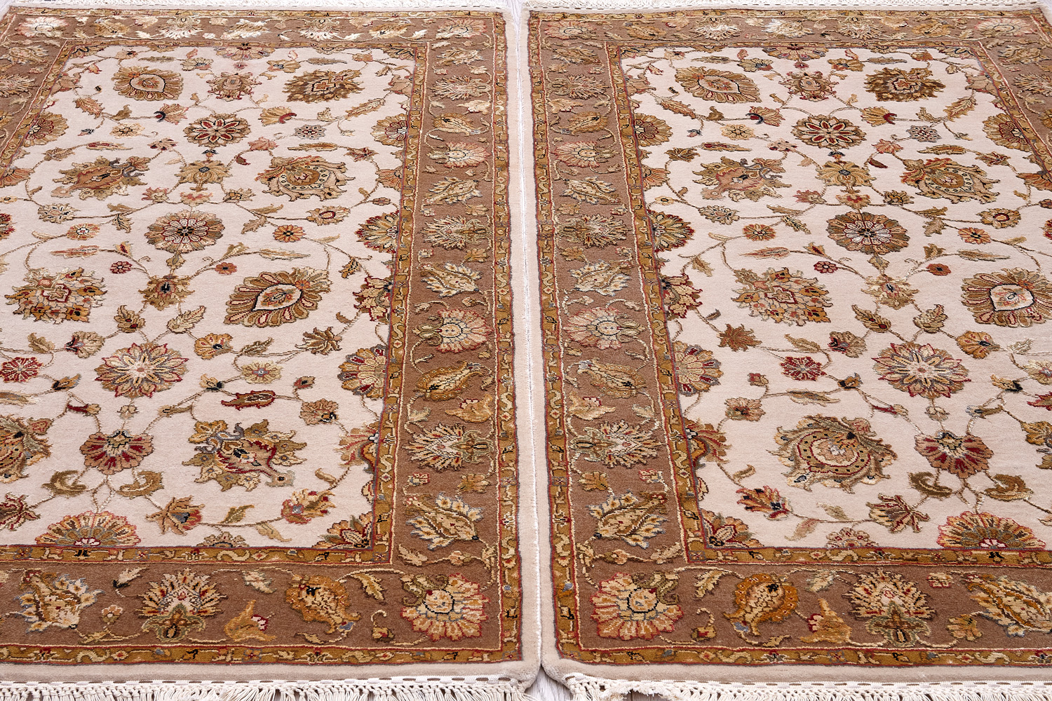 Более пяти веков назад в городе Агра зародилась знаменитая индийская школа ковроткачества, прославившаяся не меньше, чем расположенный здесь же Тадж-Махал. Мощное персидское влияние, помноженное на местный колорит, привело к появлению оригинальных орнаментов с богатыми растительными узорами — причудливым цветам, ветвям и листьям, разбросанным по всему полю ковра.