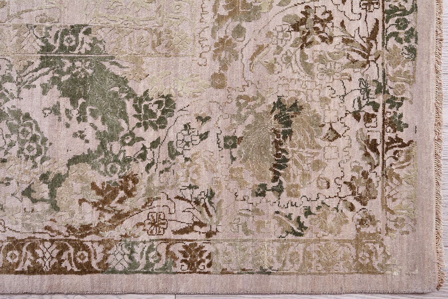 Родина этих ковров Индия. Чтобы создать такое произведение искусства у мастеров уходит от одного года до двух лет. Плотность ковров, в зависимости от размера, составляет от 250 000 до 400 000 узлов на квадратный метр.