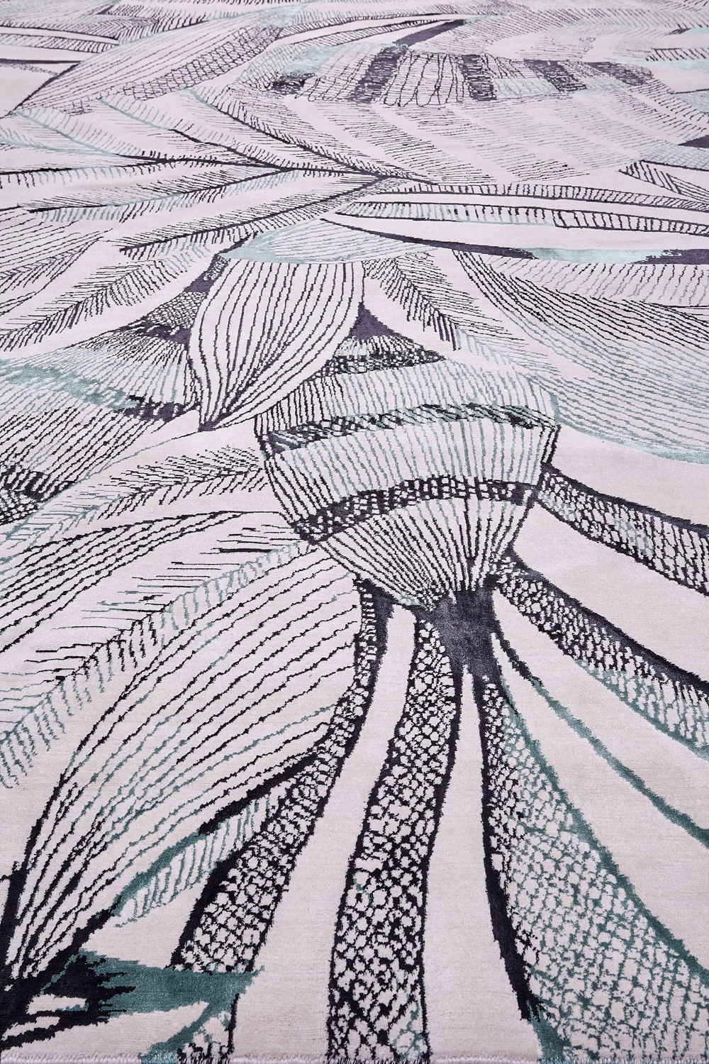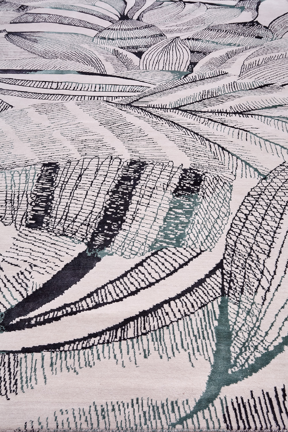 Дизайн ковров напоминает современные полотна художников-абстракционистов и производит столь же яркое и незабываемое впечатление в интерьере. Живописный эффект и необычная фактура зависят от выбора материала: натуральной шерсти, шёлка и от их сочетаний друг с другом. Ковры ткутся вручную в лучших мастерских Индии и Пакистана.