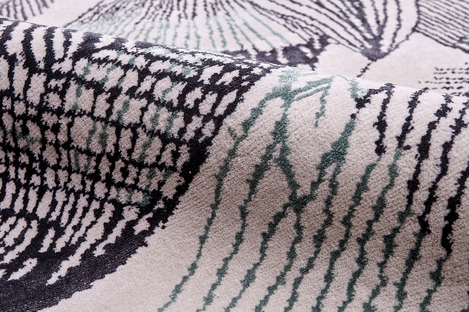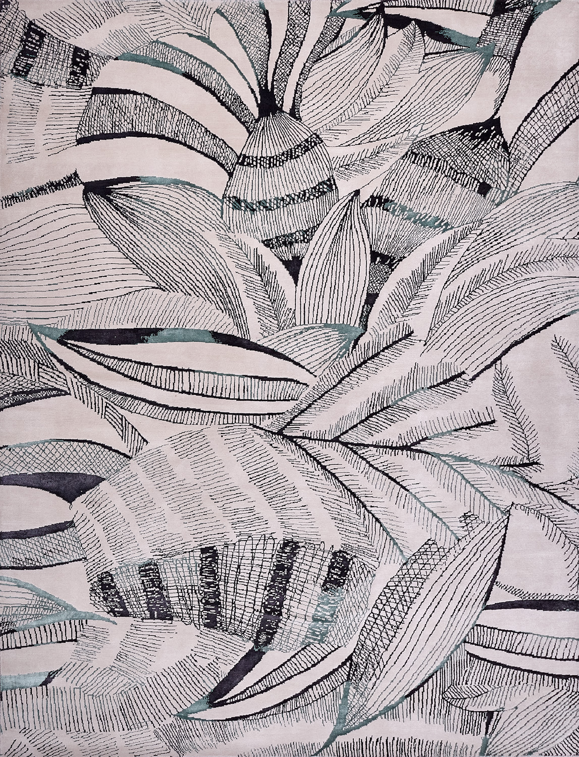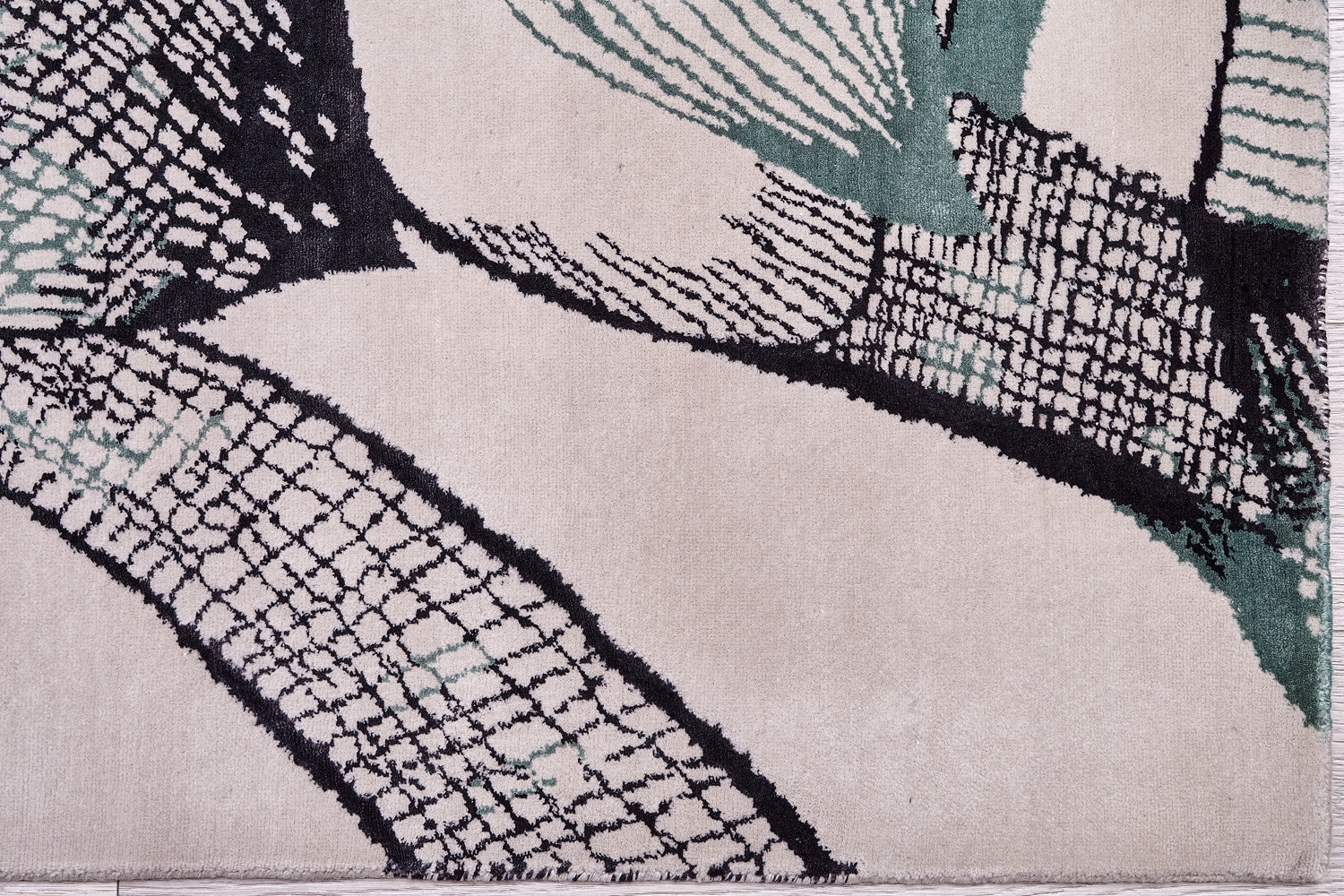 Дизайн ковров напоминает современные полотна художников-абстракционистов и производит столь же яркое и незабываемое впечатление в интерьере. Живописный эффект и необычная фактура зависят от выбора материала: натуральной шерсти, шёлка и от их сочетаний друг с другом. Ковры ткутся вручную в лучших мастерских Индии и Пакистана.