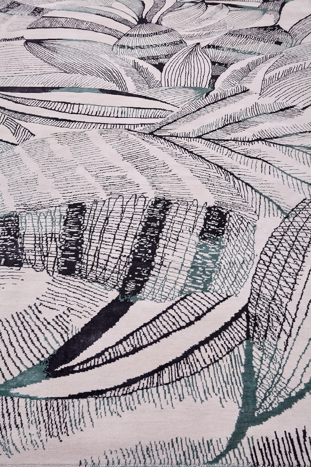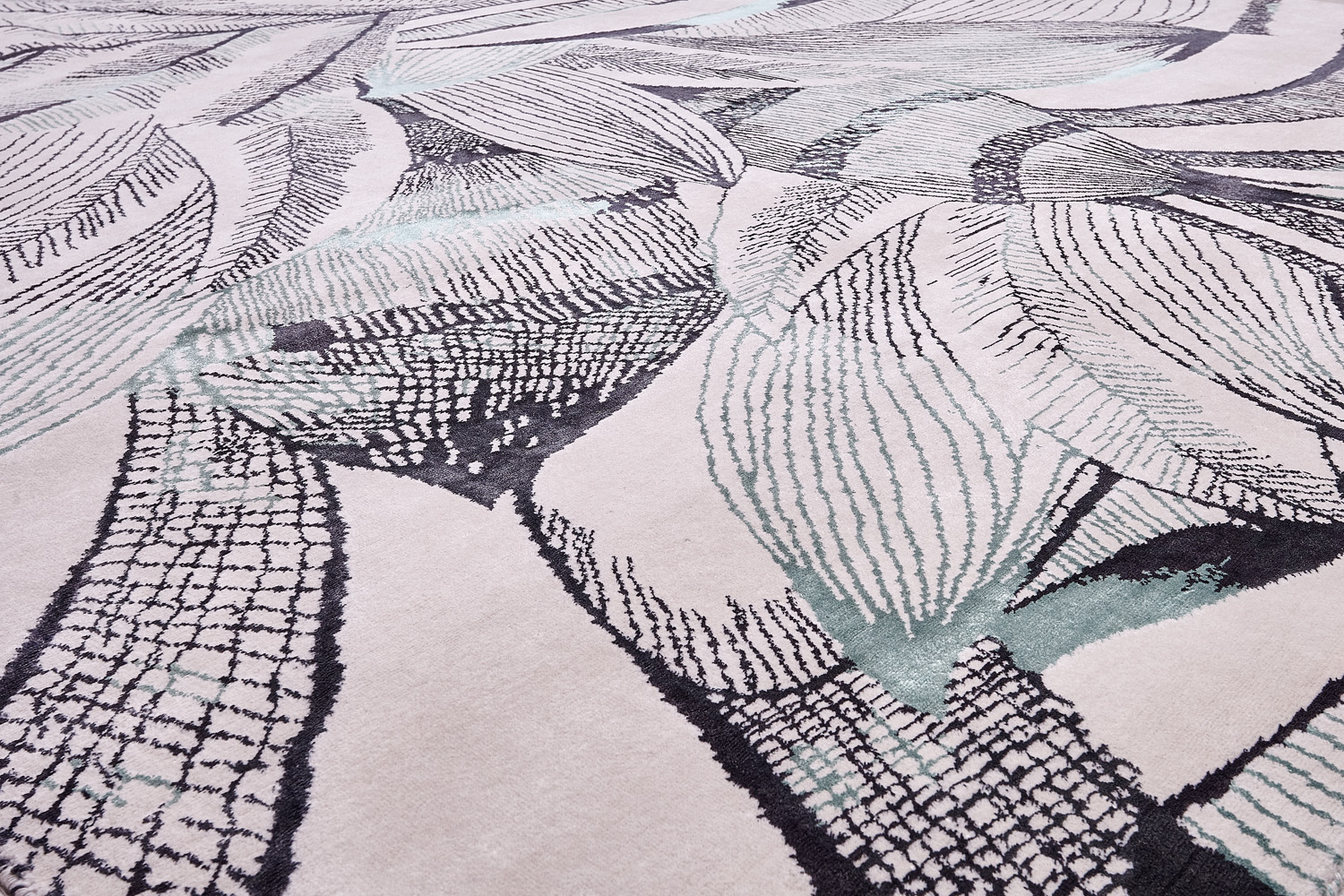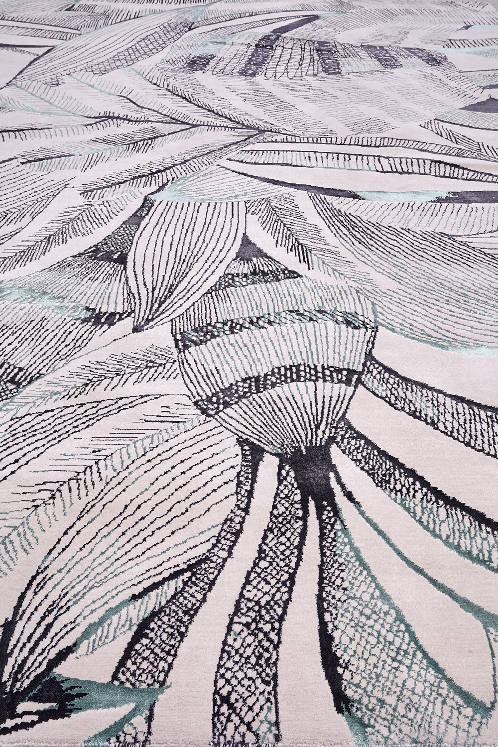 Дизайн ковров напоминает современные полотна художников-абстракционистов и производит столь же яркое и незабываемое впечатление в интерьере. Живописный эффект и необычная фактура зависят от выбора материала: натуральной шерсти, шёлка и от их сочетаний друг с другом. Ковры ткутся вручную в лучших мастерских Индии и Пакистана.