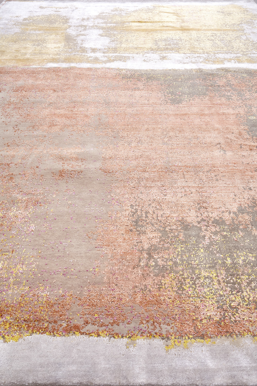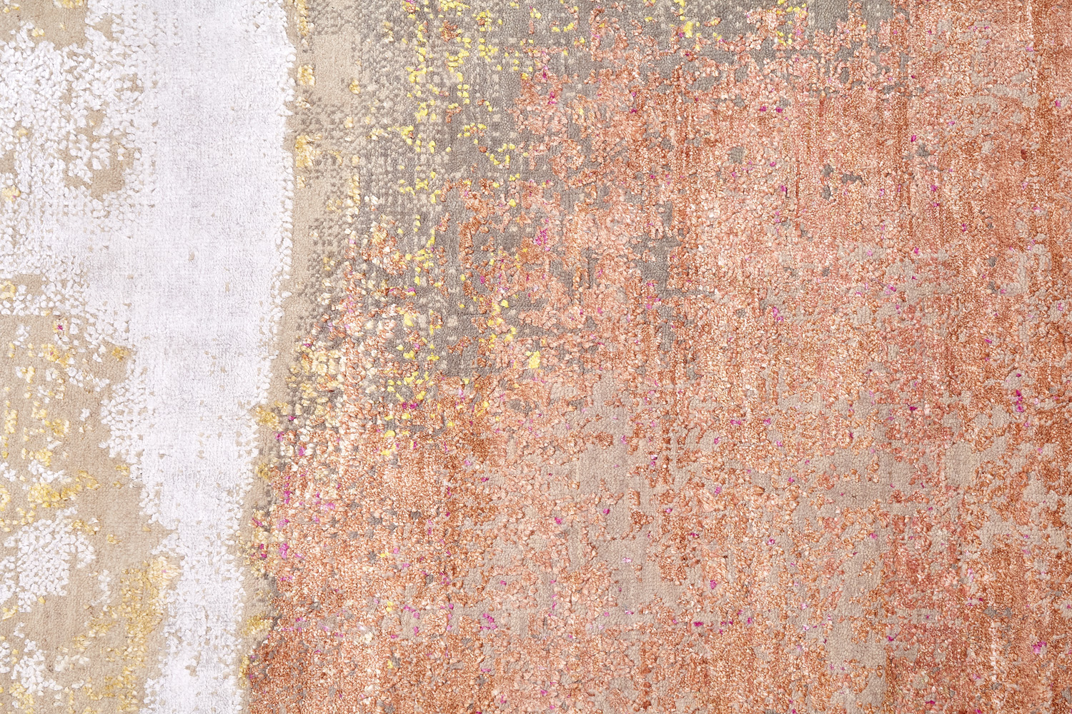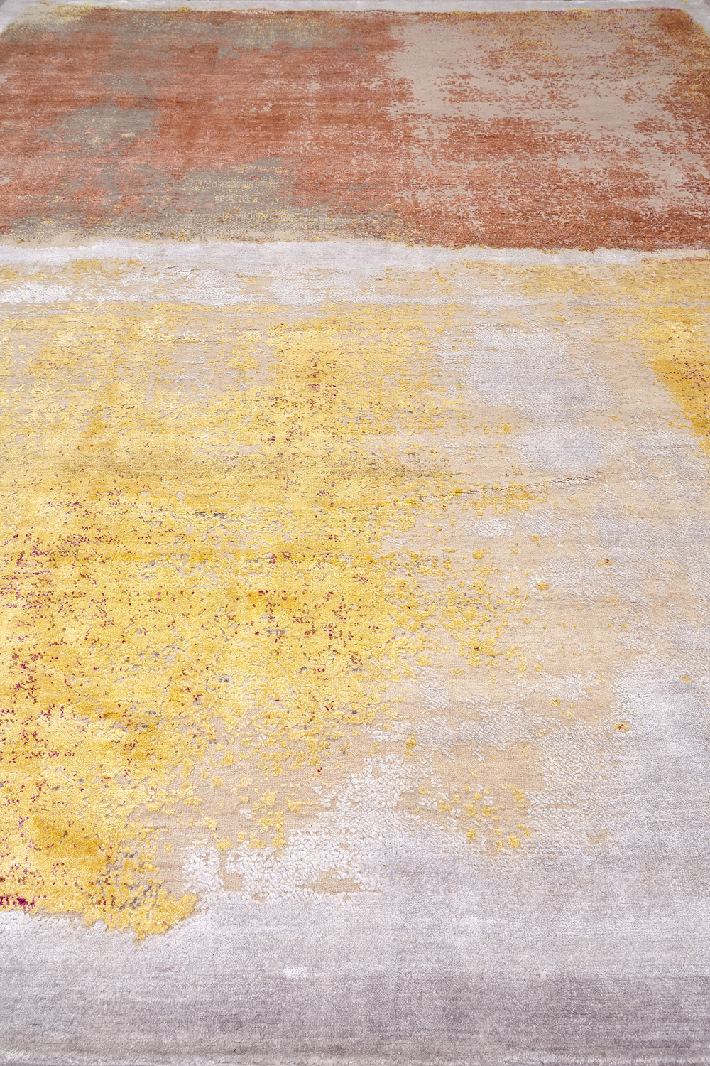 Дизайн ковров напоминает современные полотна художников-абстракционистов и производит столь же яркое и незабываемое впечатление в интерьере. Живописный эффект и необычная фактура зависят от выбора материала: натуральной шерсти, шёлка и от их сочетаний друг с другом. Ковры ткутся вручную в лучших мастерских Индии и Пакистана.