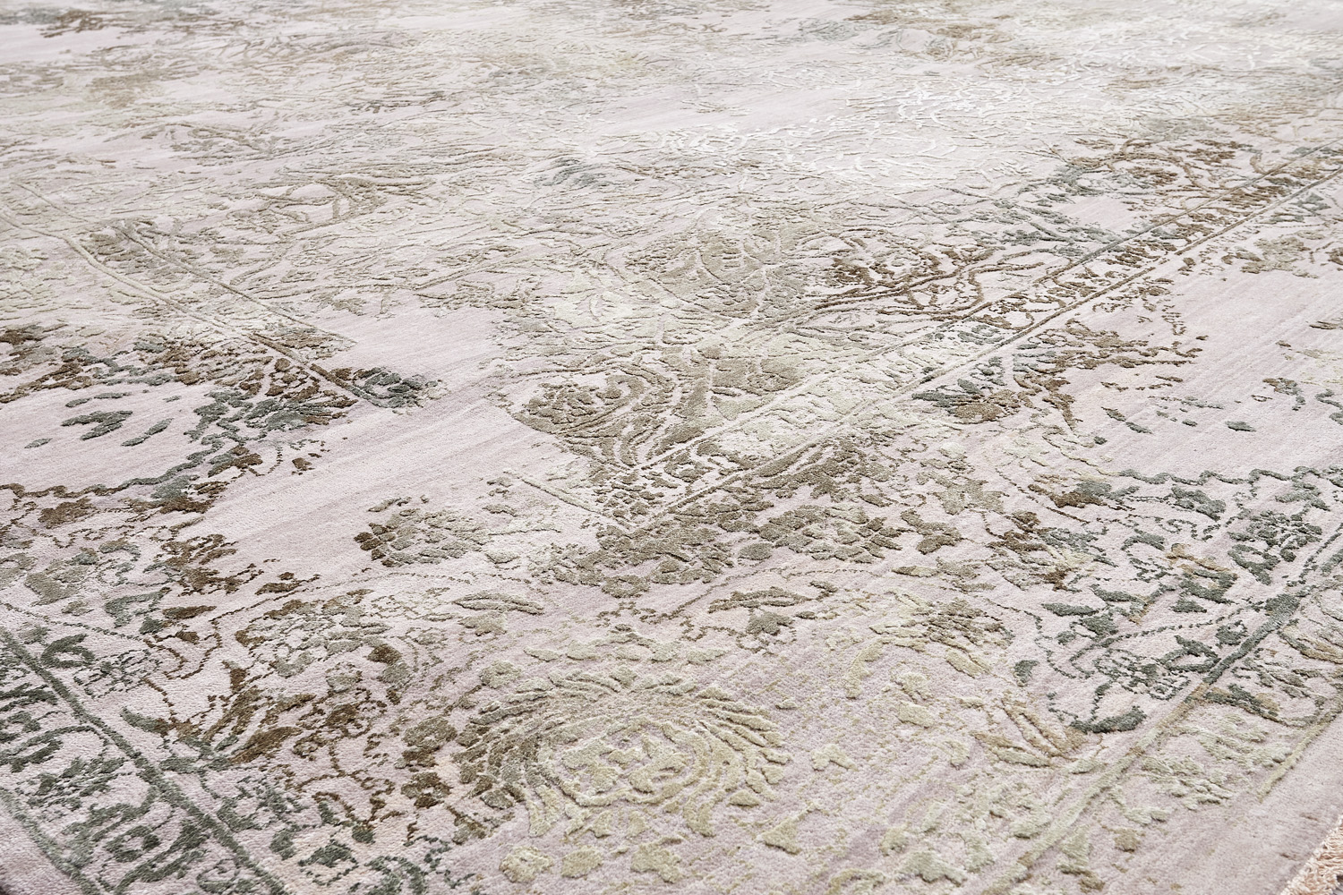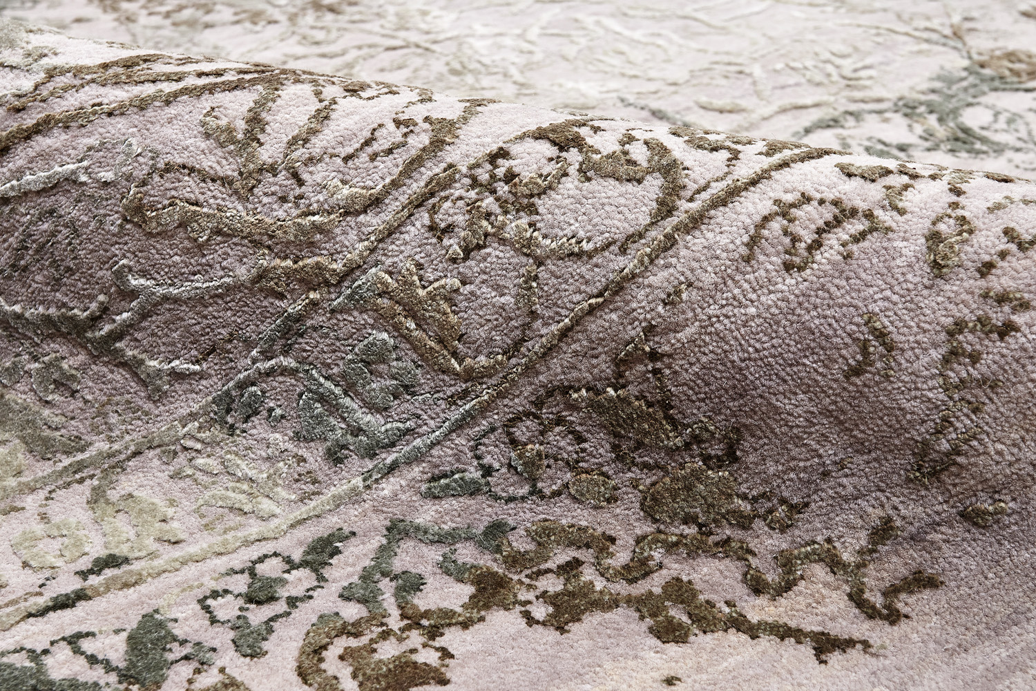 Такой эффект достигается за счет специальной техники плетения, а также обработки, которой подвергают ковры, чтобы они выглядели как антикварные — то есть дорого, элегантно и модно.