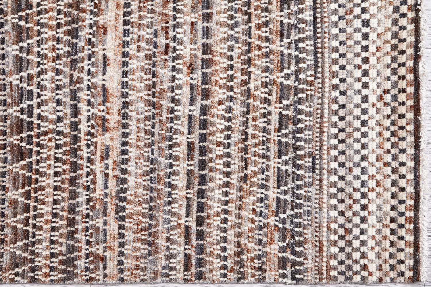Дизайн ковров напоминает современные полотна художников-абстракционистов и производит столь же яркое и незабываемое впечатление в интерьере. Живописный эффект и необычная фактура зависят от выбора материала: натуральной шерсти, шёлка и от их сочетаний друг с другом. Ковры ткутся вручную в лучших мастерских Индии и Пакистана.