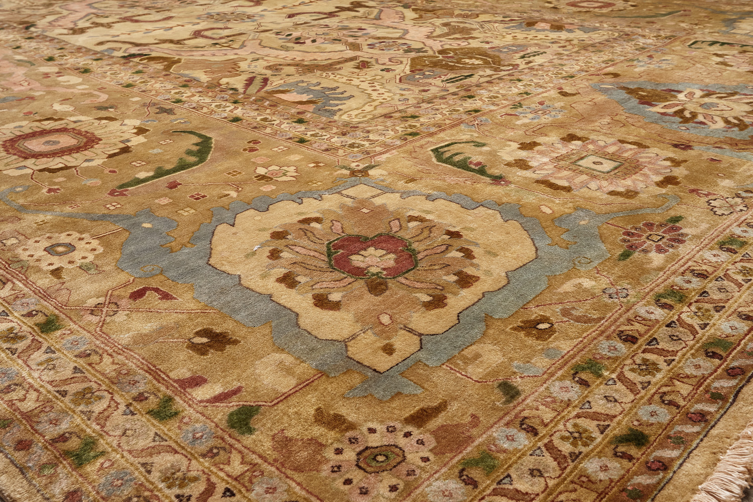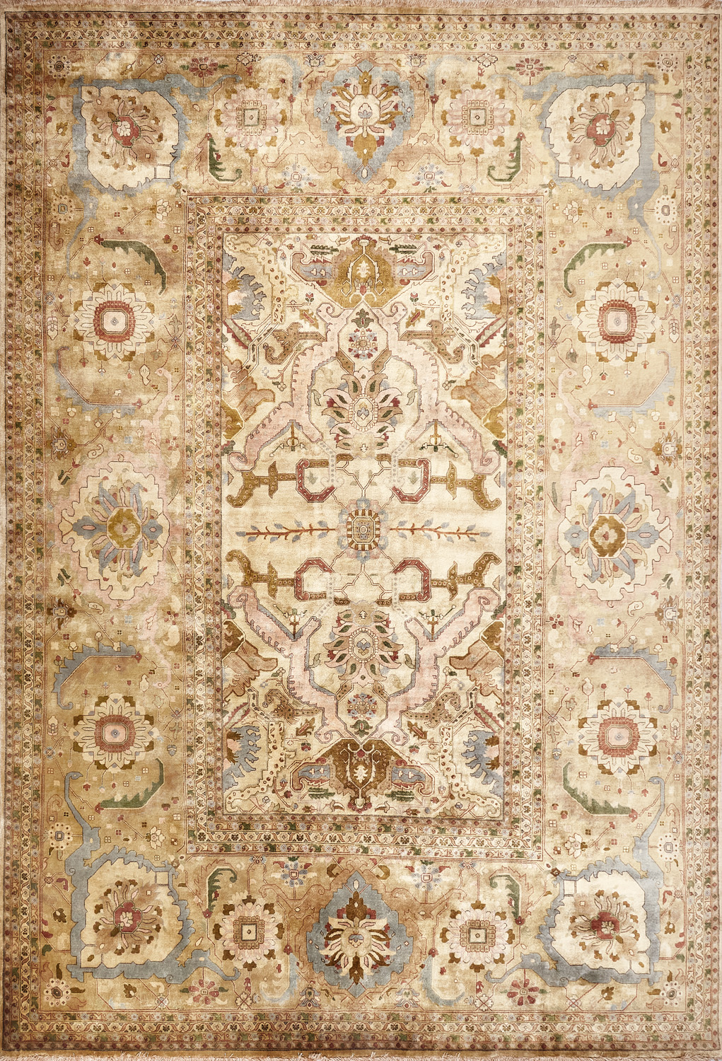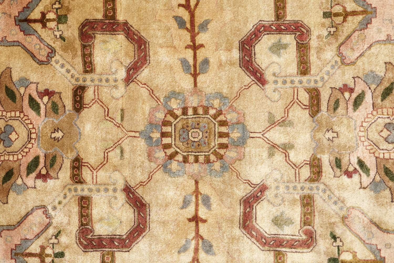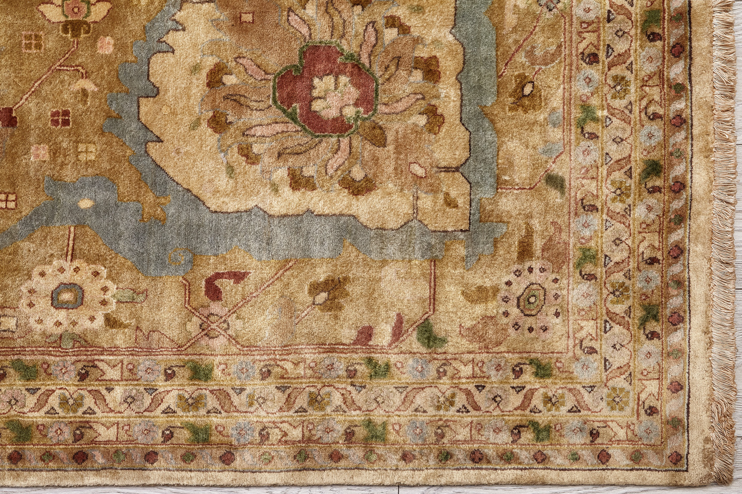 Более пяти веков назад в городе Агра зародилась знаменитая индийская школа ковроткачества, прославившаяся не меньше, чем расположенный здесь же Тадж-Махал. Мощное персидское влияние, помноженное на местный колорит, привело к появлению оригинальных орнаментов с богатыми растительными узорами — причудливым цветам, ветвям и листьям, разбросанным по всему полю ковра.