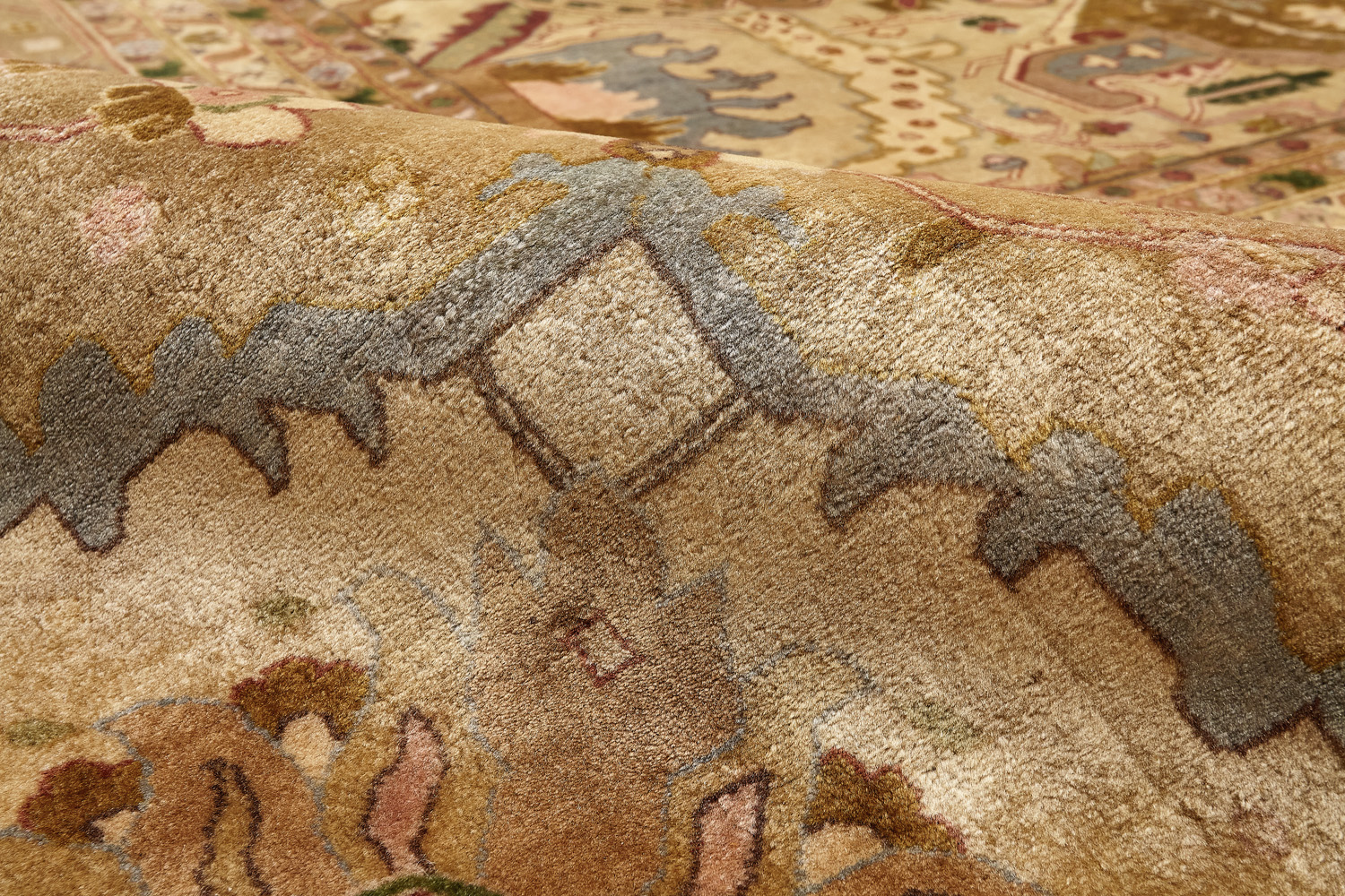 Каждый ковер в этой коллекции соткан вручную из шерсти и арт шёлка опытными индийскими мастерами.