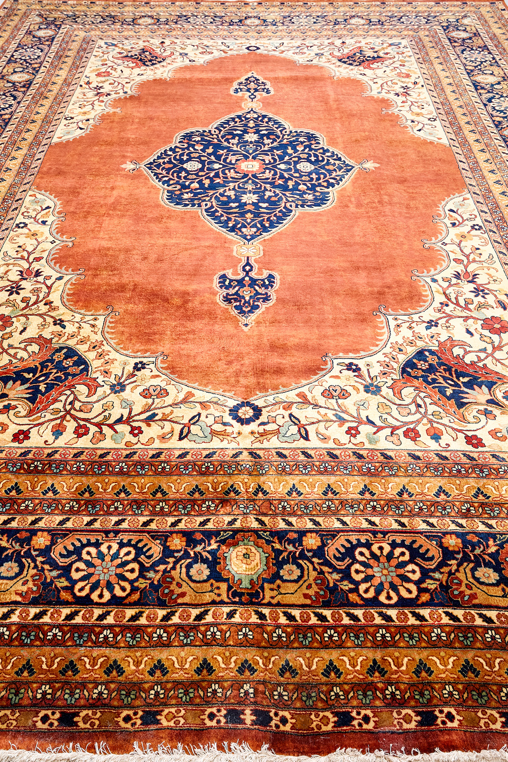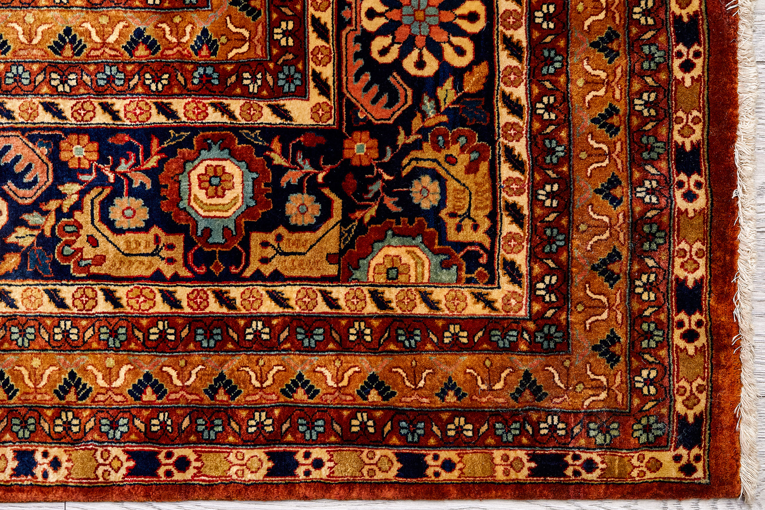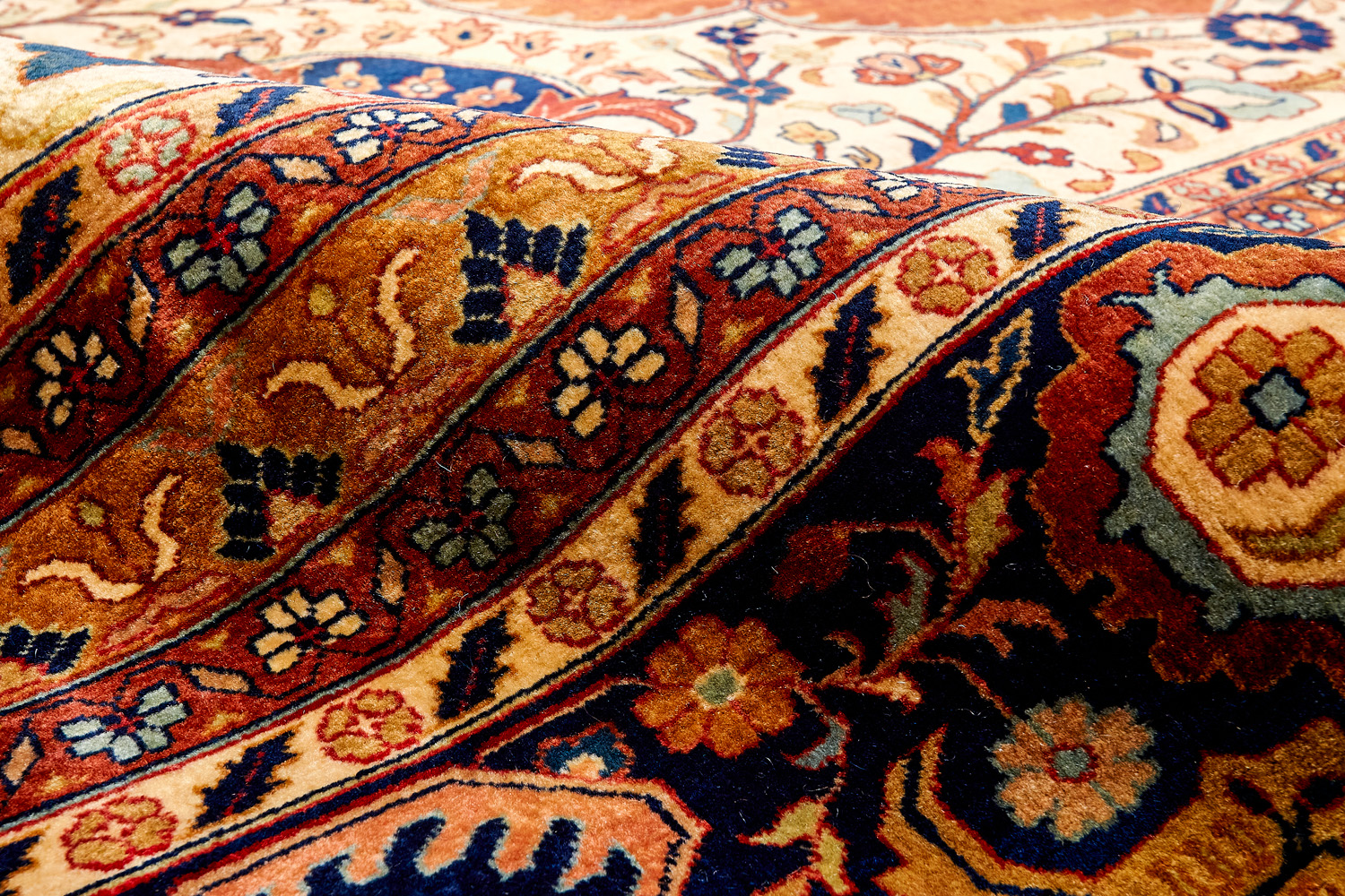 Более пяти веков назад в городе Агра зародилась знаменитая индийская школа ковроткачества, прославившаяся не меньше, чем расположенный здесь же Тадж-Махал. Мощное персидское влияние, помноженное на местный колорит, привело к появлению оригинальных орнаментов с богатыми растительными узорами — причудливым цветам, ветвям и листьям, разбросанным по всему полю ковра.