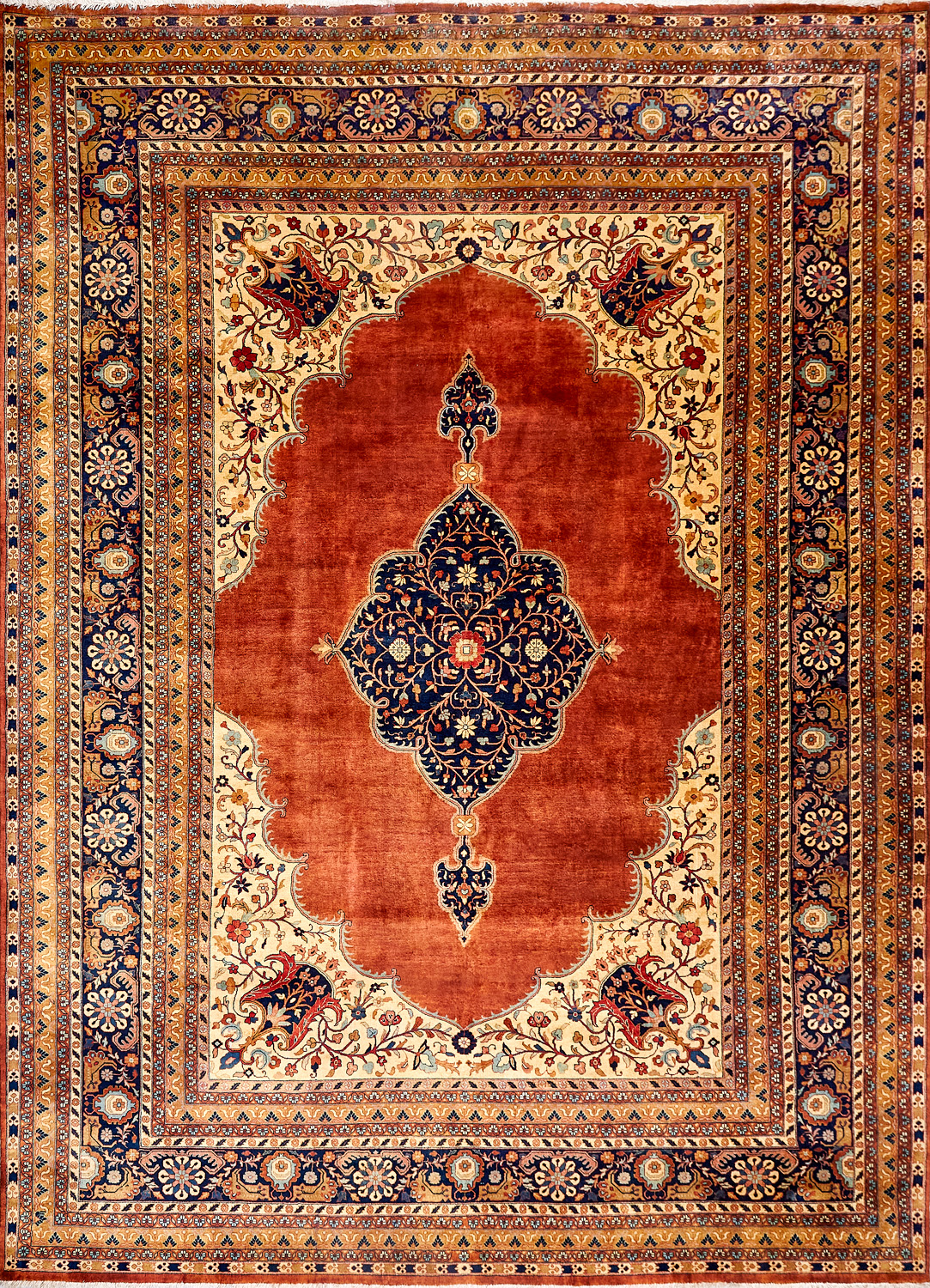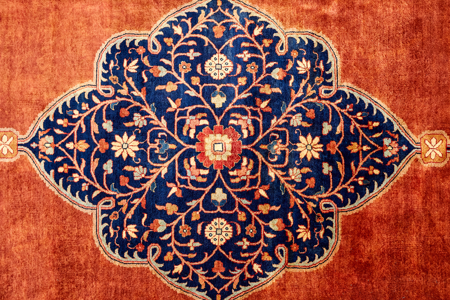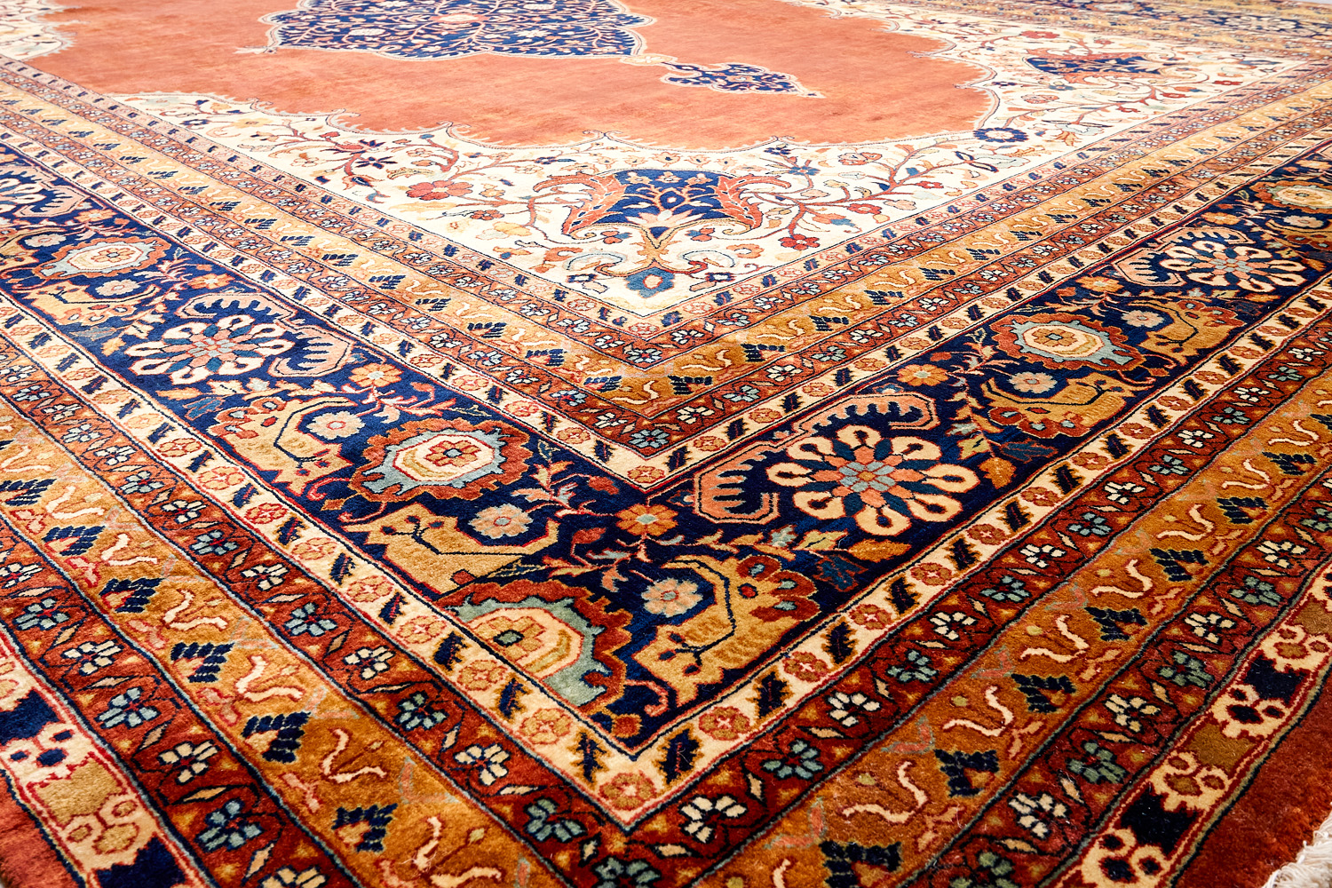 Более пяти веков назад в городе Агра зародилась знаменитая индийская школа ковроткачества, прославившаяся не меньше, чем расположенный здесь же Тадж-Махал. Мощное персидское влияние, помноженное на местный колорит, привело к появлению оригинальных орнаментов с богатыми растительными узорами — причудливым цветам, ветвям и листьям, разбросанным по всему полю ковра.