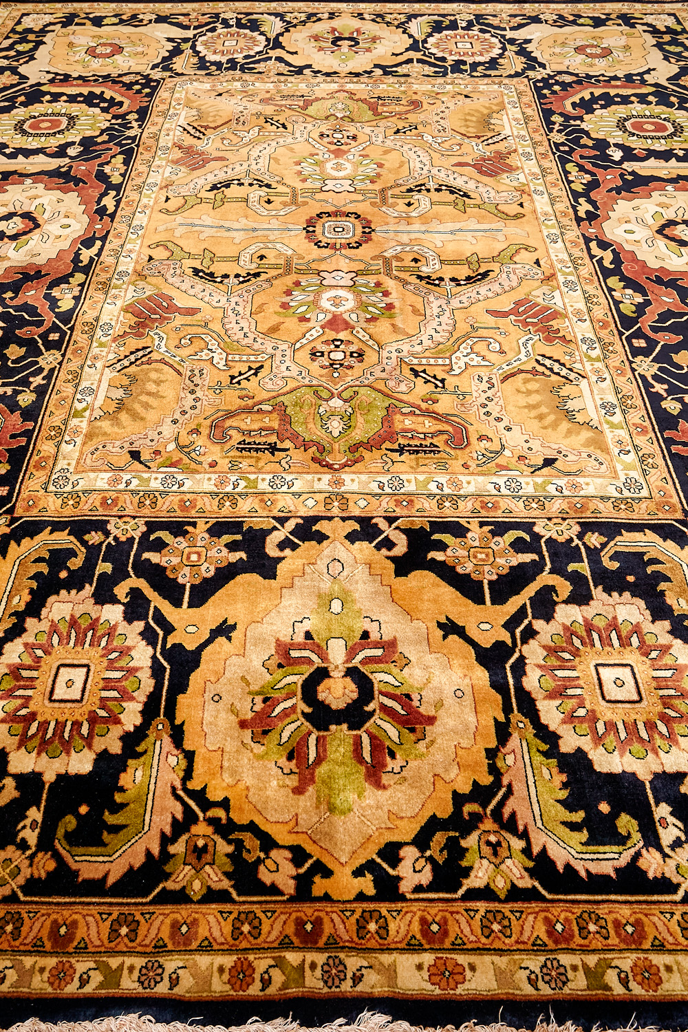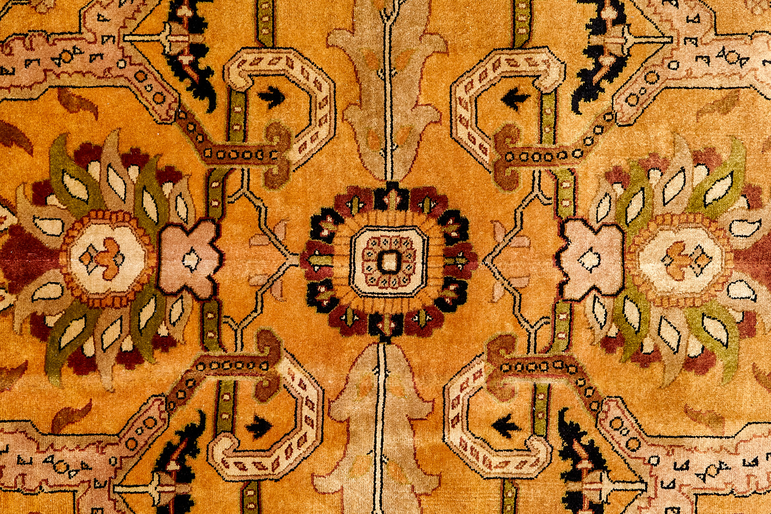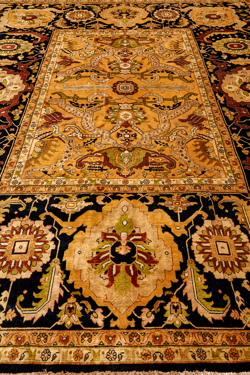 Более пяти веков назад в городе Агра зародилась знаменитая индийская школа ковроткачества, прославившаяся не меньше, чем расположенный здесь же Тадж-Махал. Мощное персидское влияние, помноженное на местный колорит, привело к появлению оригинальных орнаментов с богатыми растительными узорами — причудливым цветам, ветвям и листьям, разбросанным по всему полю ковра.
