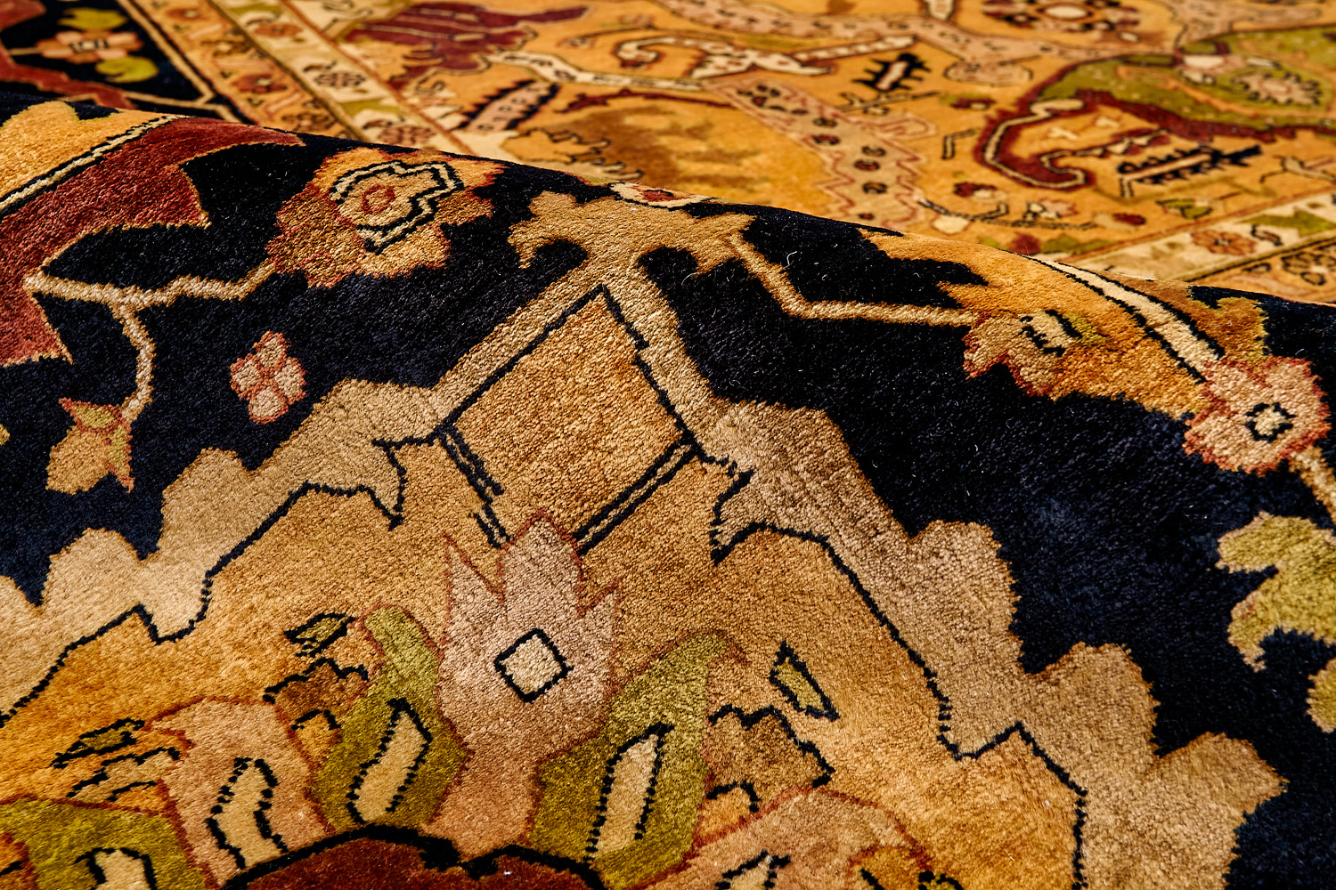 Каждый ковер в этой коллекции соткан вручную из шерсти и арт шёлка опытными индийскими мастерами.