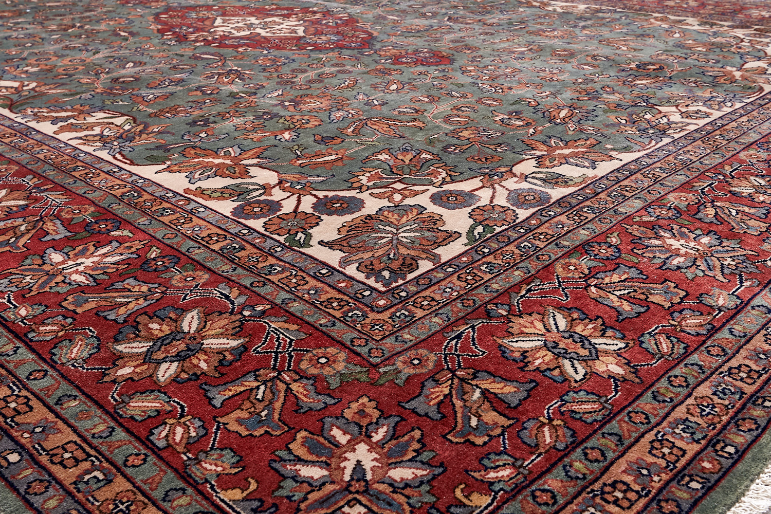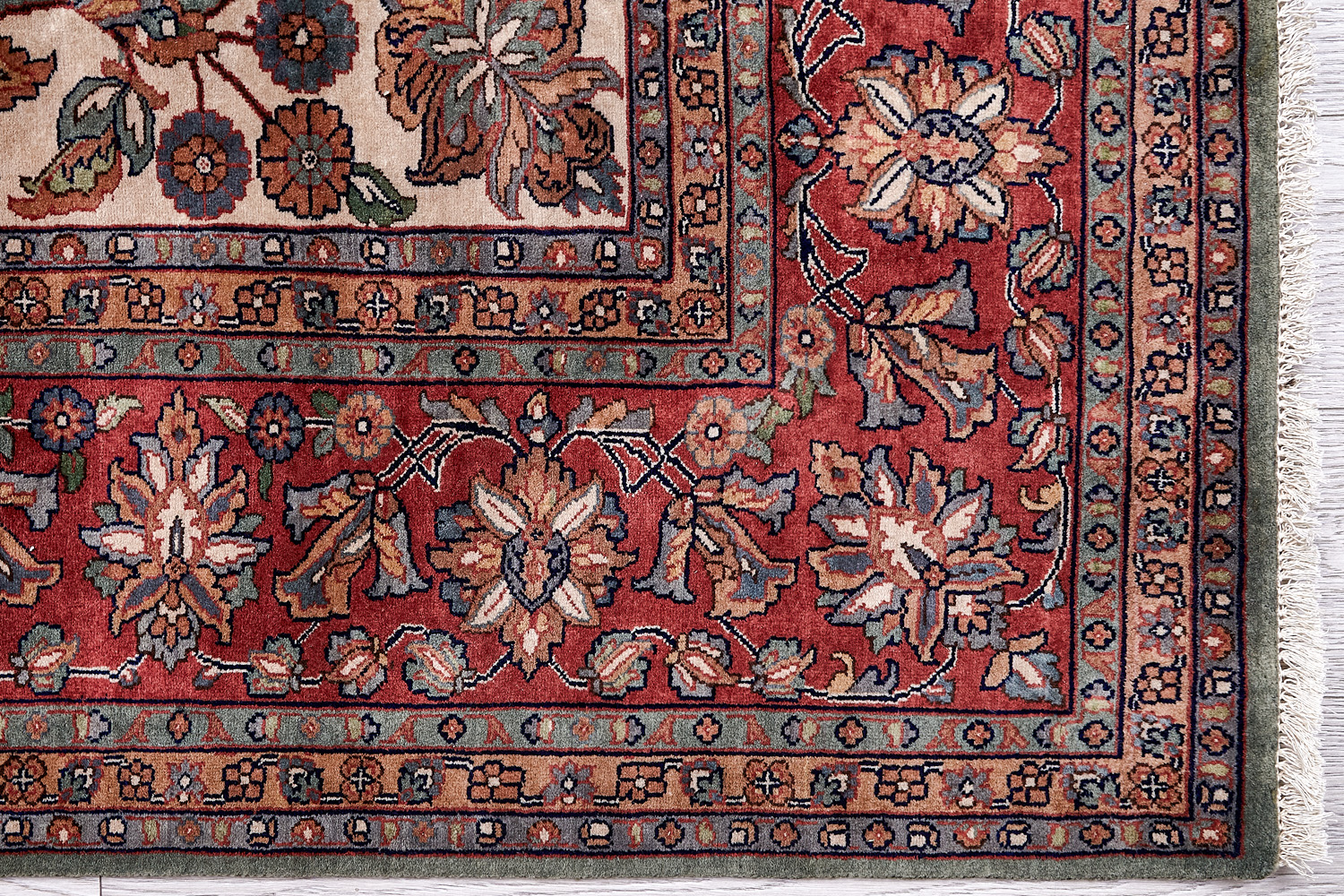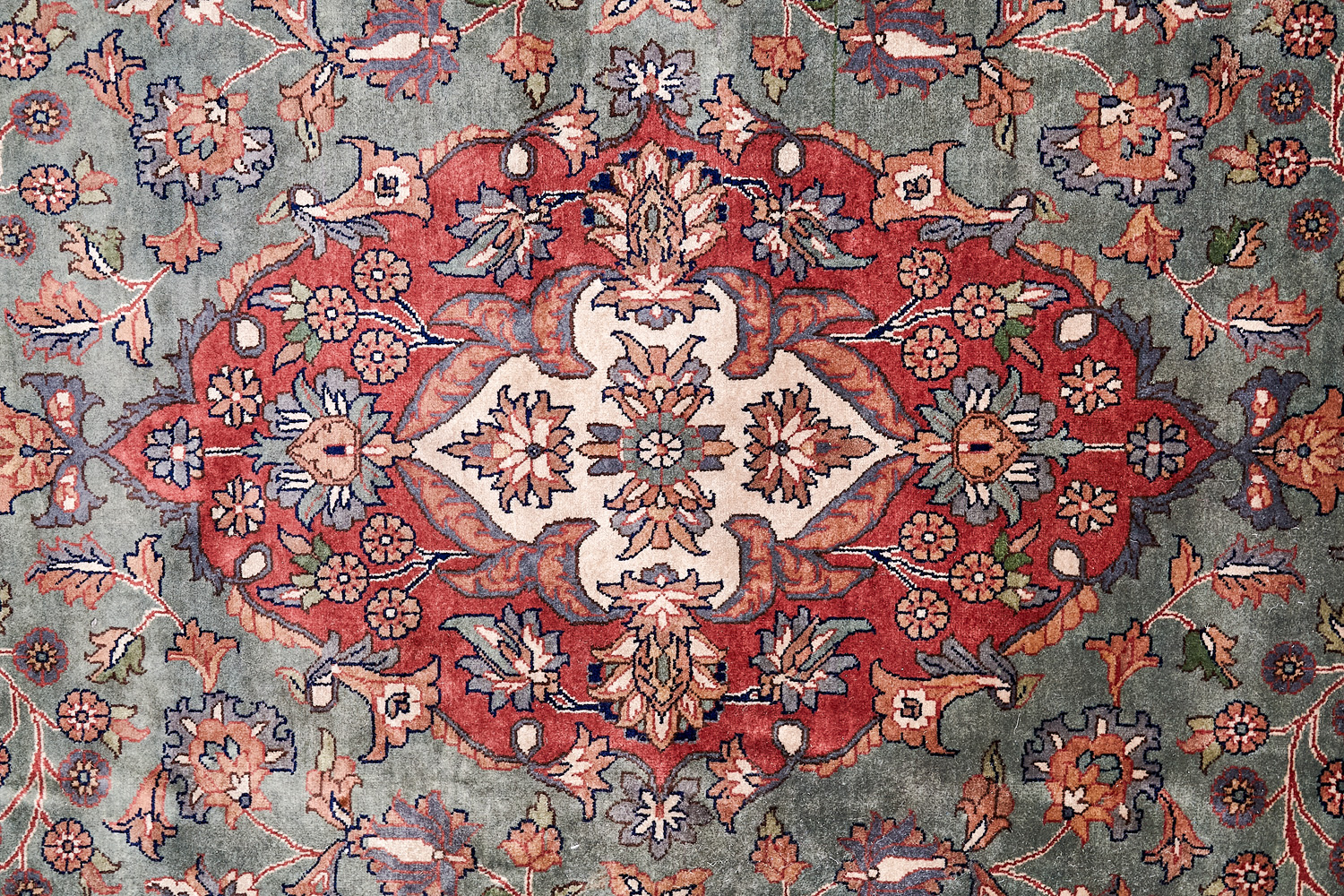 Более пяти веков назад в городе Агра зародилась знаменитая индийская школа ковроткачества, прославившаяся не меньше, чем расположенный здесь же Тадж-Махал. Мощное персидское влияние, помноженное на местный колорит, привело к появлению оригинальных орнаментов с богатыми растительными узорами — причудливым цветам, ветвям и листьям, разбросанным по всему полю ковра.