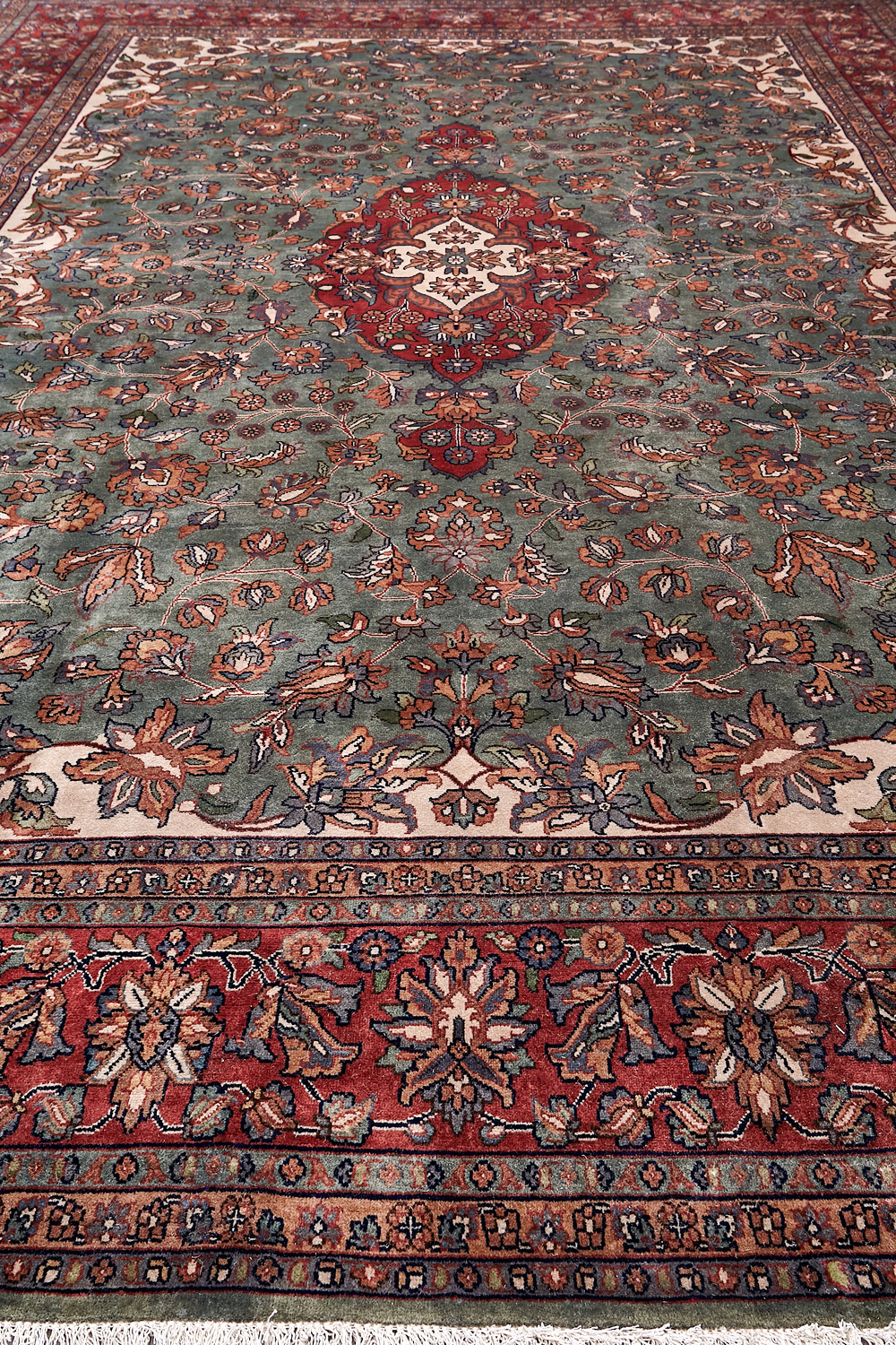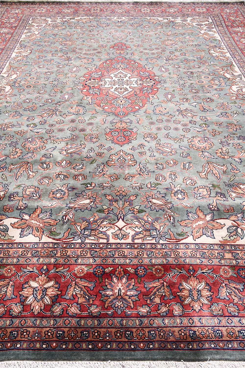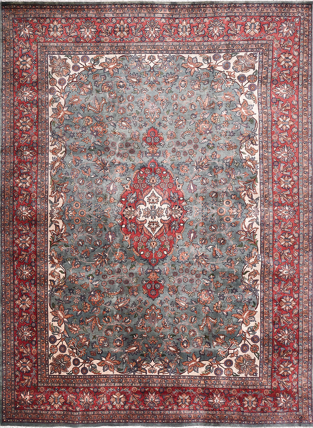 Более пяти веков назад в городе Агра зародилась знаменитая индийская школа ковроткачества, прославившаяся не меньше, чем расположенный здесь же Тадж-Махал. Мощное персидское влияние, помноженное на местный колорит, привело к появлению оригинальных орнаментов с богатыми растительными узорами — причудливым цветам, ветвям и листьям, разбросанным по всему полю ковра.