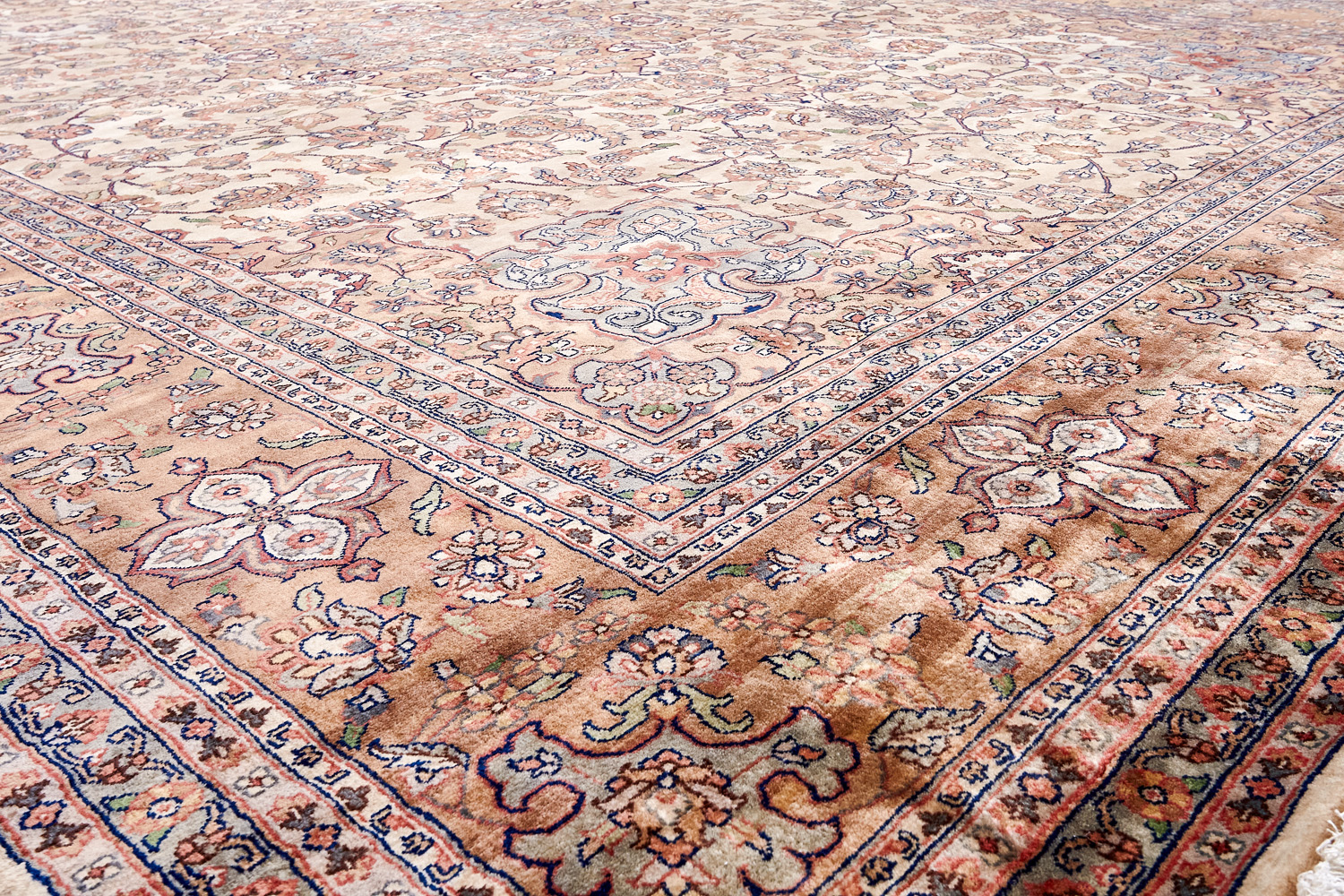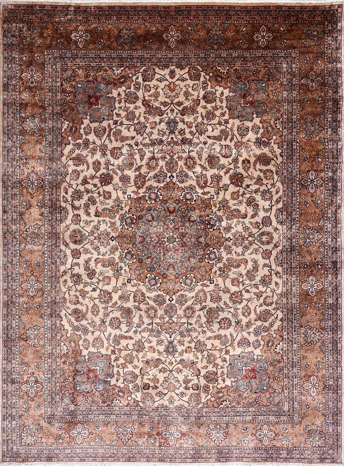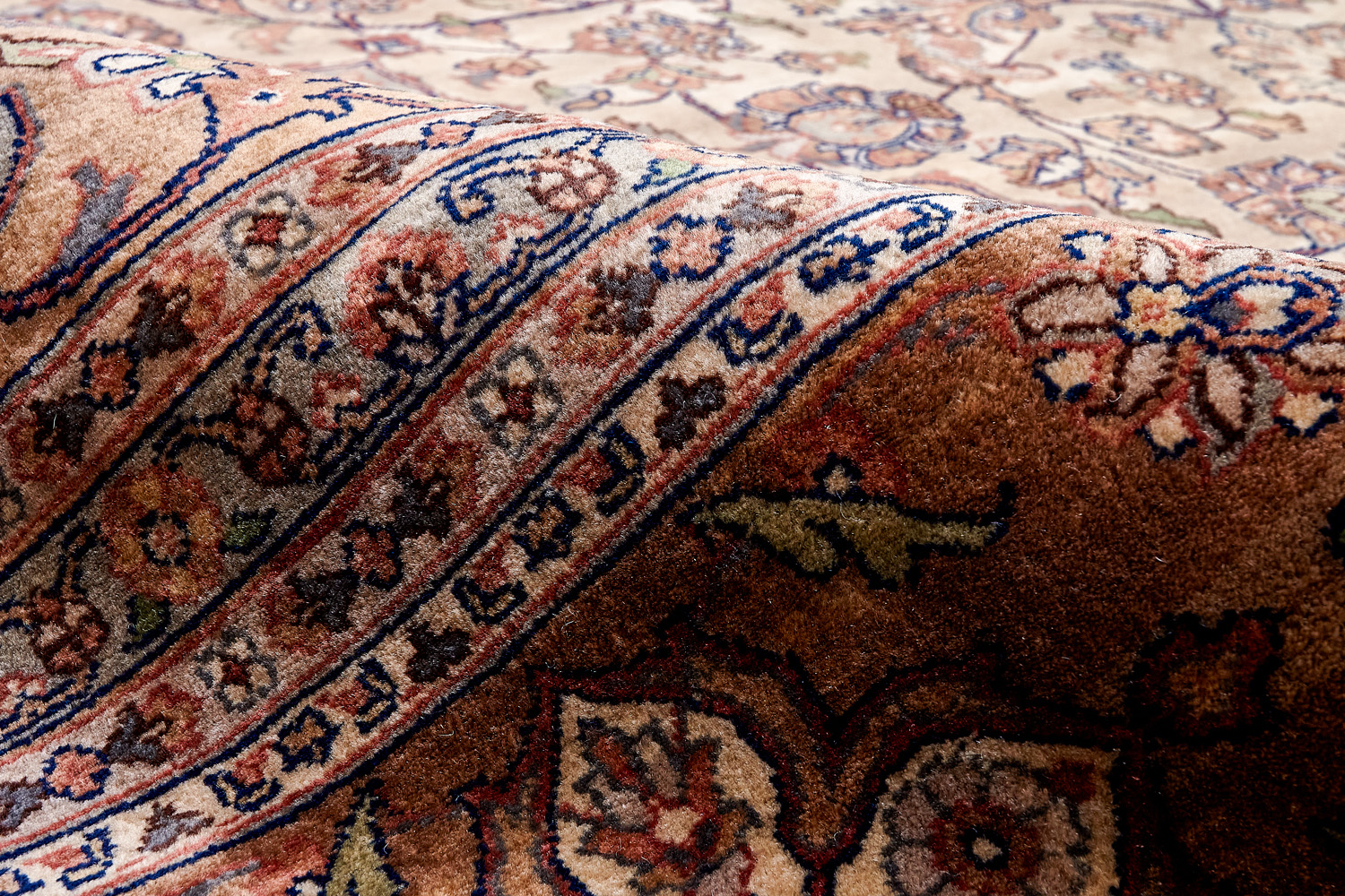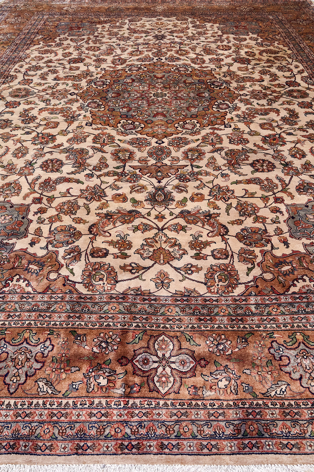 Более пяти веков назад в городе Агра зародилась знаменитая индийская школа ковроткачества, прославившаяся не меньше, чем расположенный здесь же Тадж-Махал. Мощное персидское влияние, помноженное на местный колорит, привело к появлению оригинальных орнаментов с богатыми растительными узорами — причудливым цветам, ветвям и листьям, разбросанным по всему полю ковра.