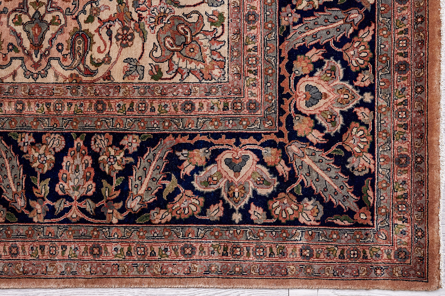 Более пяти веков назад в городе Агра зародилась знаменитая индийская школа ковроткачества, прославившаяся не меньше, чем расположенный здесь же Тадж-Махал. Мощное персидское влияние, помноженное на местный колорит, привело к появлению оригинальных орнаментов с богатыми растительными узорами — причудливым цветам, ветвям и листьям, разбросанным по всему полю ковра.