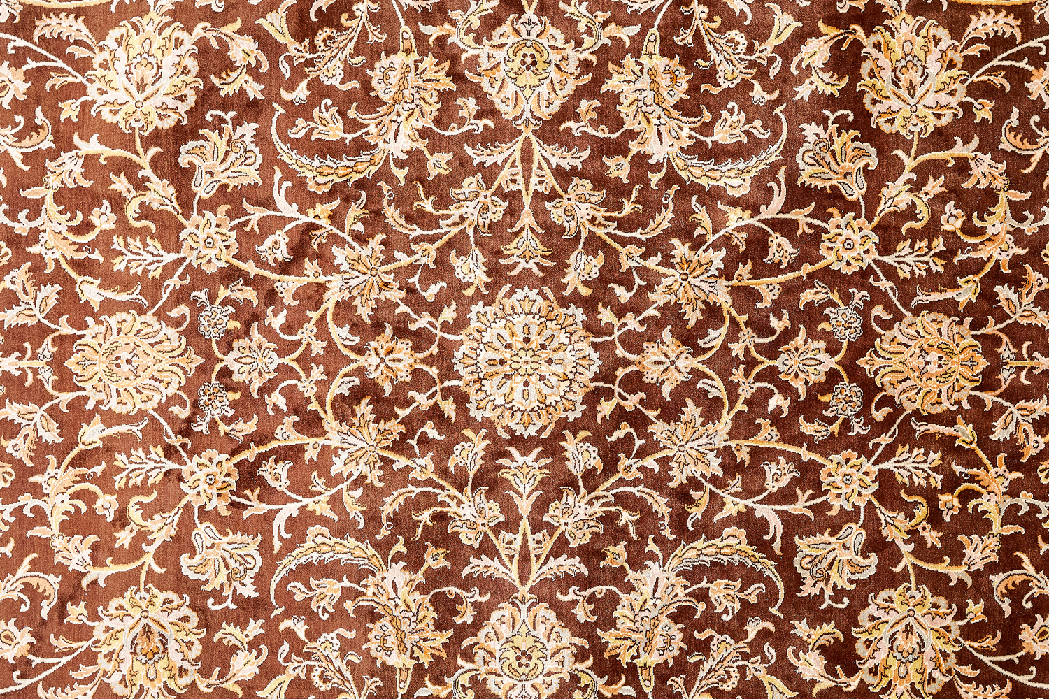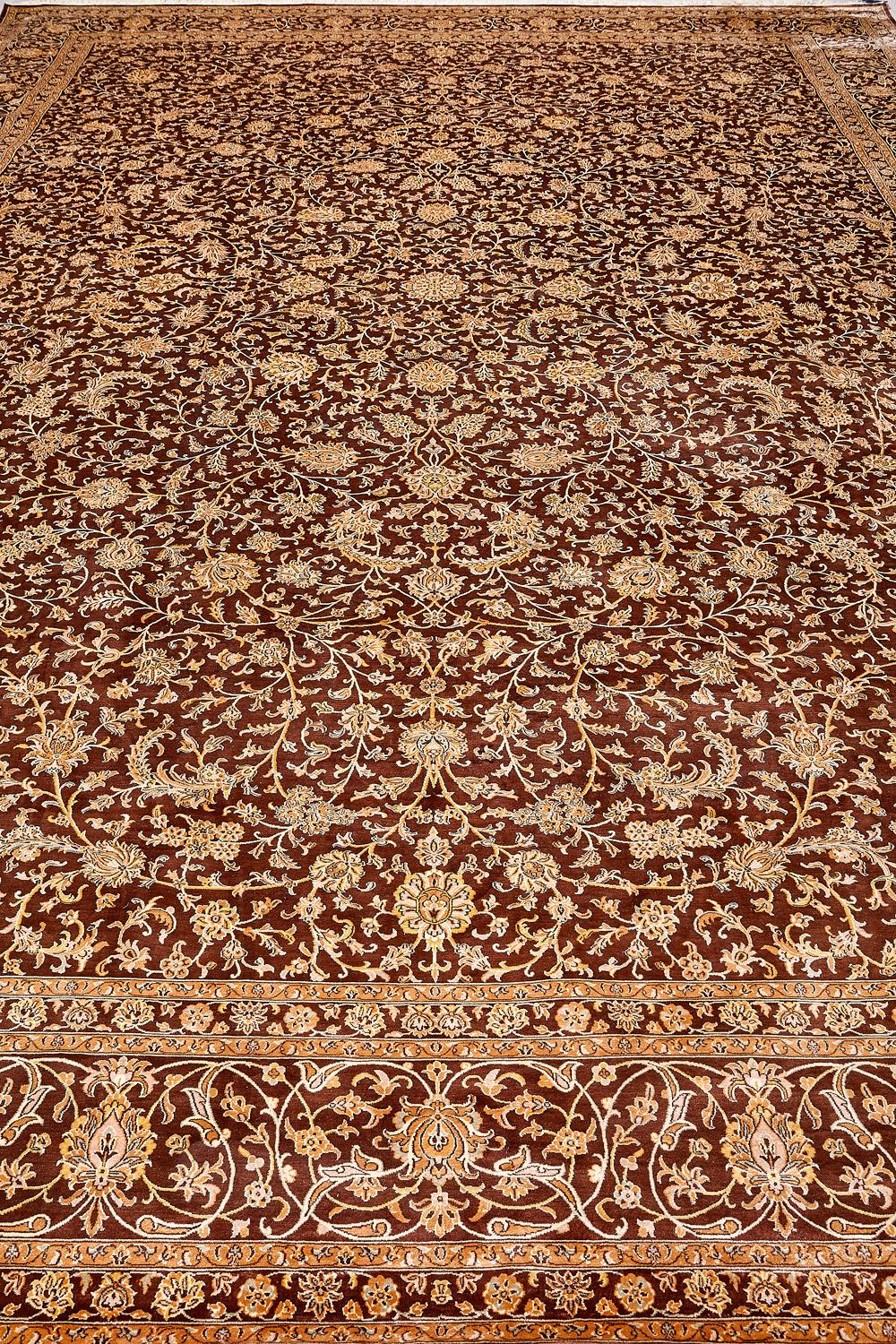 Ковры из коллекции Кашмир ткутся по традиционной технологии из нежнейшего кашмирского шелка. Лучшие произведения индийских мастеров отличает высокая узелковая плотность, прочность и яркость цветов.